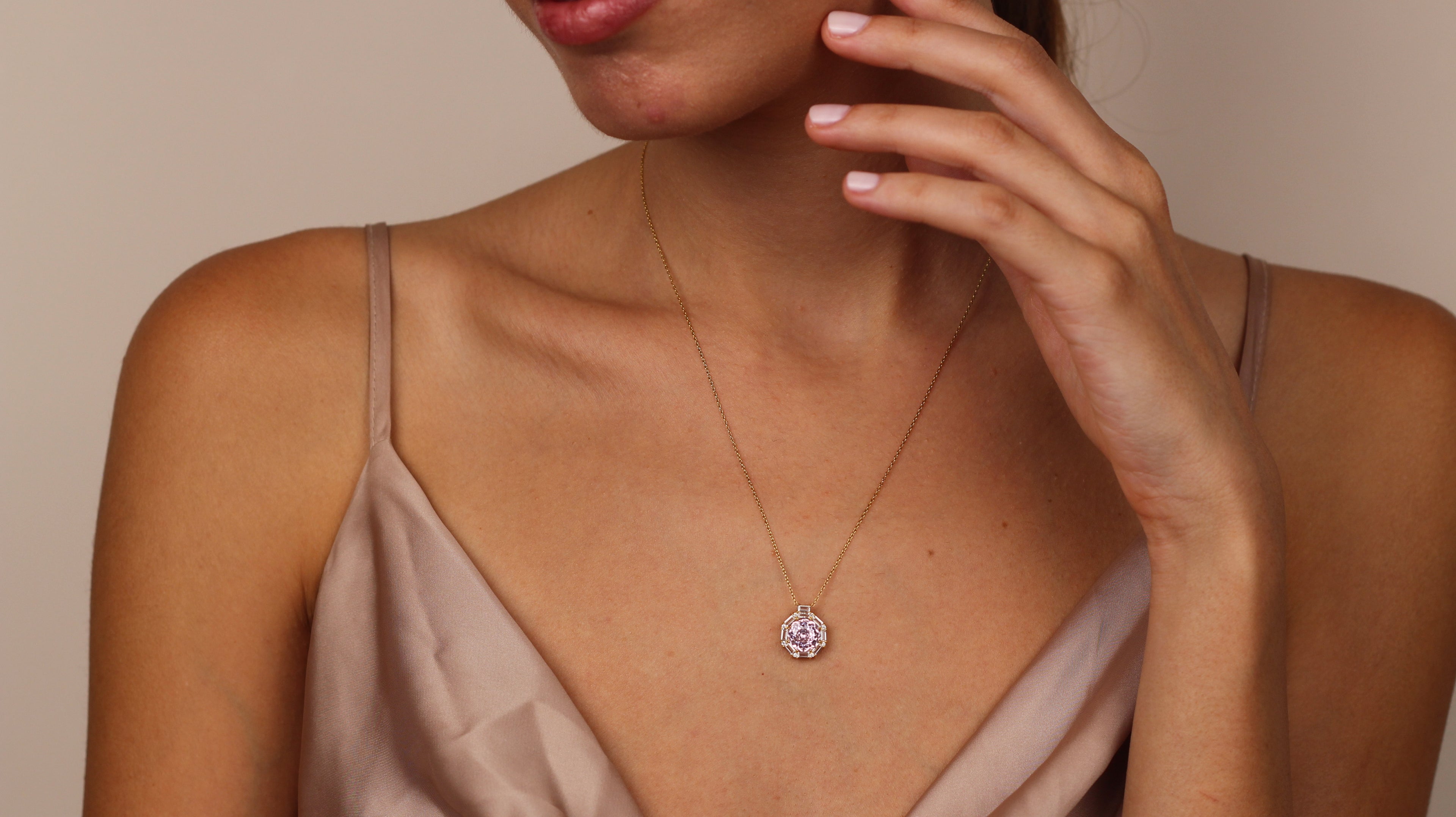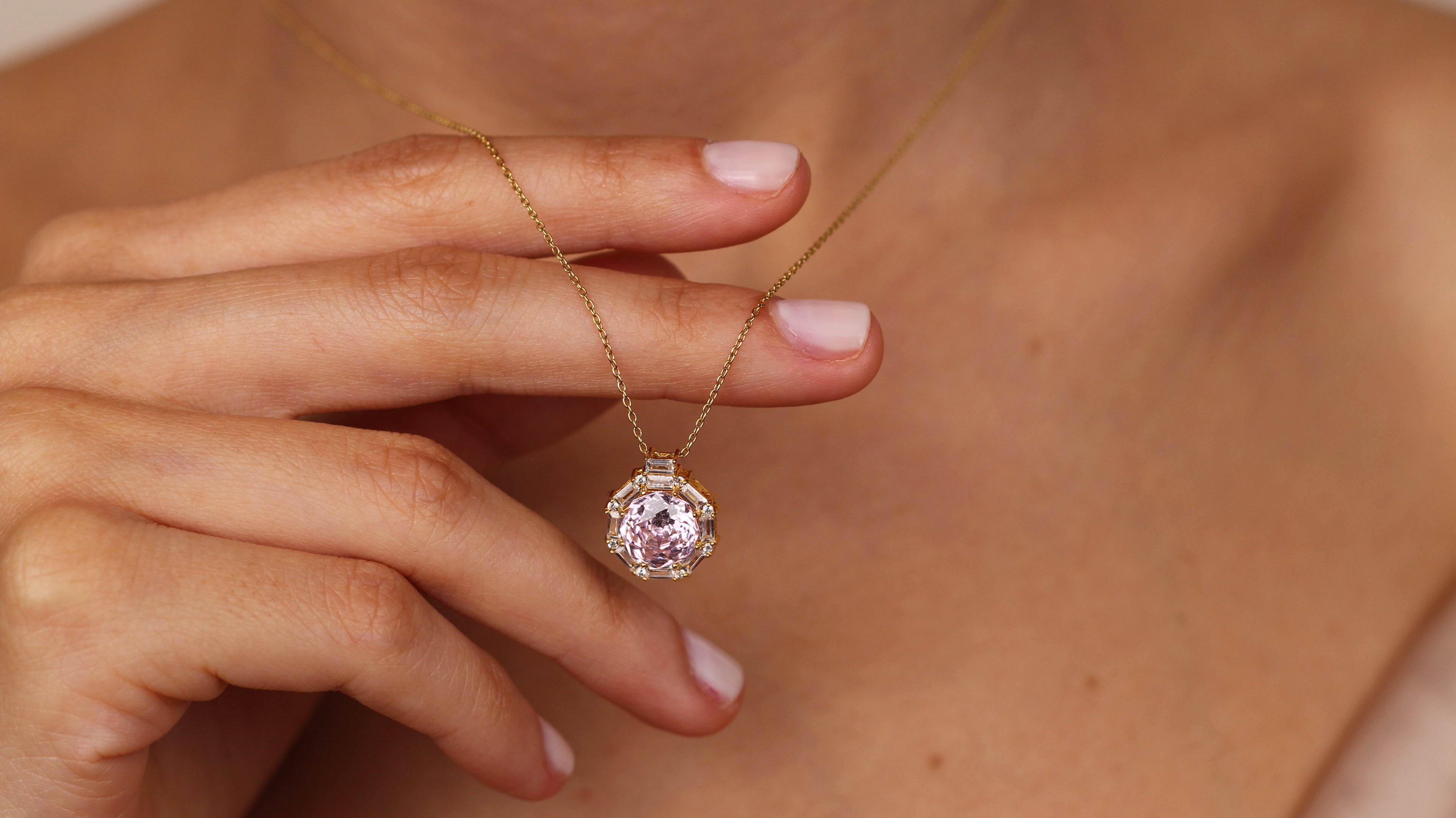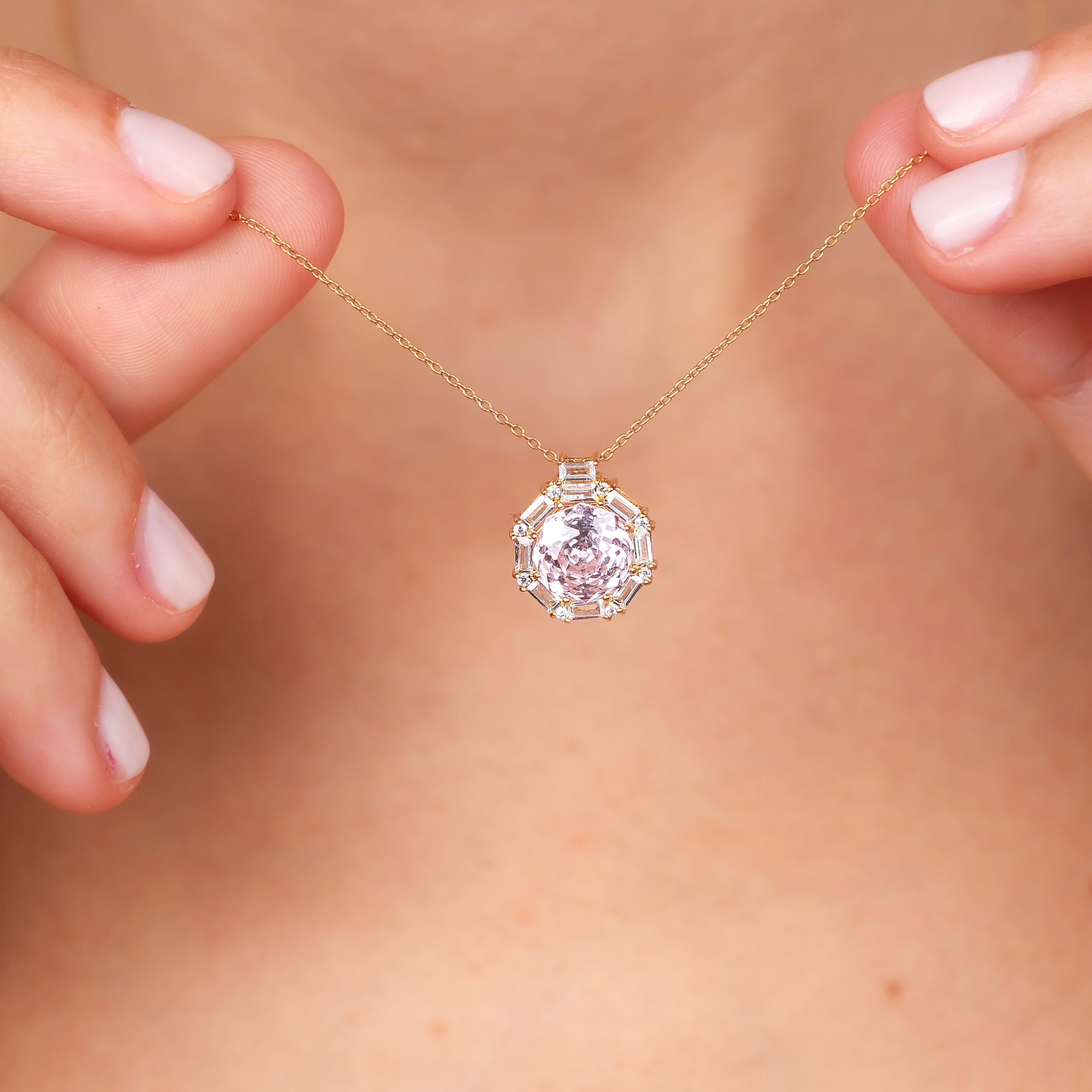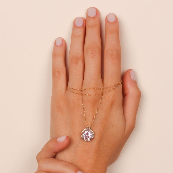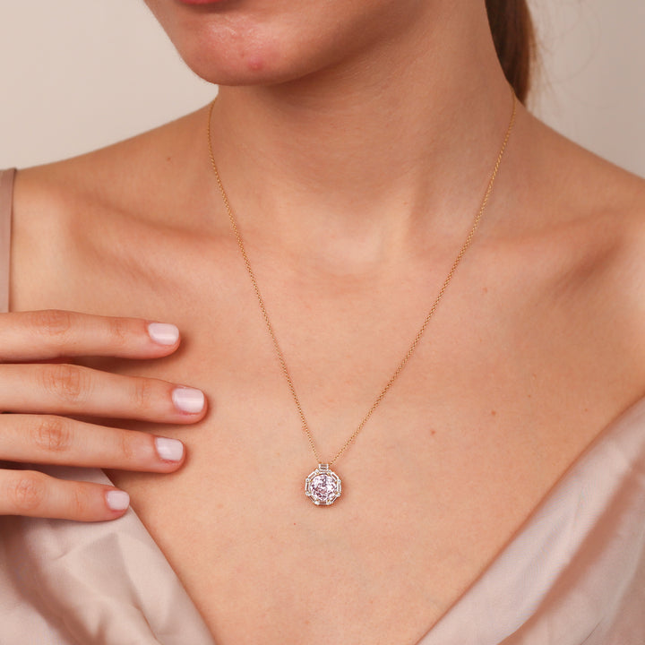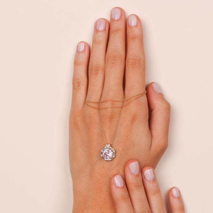 MASHA Natural Light Amethyst Necklace | 14K & 8K Gold Amethyst Pendant with Zircon Halo