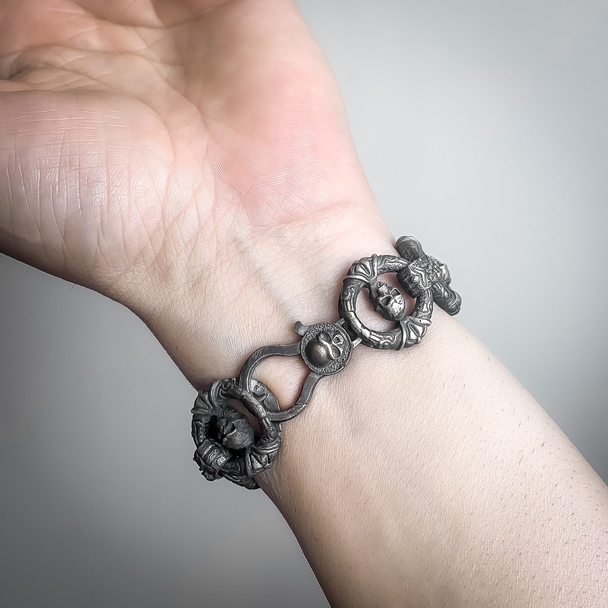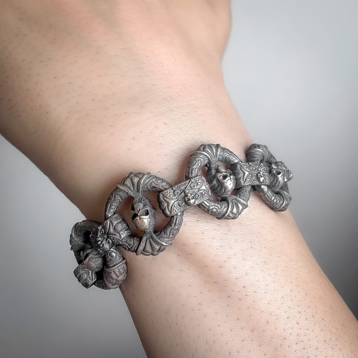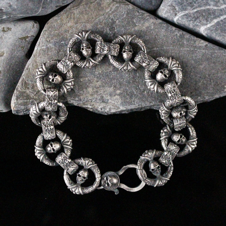 925 Silver Skull Men Bracelet, Gothic Silver Bracelet