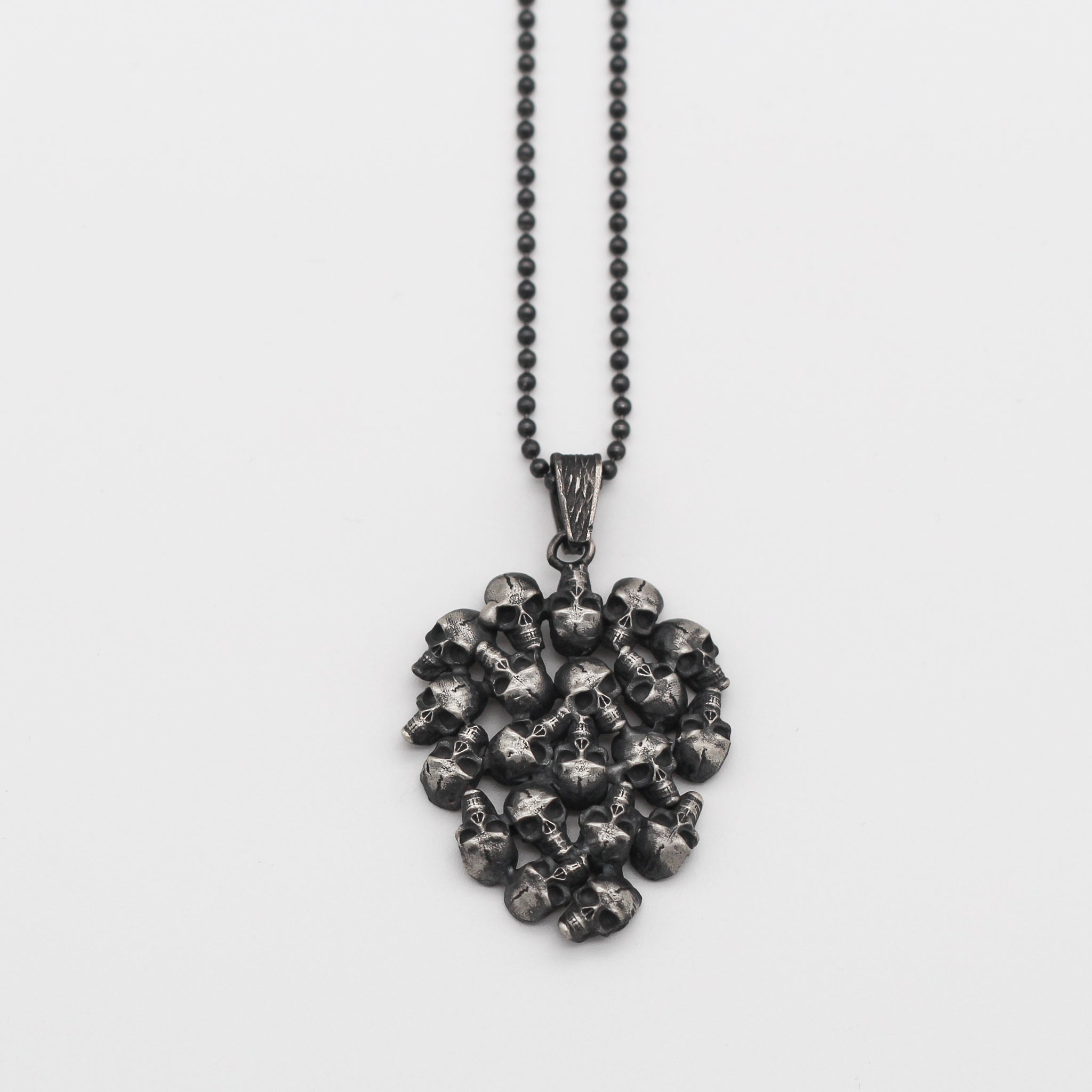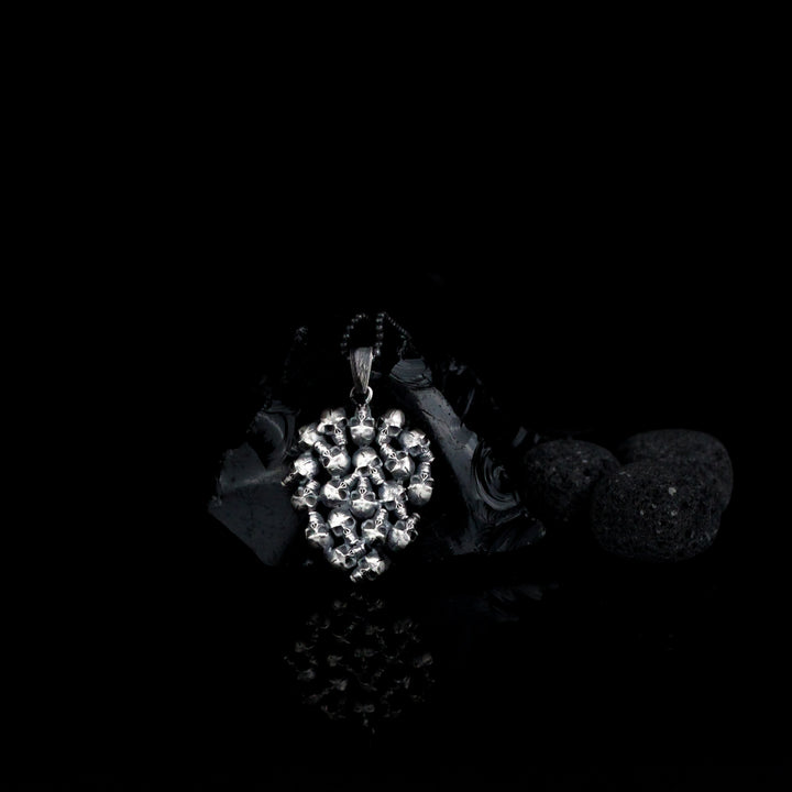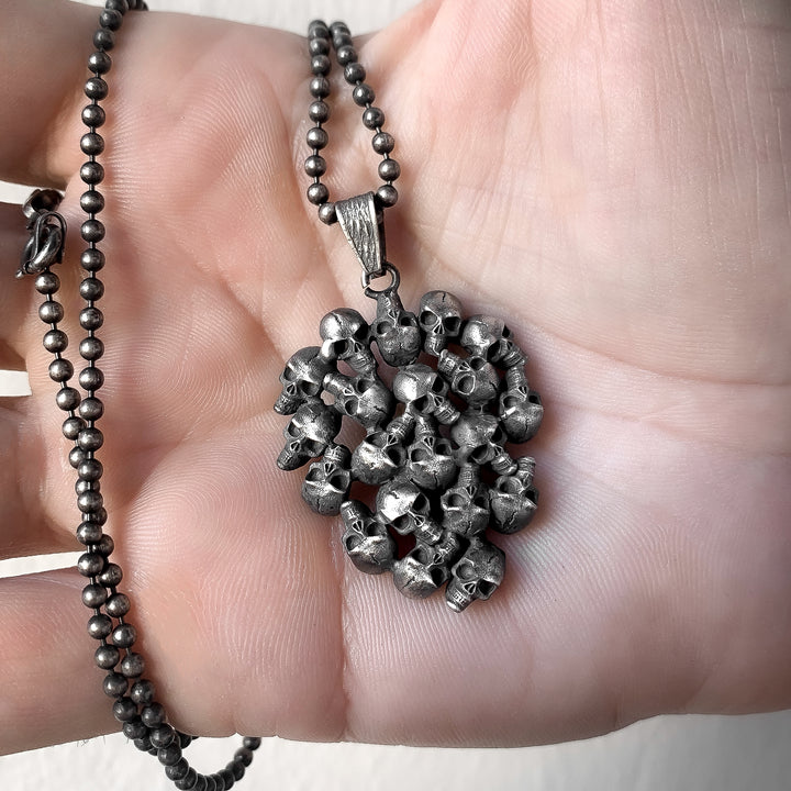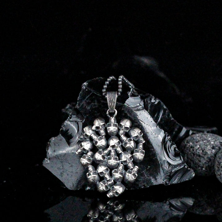 Clustered Skull Pendant Necklace in Sterling Silver | Statement Gothic Style Necklace