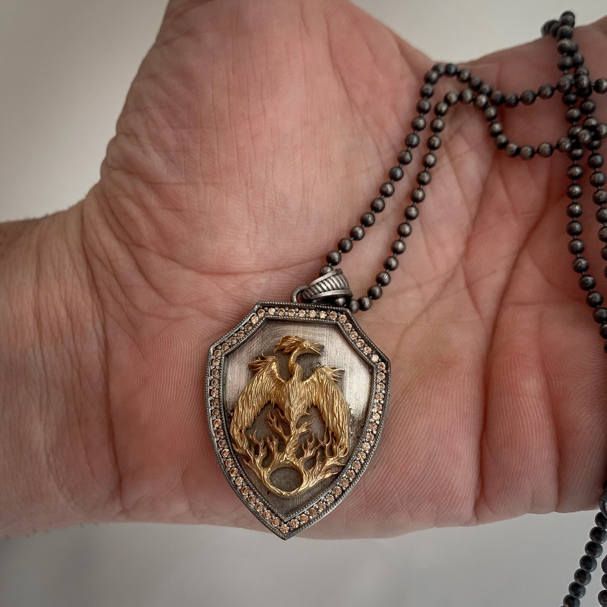 → Pendant width 27,80 mm, height 34,50 mm and necklace weight 18,00 gr.