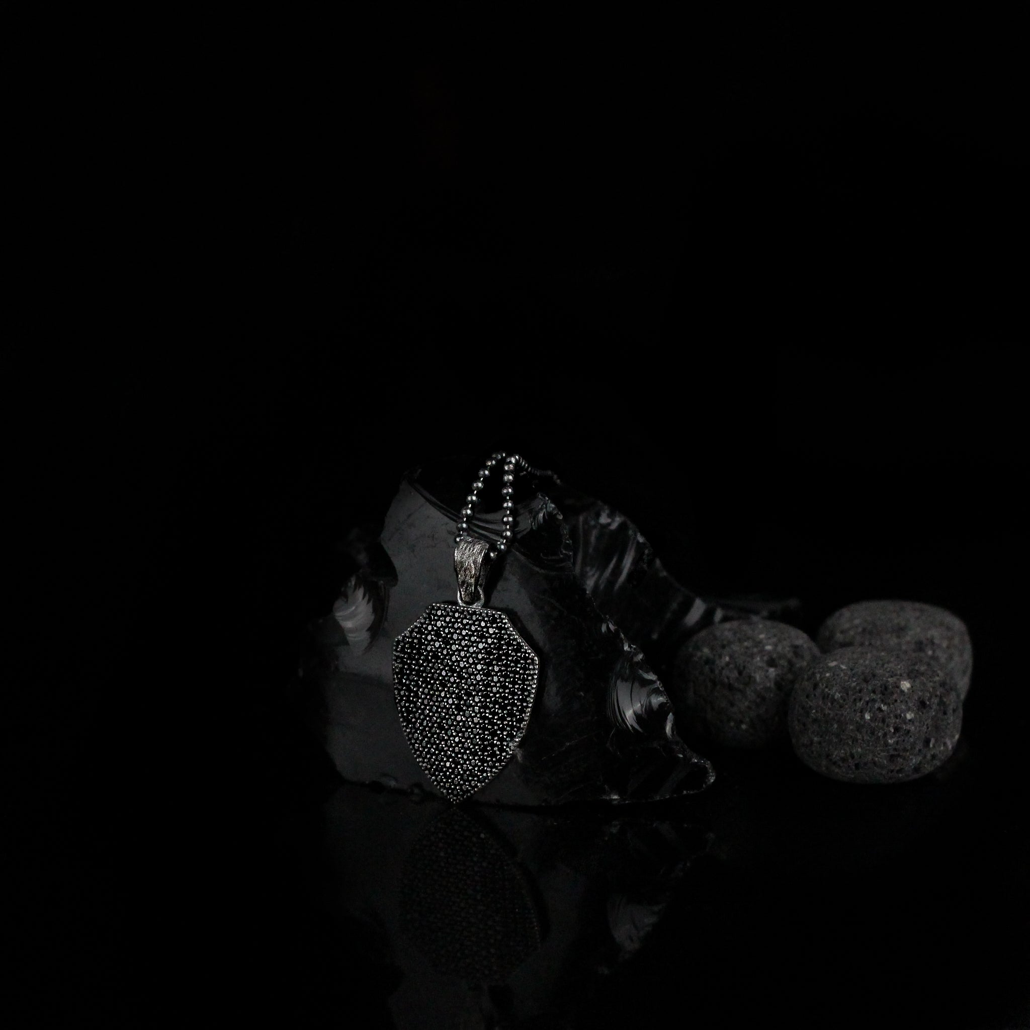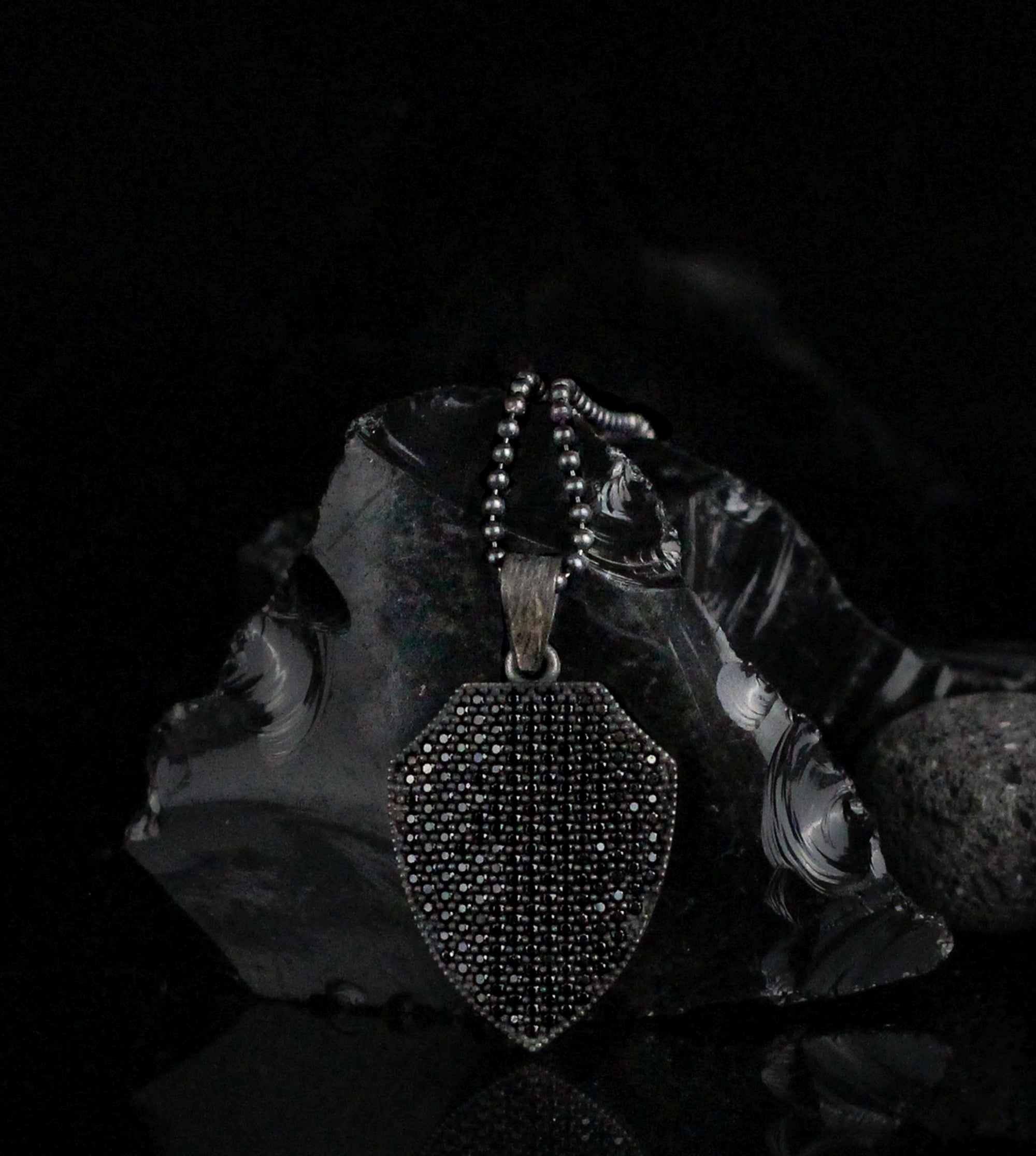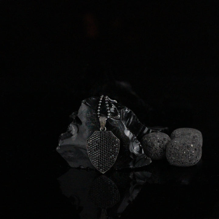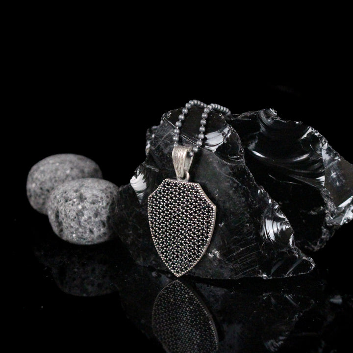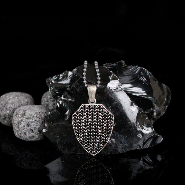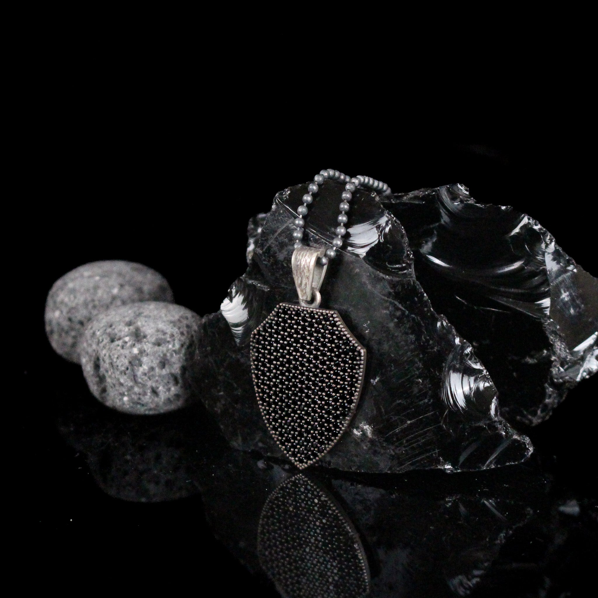 925K Silver Shield Men Necklace, Black Stone Men Pendant