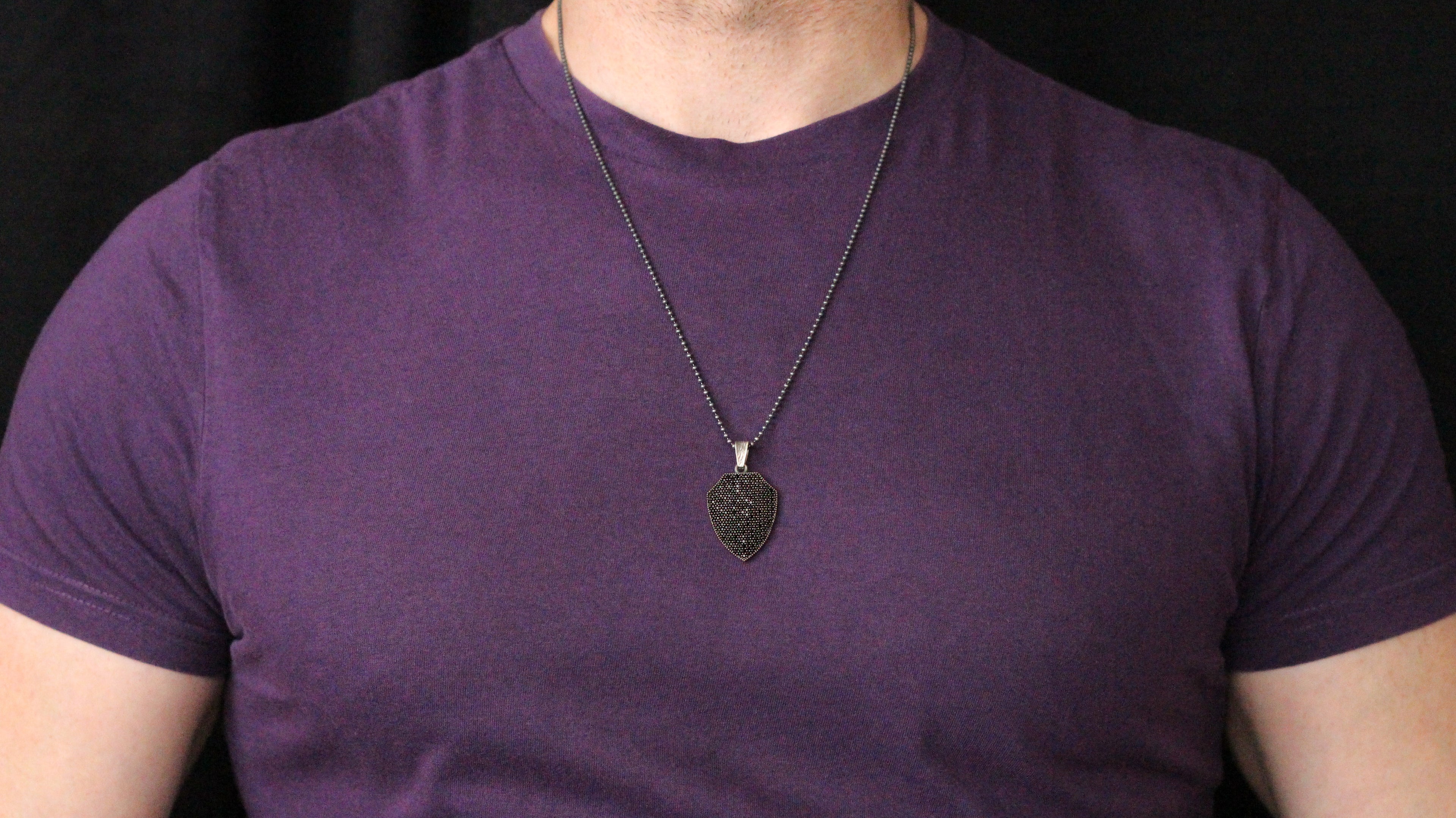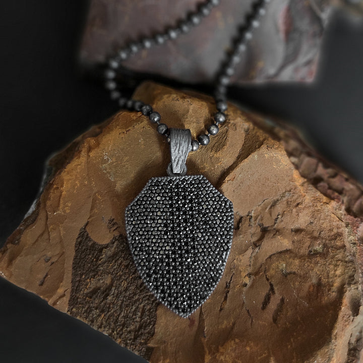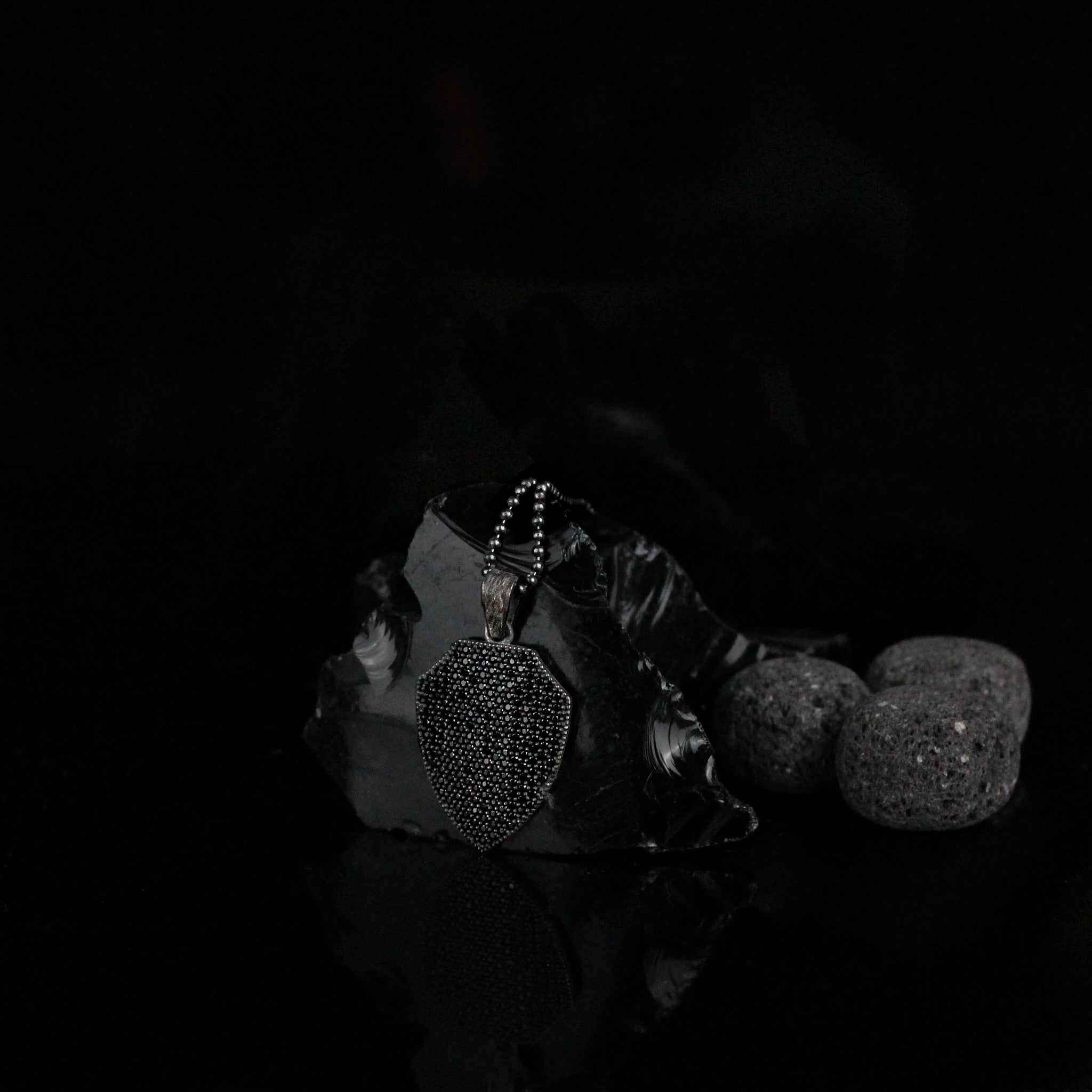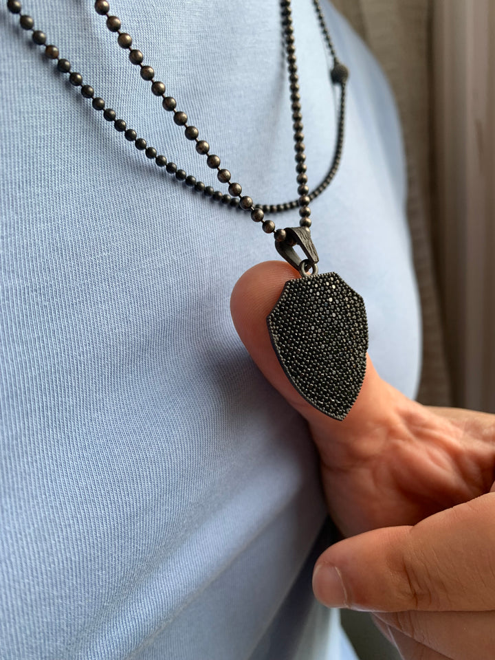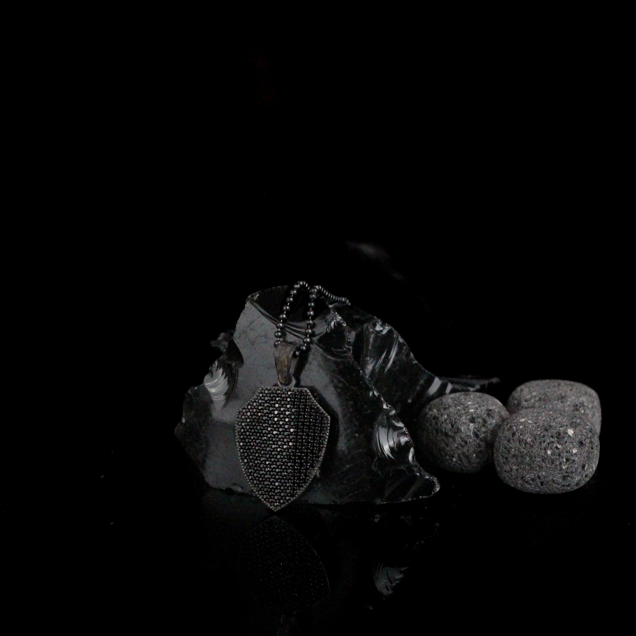 925K Silver Shield Men Necklace, Black Stone Men Pendant