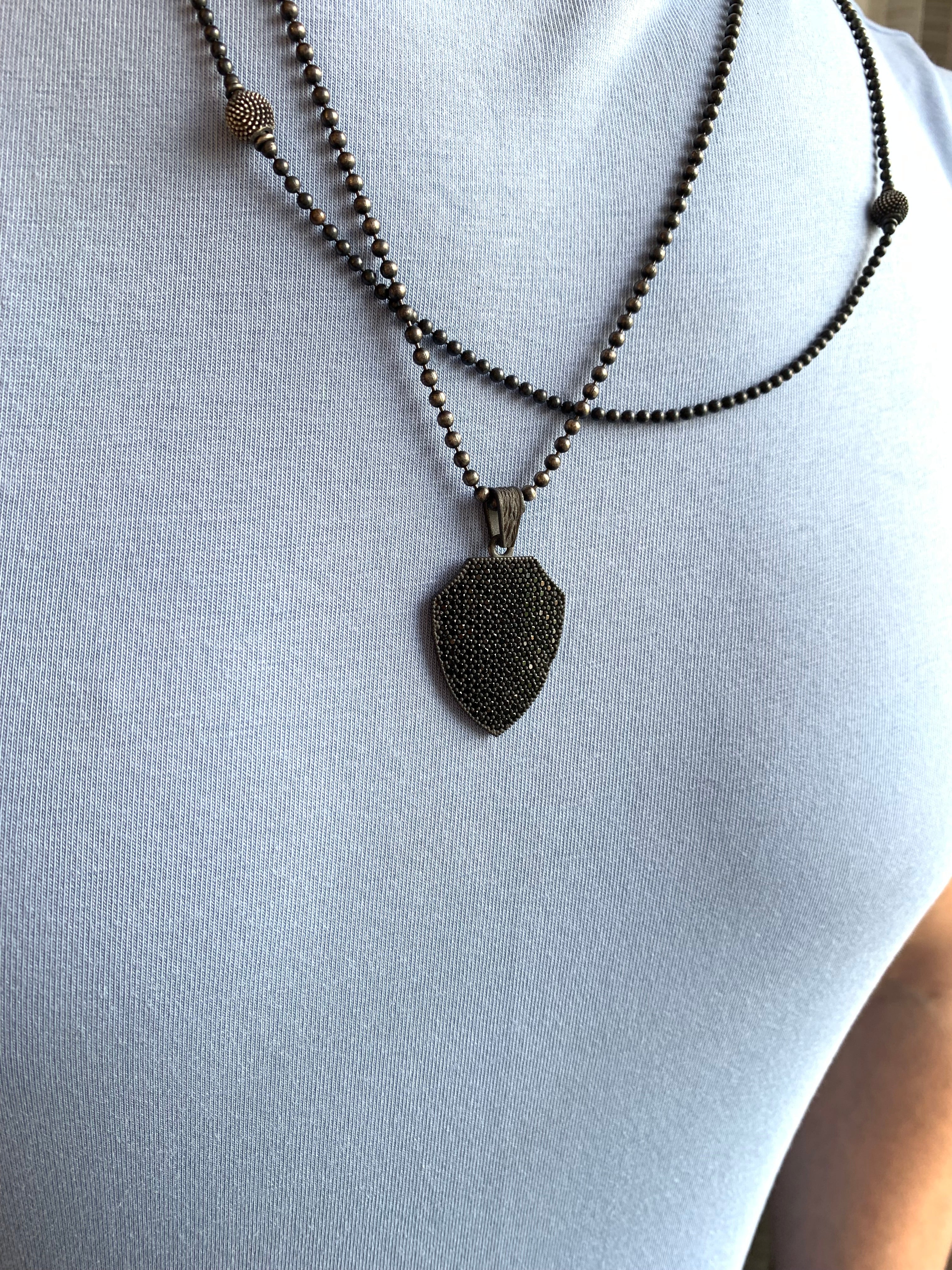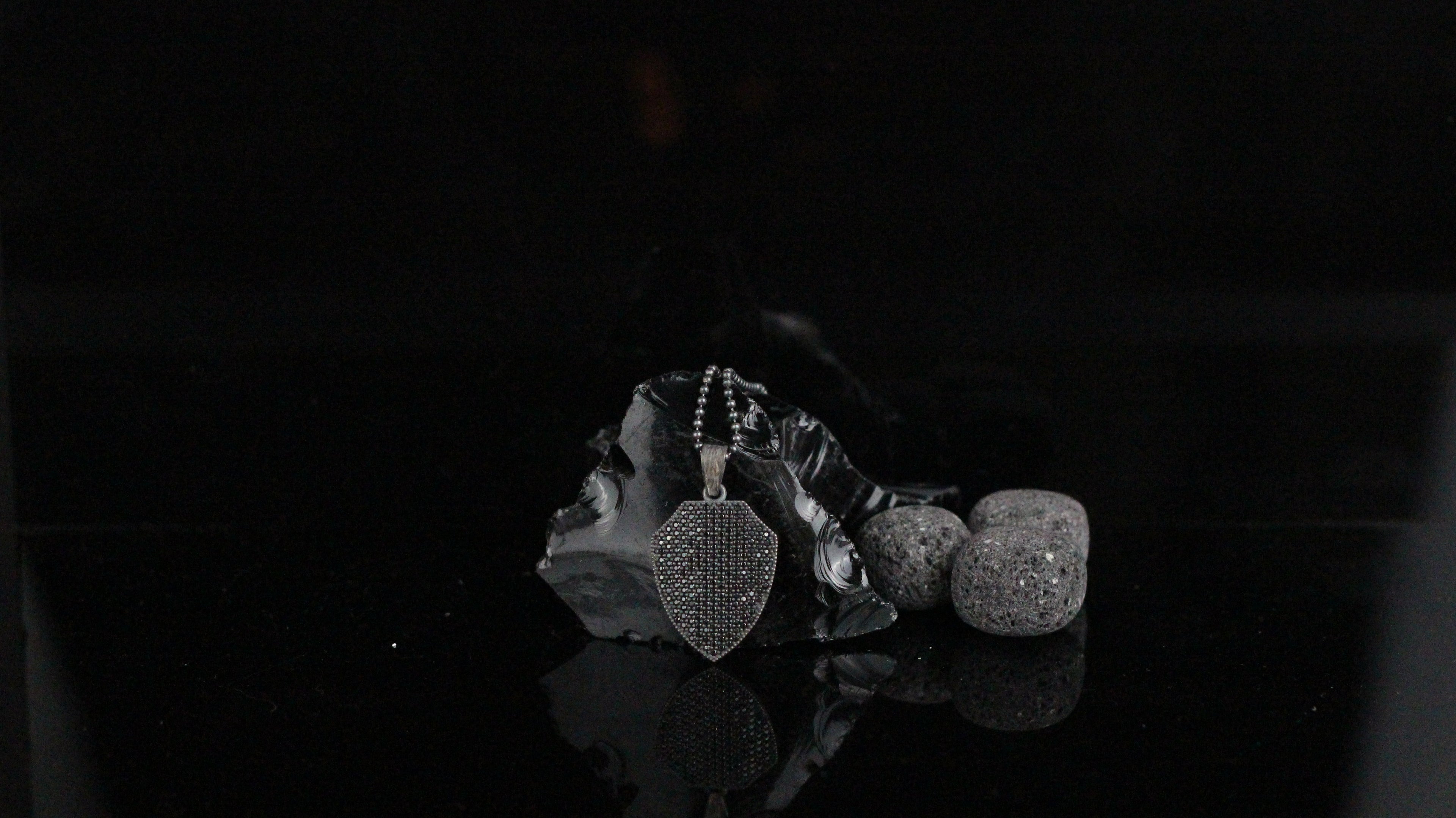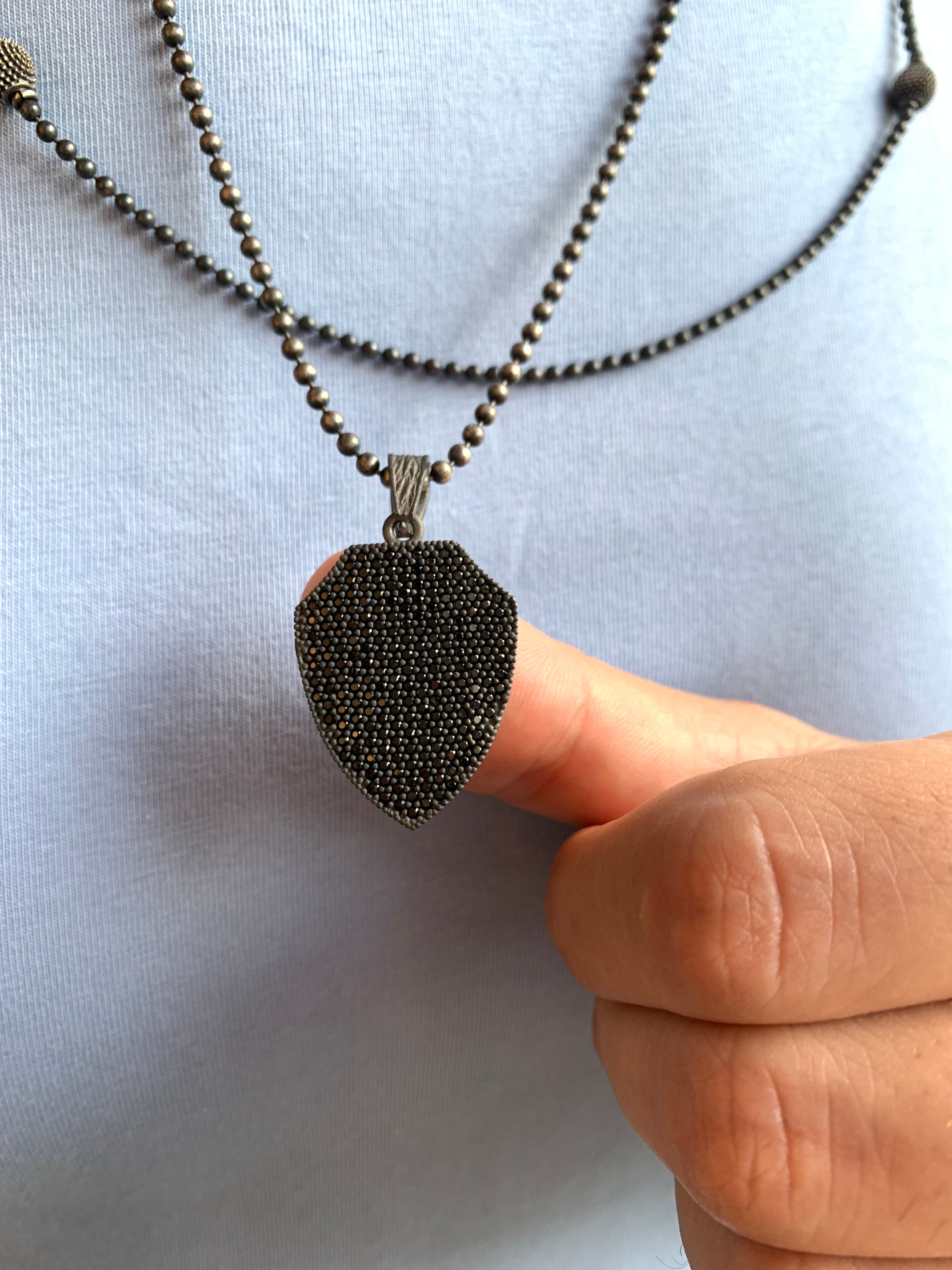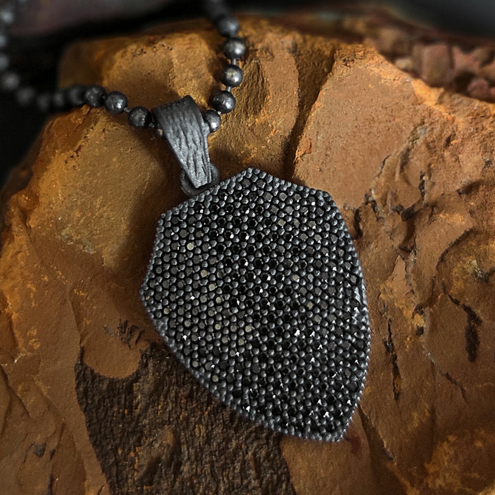 925K Silver Shield Men Necklace, Black Stone Men Pendant