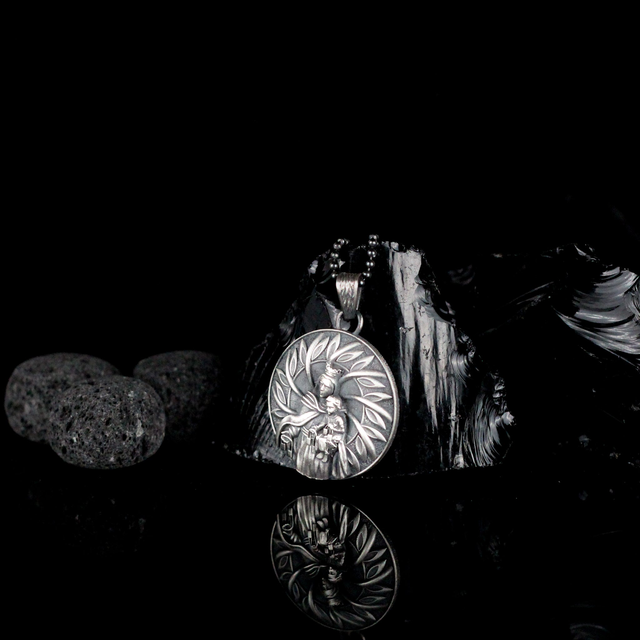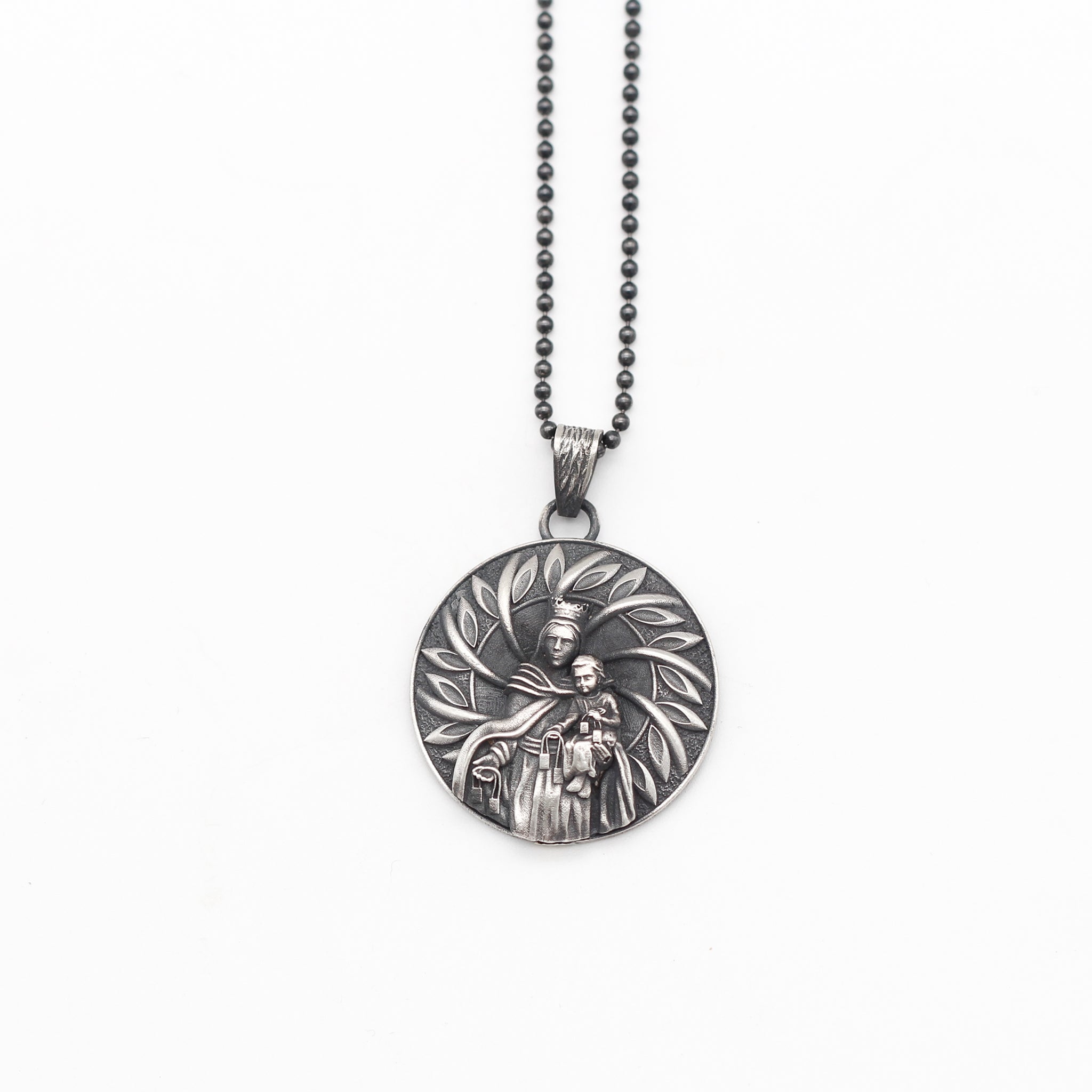 Handcrafted Virgin Mary with Baby Jesus Necklace in Sterling Silver | Religious Jewelry Gift for Men