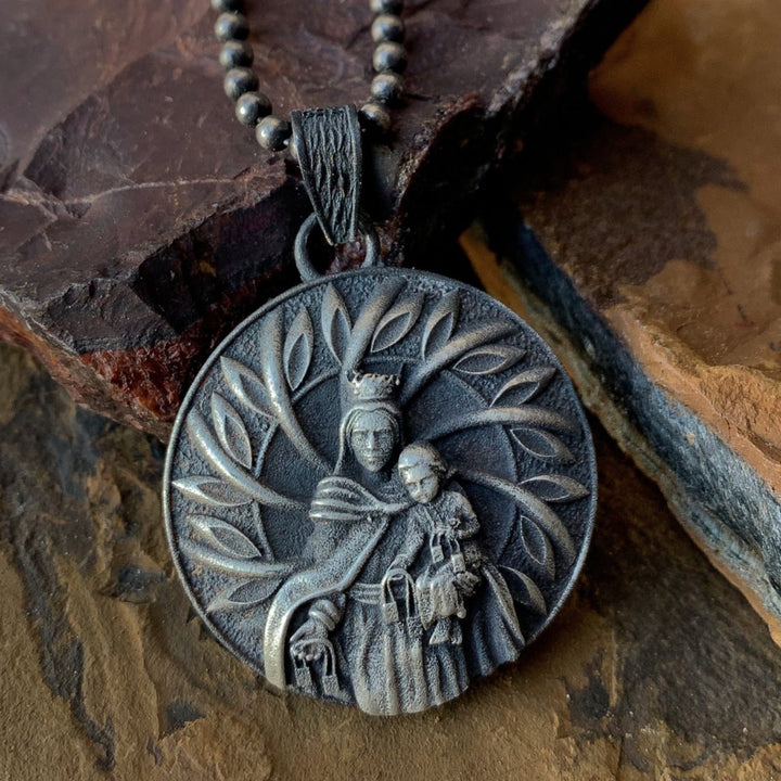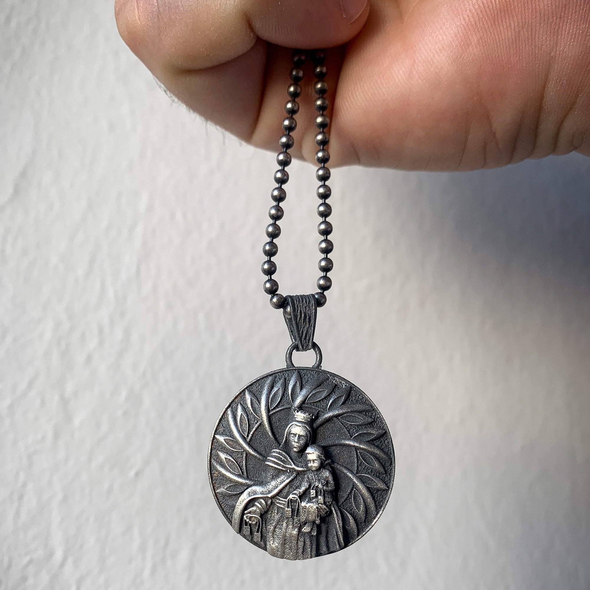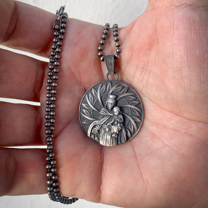 925K Silver Virgin Mary and Baby Jesus Necklace