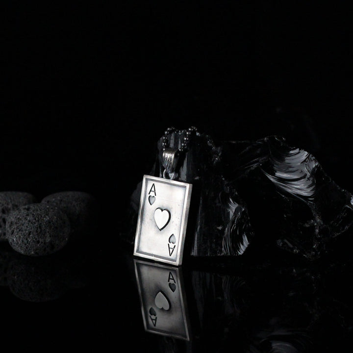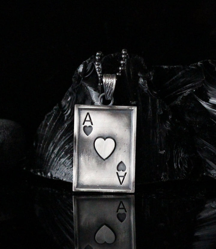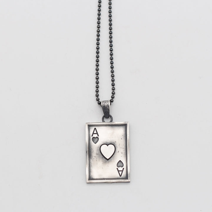 Ace Of Hearts Men Necklace, Silver Ace Of Hearts Necklace