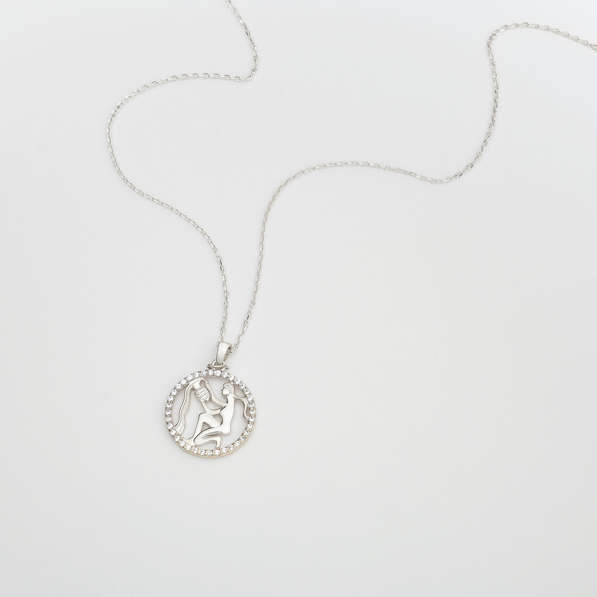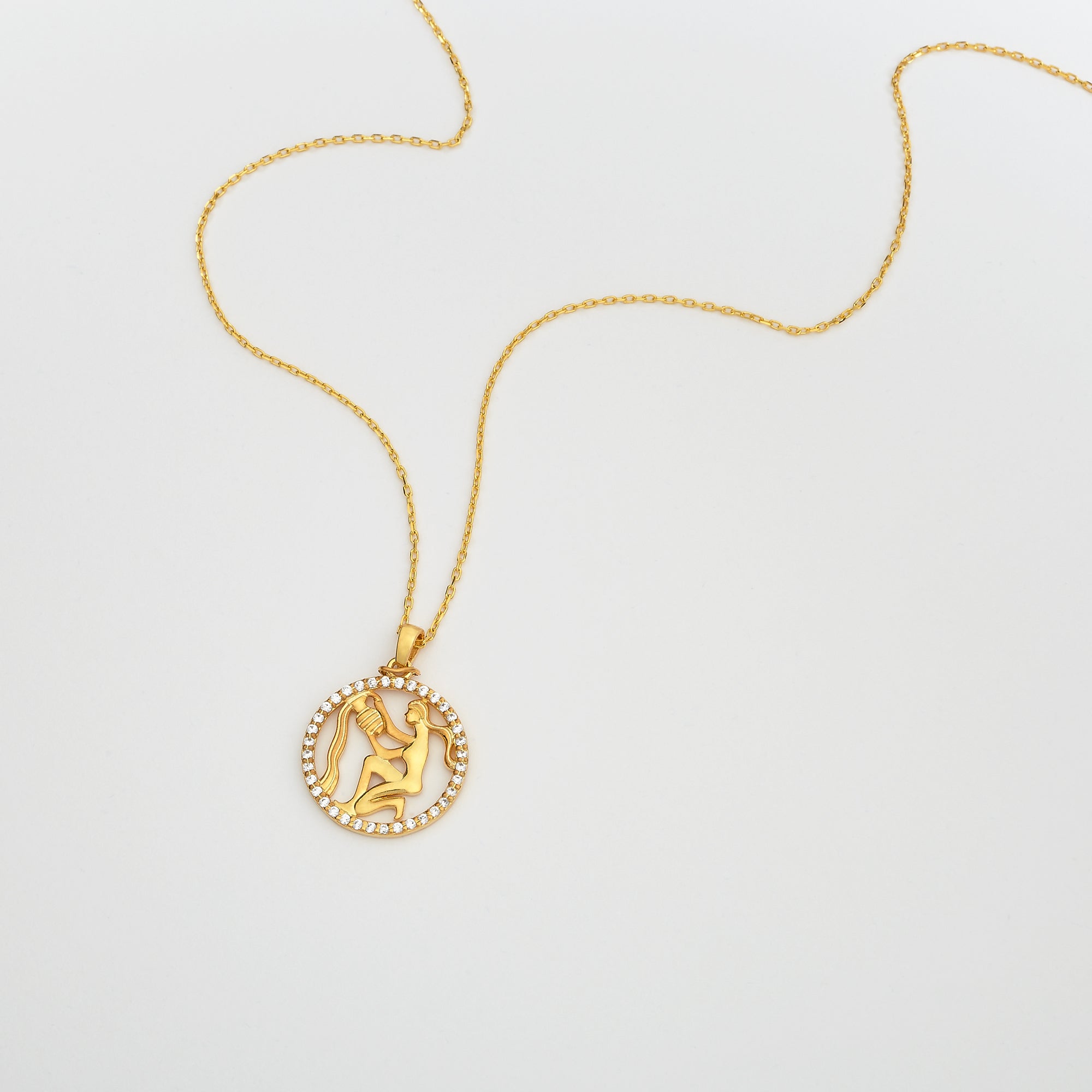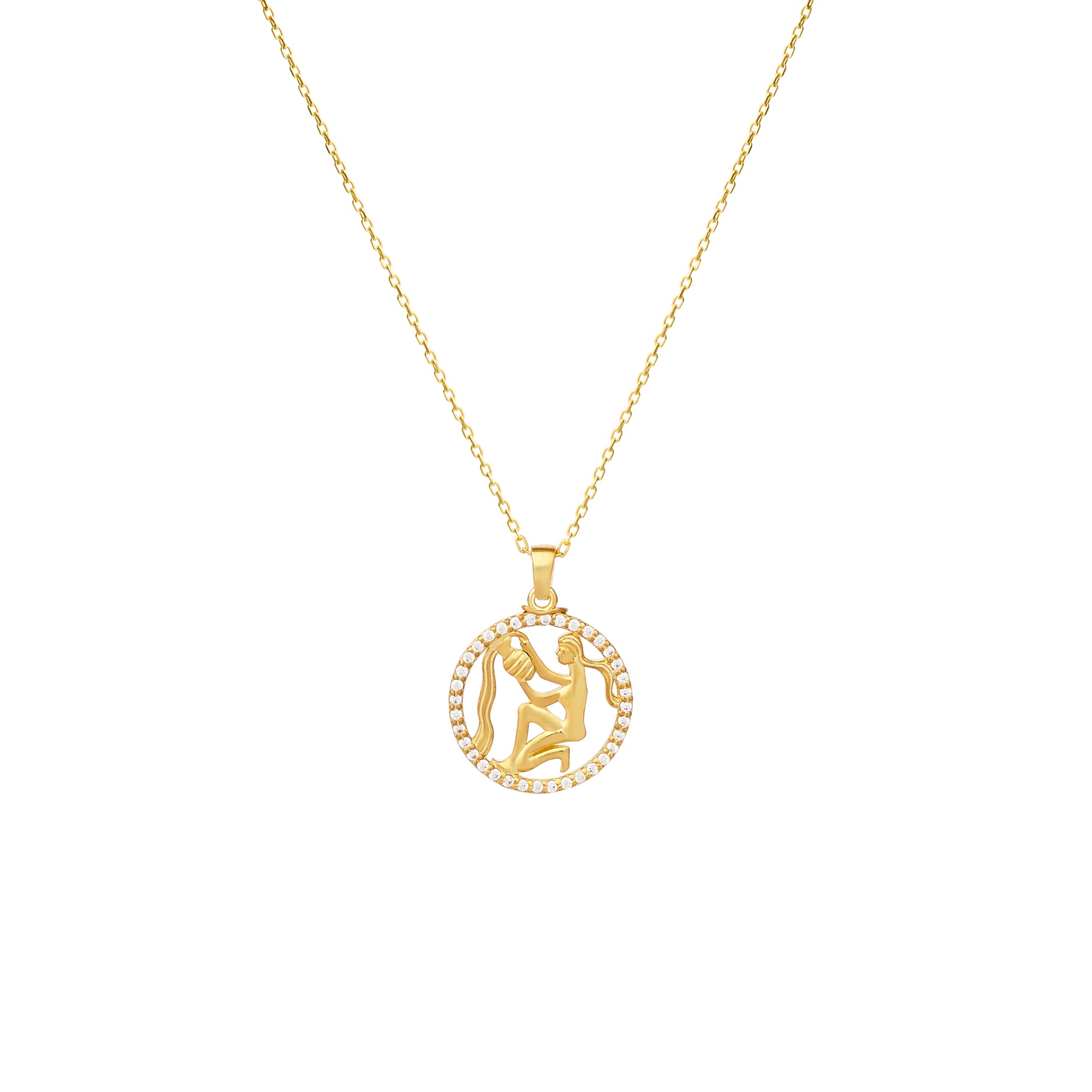 AQUARIUS Zodiac Necklace | Zodiac Gold & Silver Pendant with Diamond or Zircon Halo