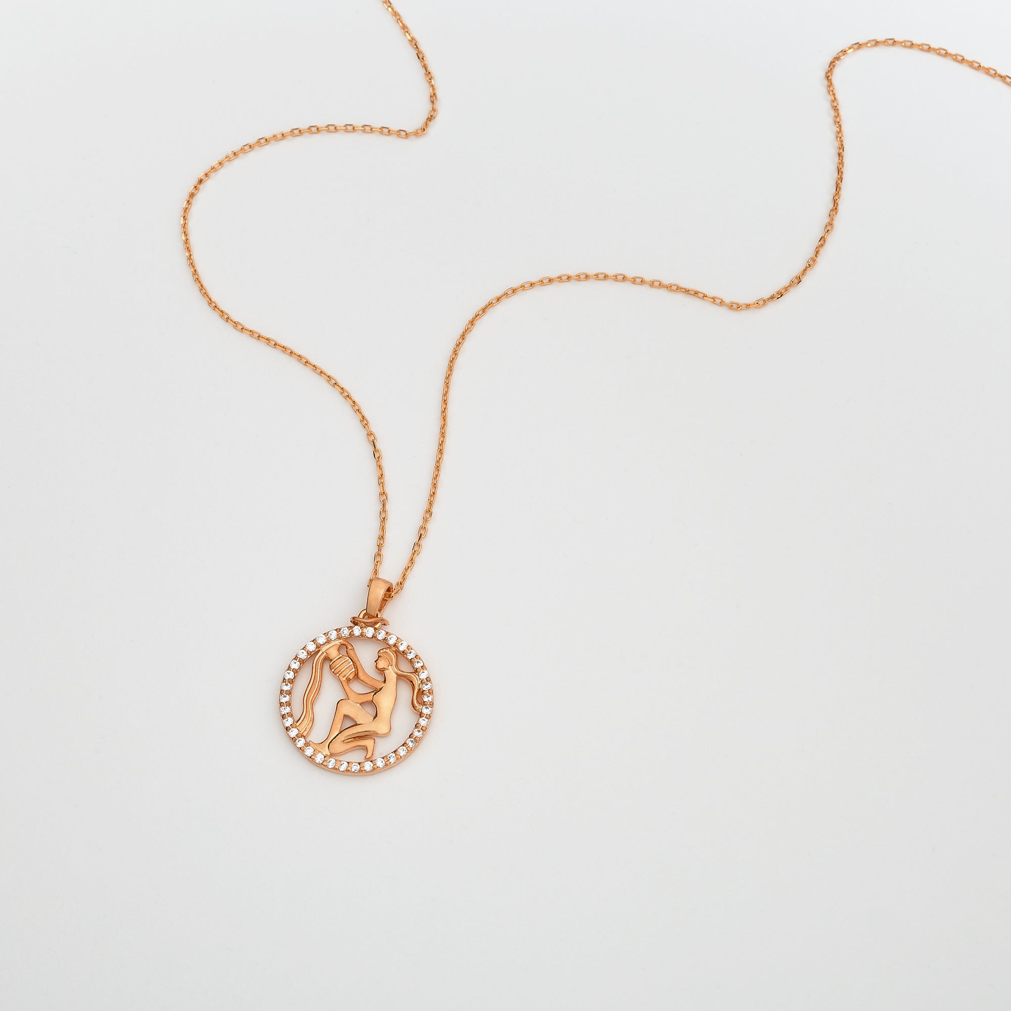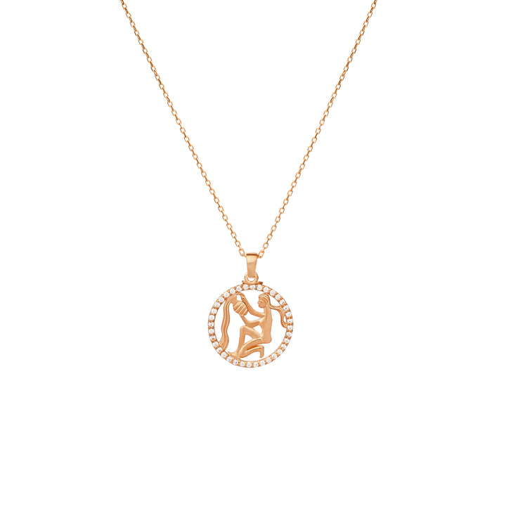 Celebrate the unique and free-spirited essence of Aquarius with this stunning Aquarius Zodiac Necklace. Featuring the Aquarius symbol encircled by a shimmering halo of diamonds or zircon stones, this elegant pendant is available in 925K sterling silver, 8K solid gold, or 14K solid gold. Perfect for astrology enthusiasts, this luxurious piece is designed to capture the individuality and charm of the water bearer.