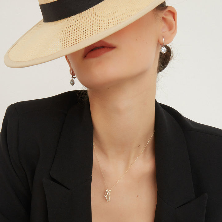 RUDDY Butterfly Outline Necklace | Elegant Gold Pendant with Zircon or Diamond Accents