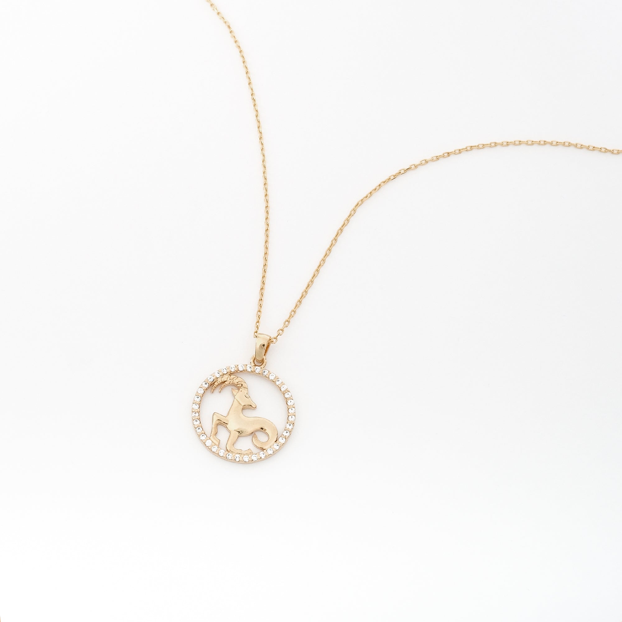 Showcase the determination and resilience of Capricorn with this stunning Capricorn Zodiac Necklace, featuring the iconic Capricorn symbol encircled by a dazzling halo of diamonds or zircon stones. Crafted in 925K sterling silver, 8K solid gold, or 14K solid gold, this pendant is designed for those who value their unique strengths and practical elegance. A meaningful gift for astrology lovers or a timeless addition to your jewelry collection.