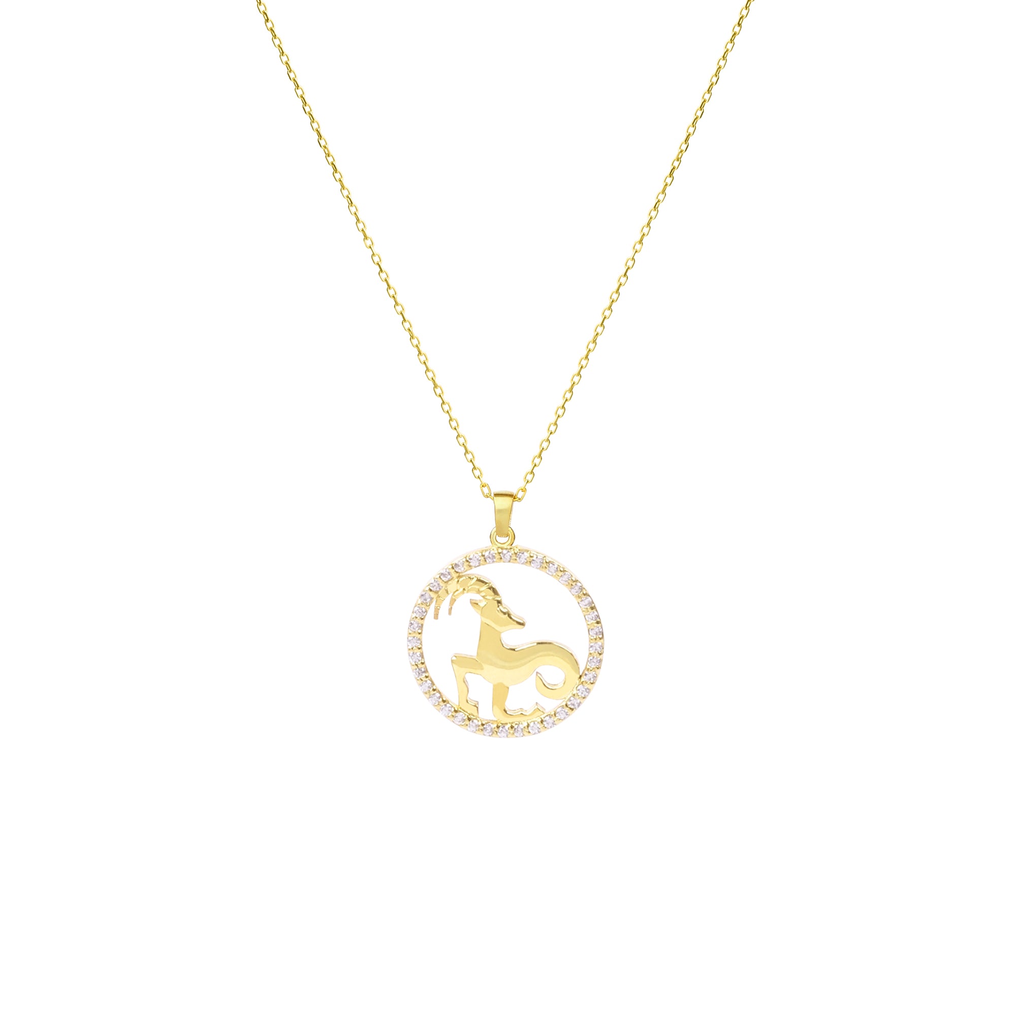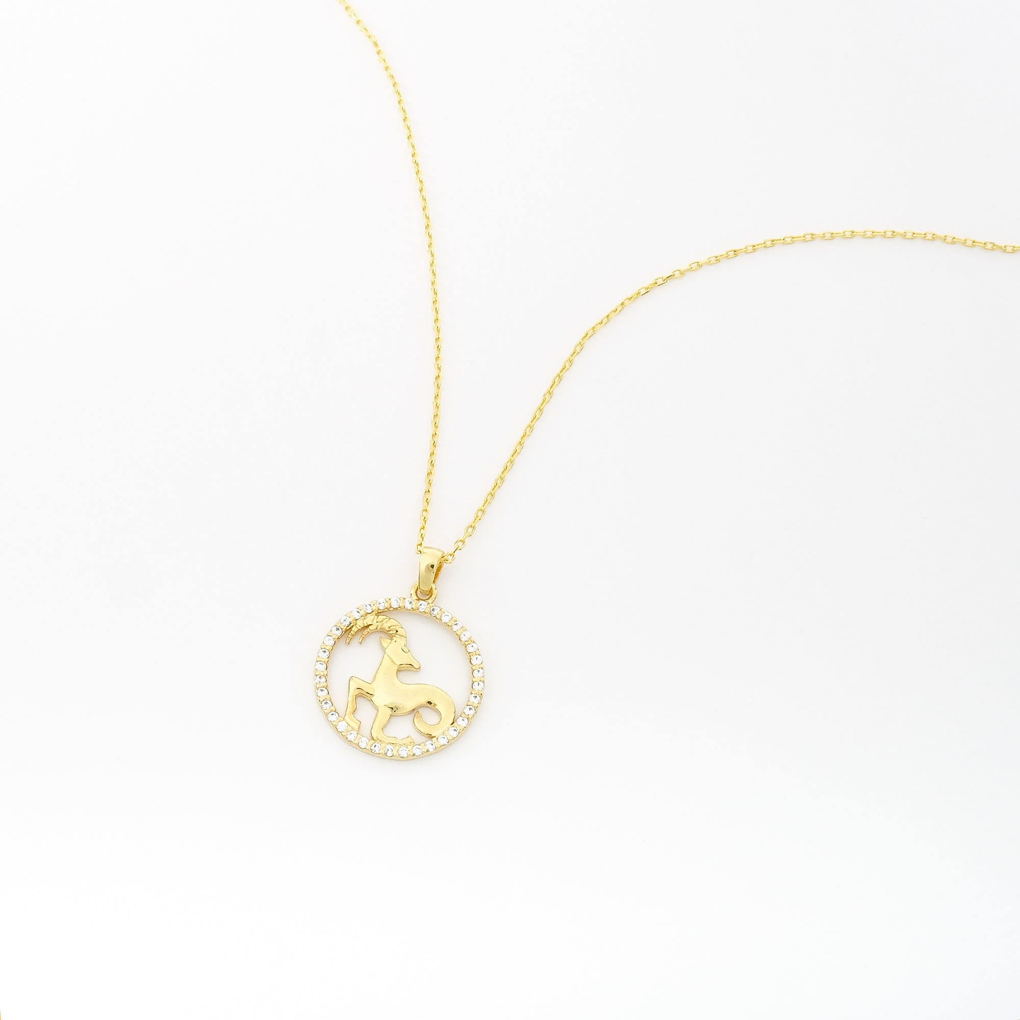 CAPRICORN Zodiac Necklace | Gold & Silver Astrology Pendant with Diamond or Zircon