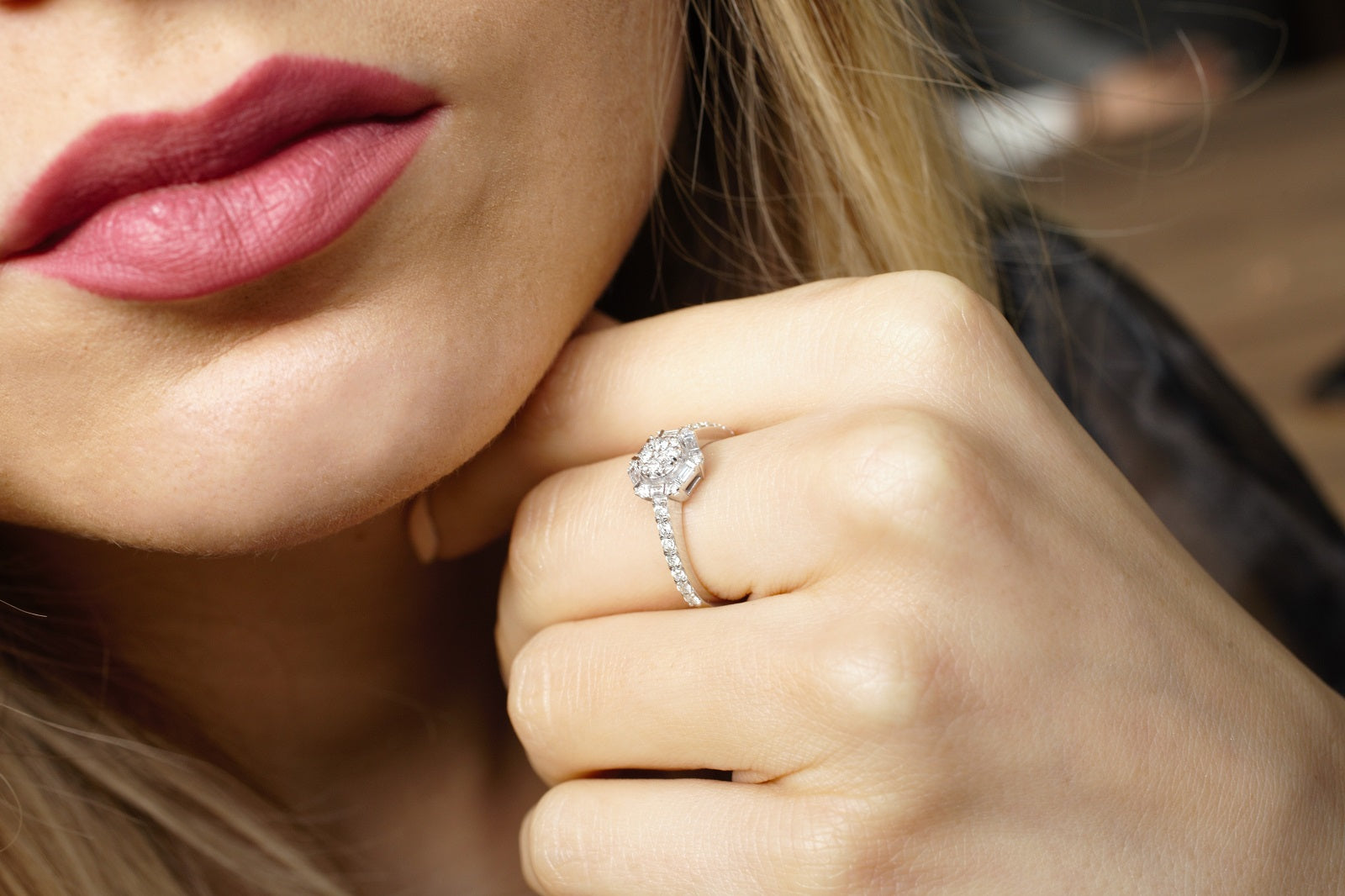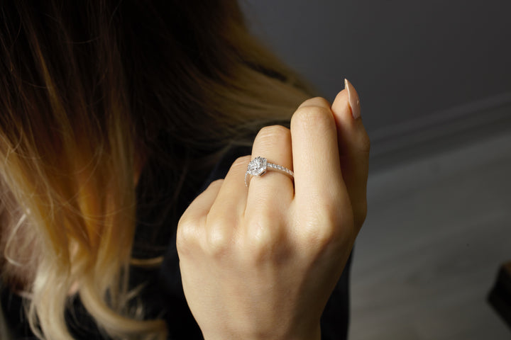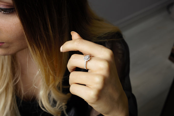 ARIANA Classic Round Halo Diamond Ring in 8K or 14K Solid Gold | Timeless Elegance Design Proposal Ring
