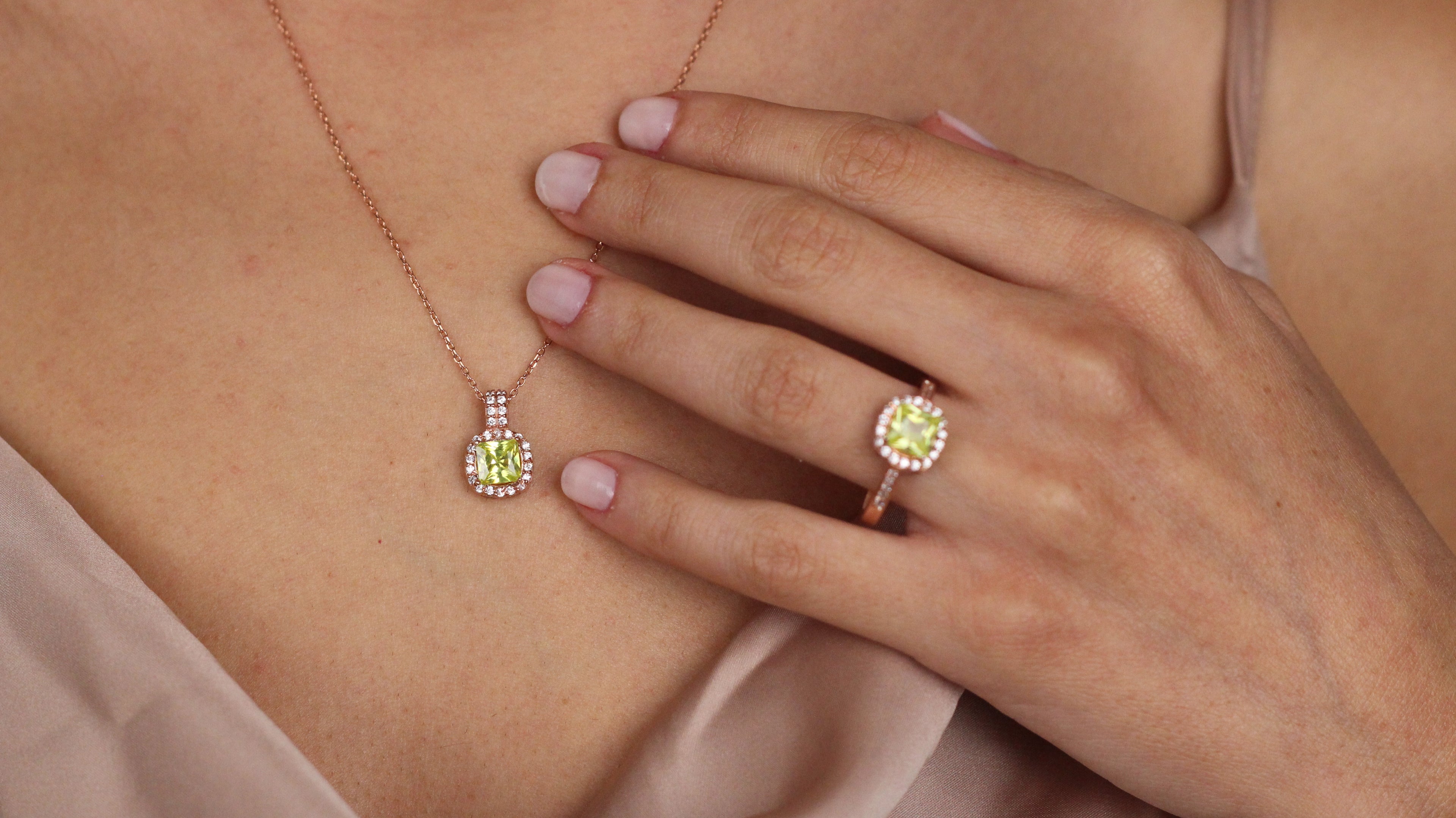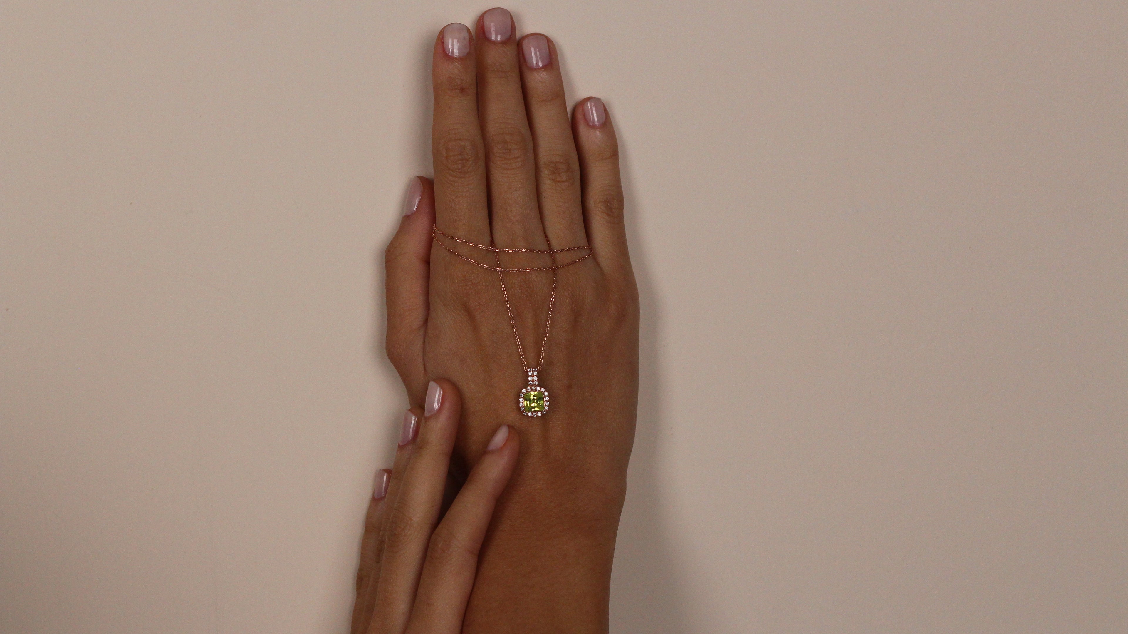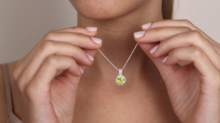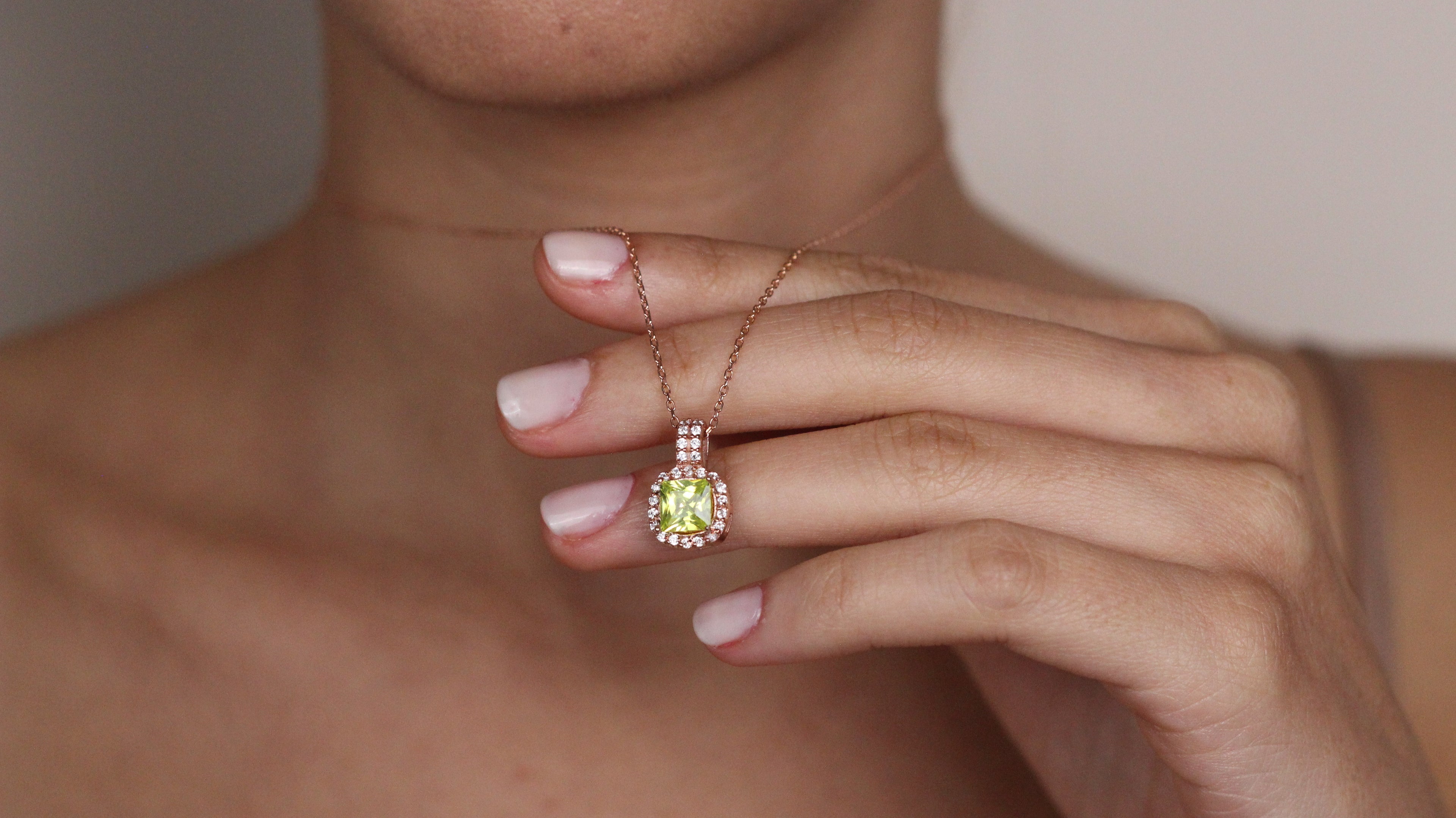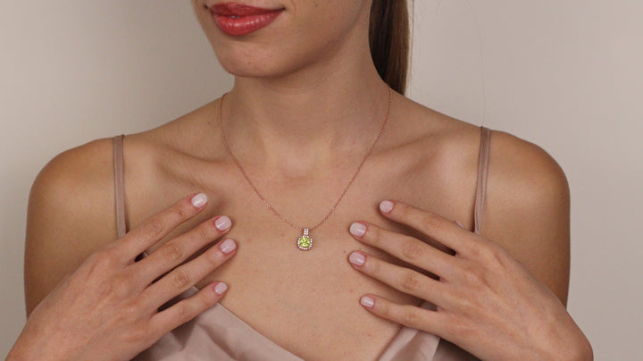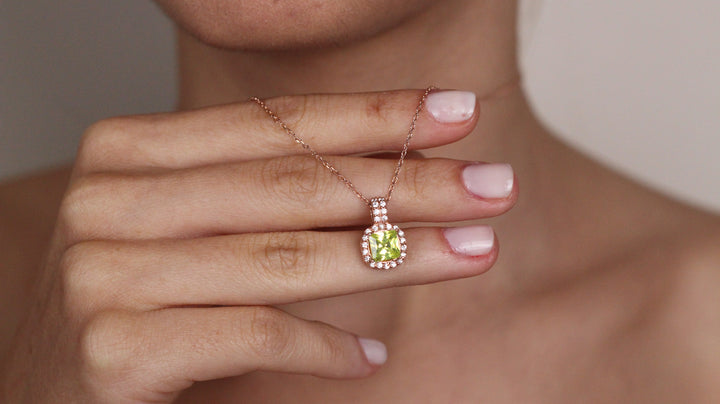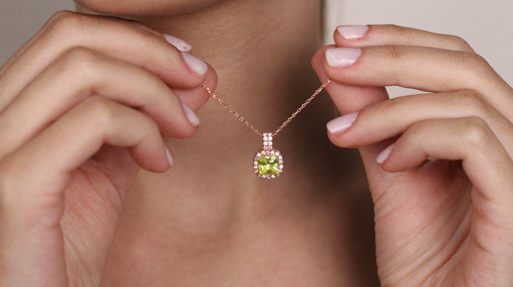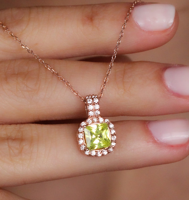 Cushion Cut CZ Green Sapphire Rose Pendant | Halo Necklace | Gift for Her