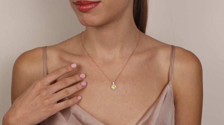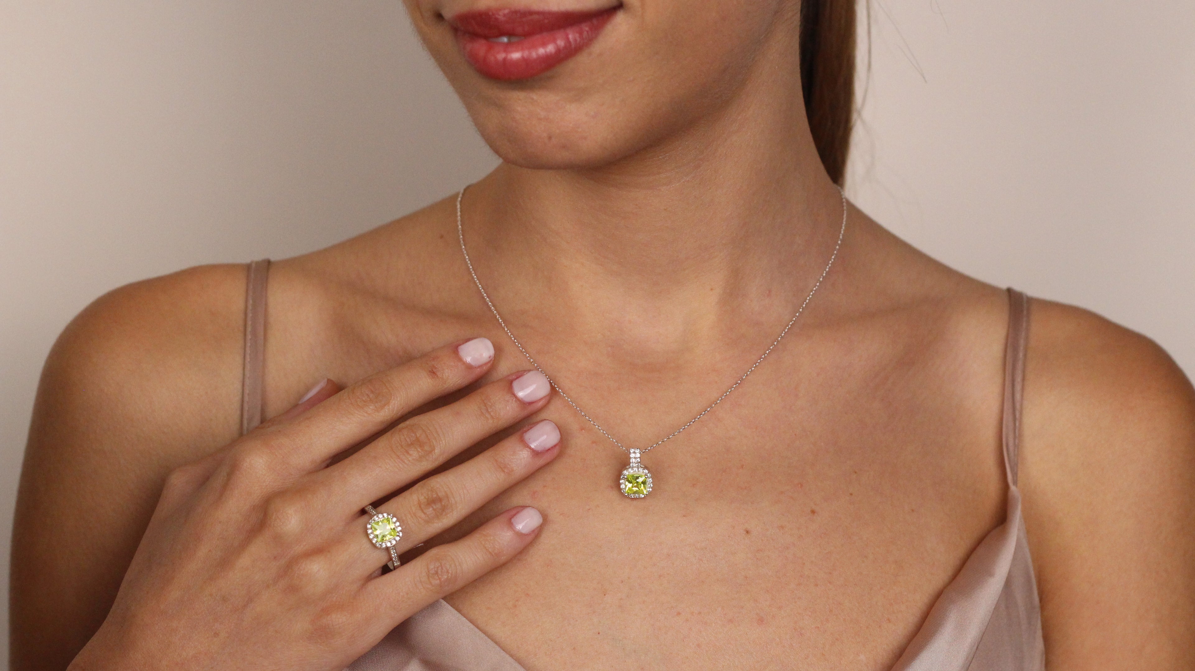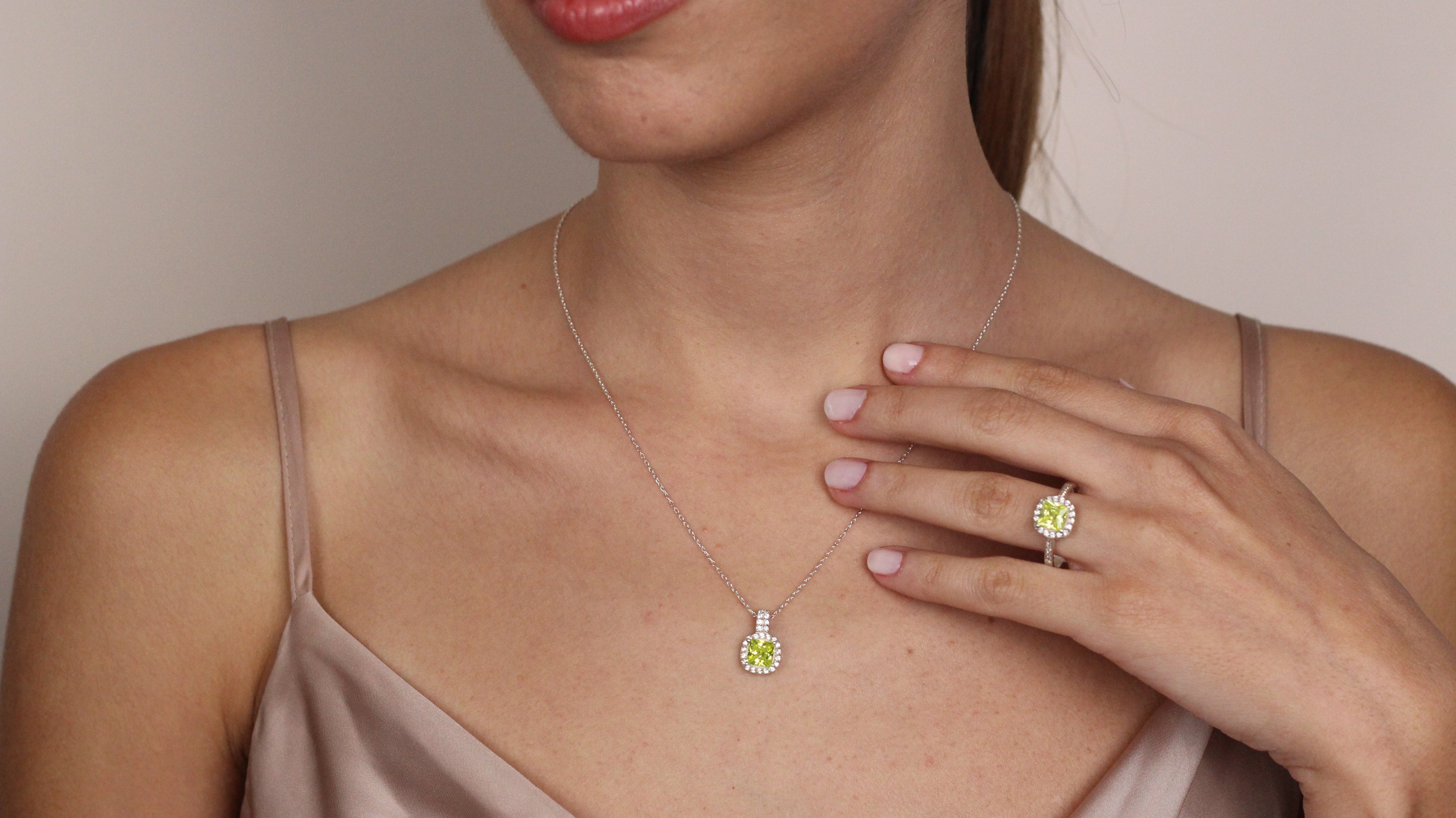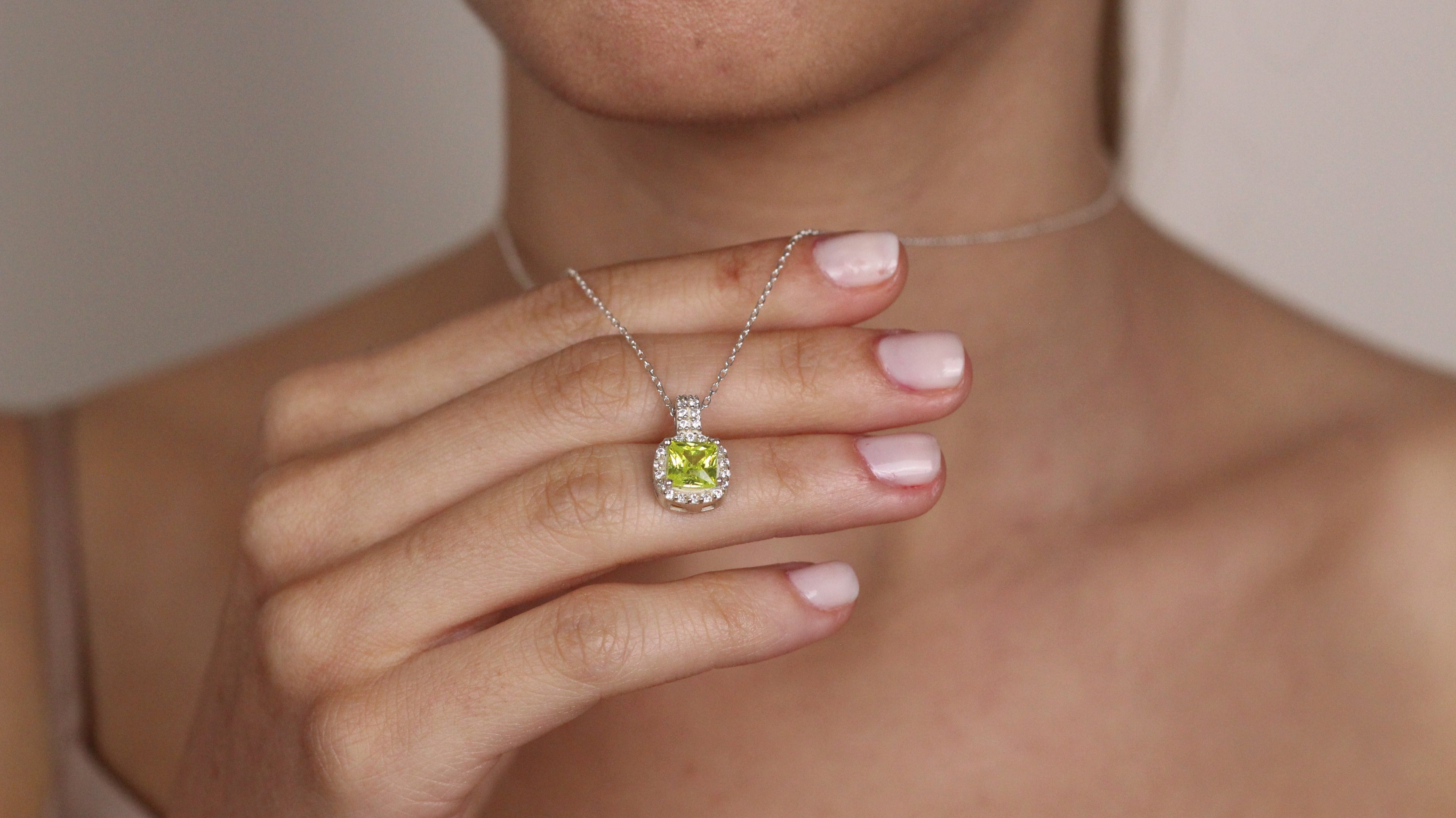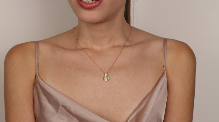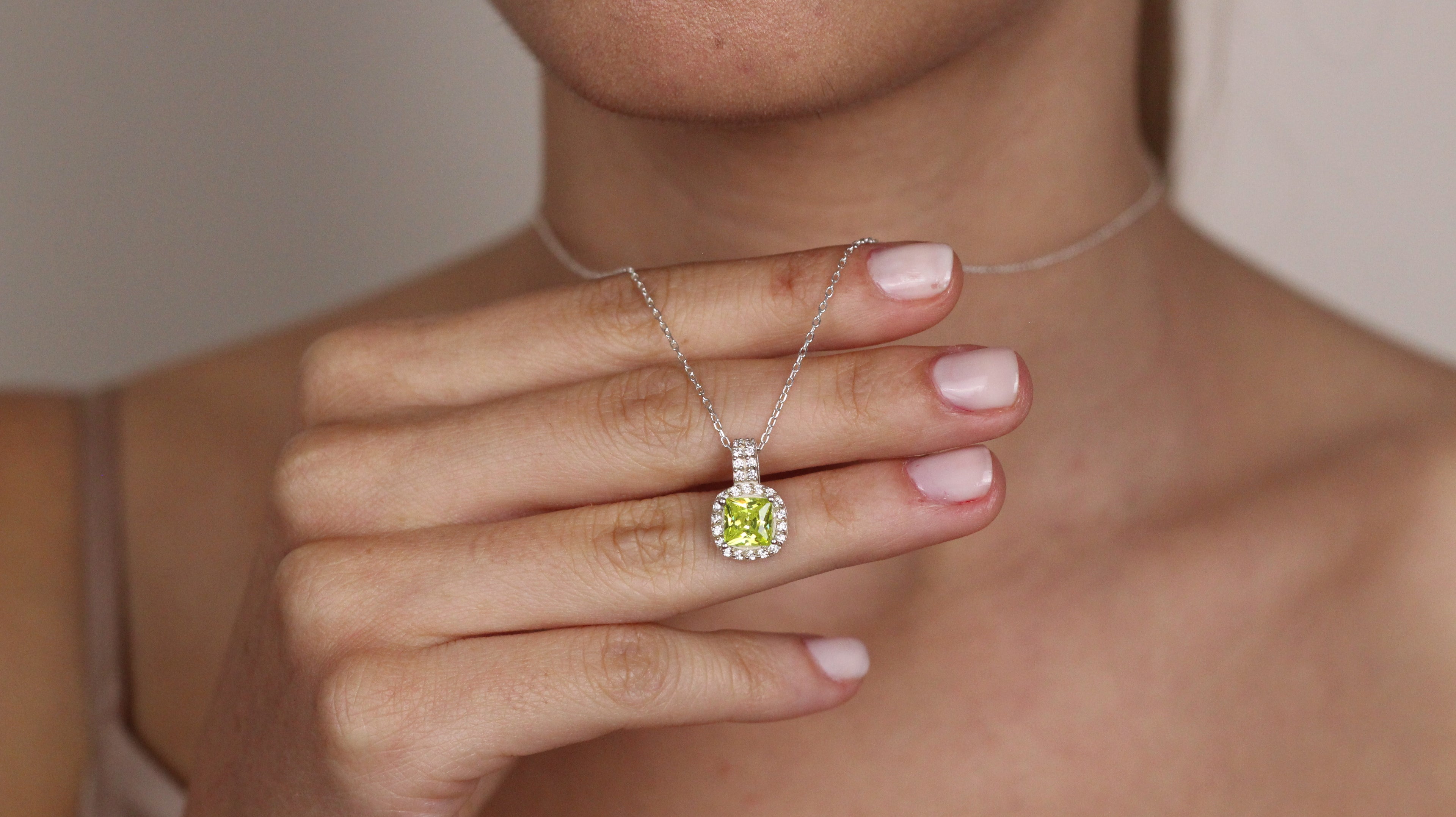 Cushion Cut CZ Green Sapphire Rose Pendant | Halo Necklace | Gift for Her