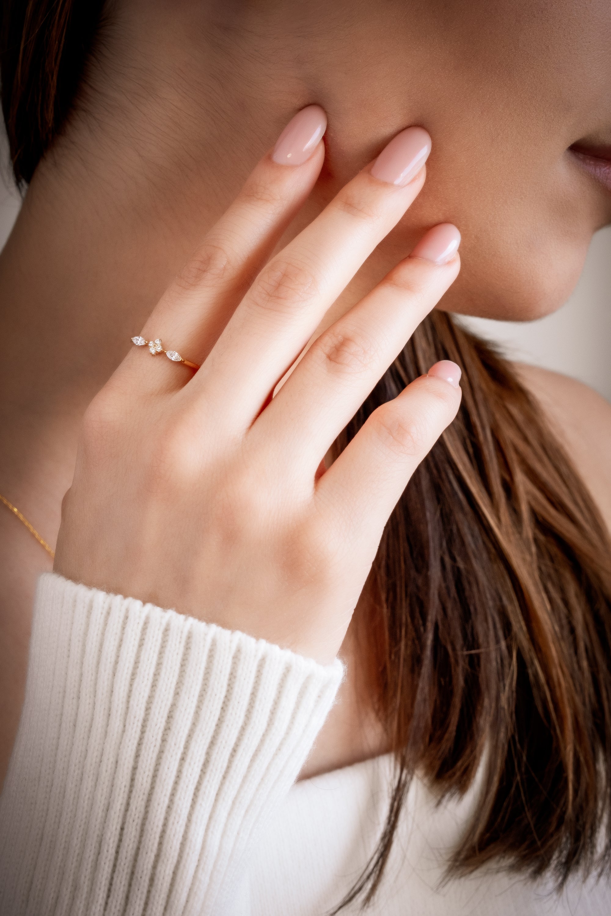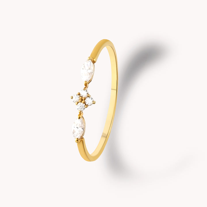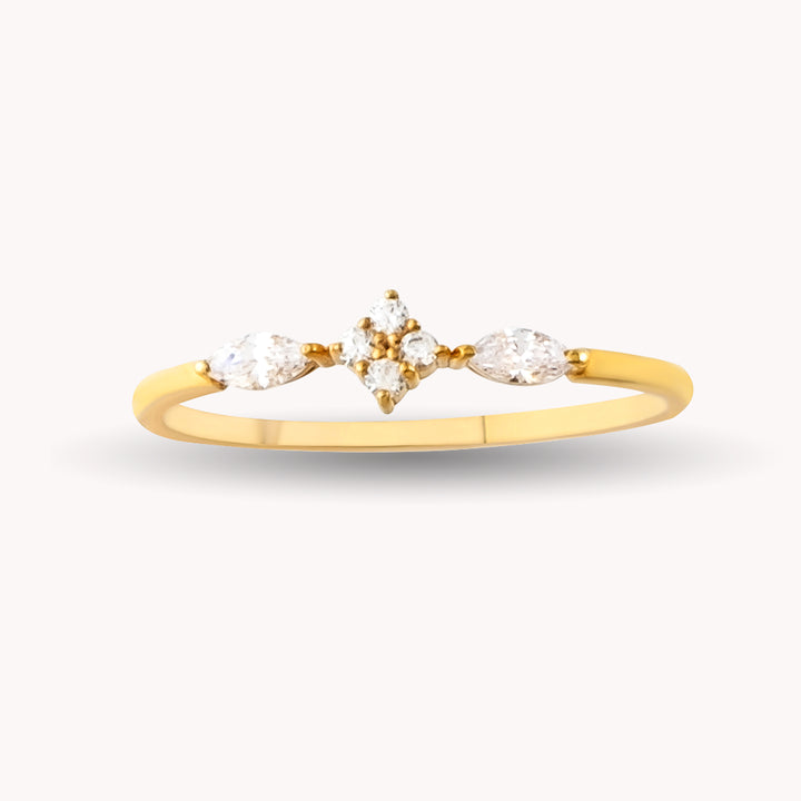DAISY Refined Marquise Cut Gold Ring with Diamond or Zircon | 8K & 14K Solid Gold Cluster Wedding Ring for Women