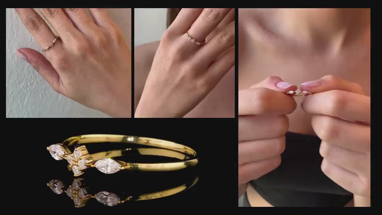 Exude elegance with our stunning Marquise Cut Ring, meticulously crafted from 8K or 14K solid gold. Featuring a series of sparkling marquise-cut stones, available in genuine diamonds or shimmering zircon, this ring is a timeless testament to sophisticated style. Perfect for engagements, anniversaries, or simply elevating your everyday look, this exquisite piece is designed for the modern, confident woman.