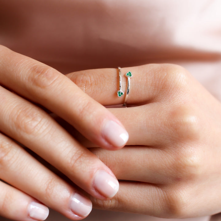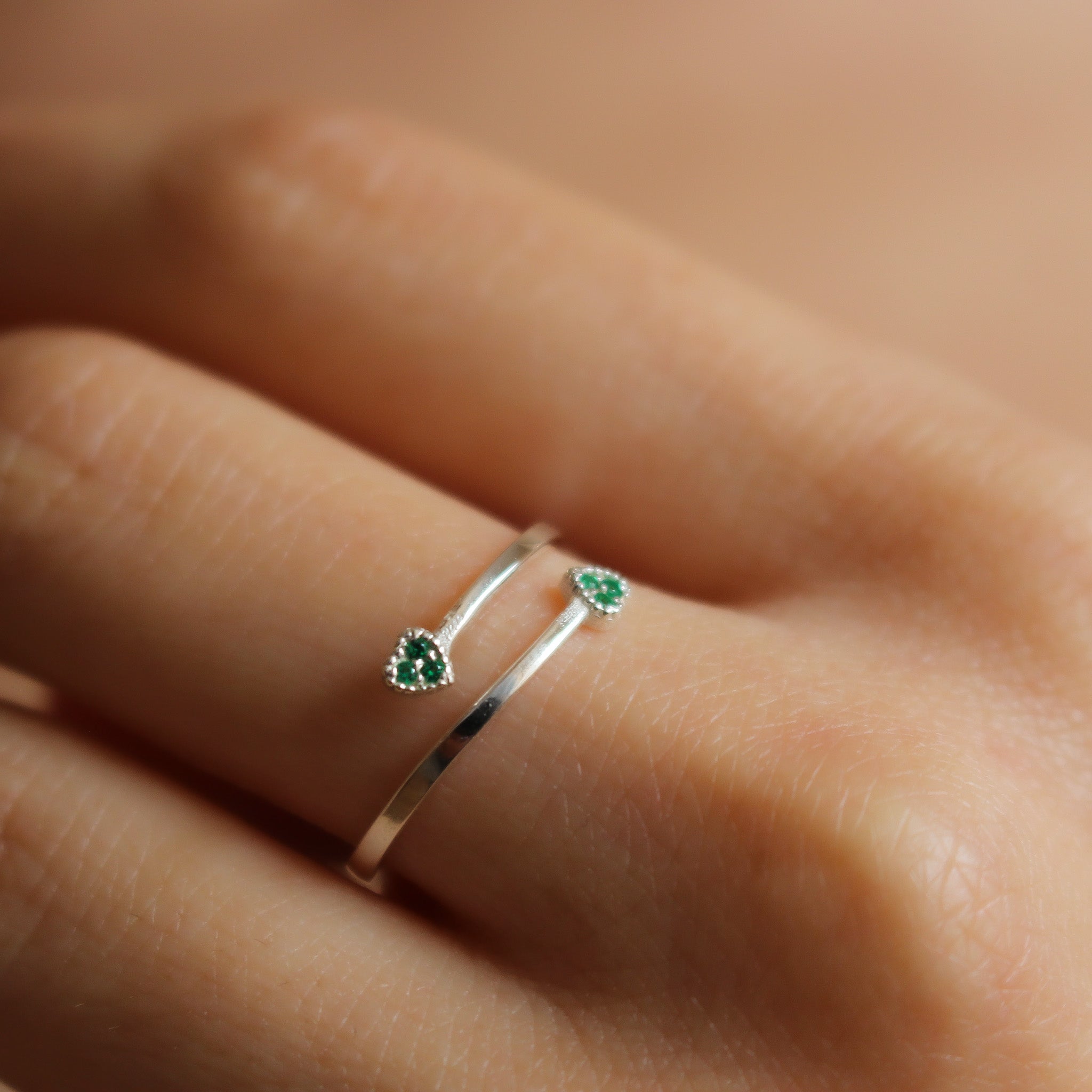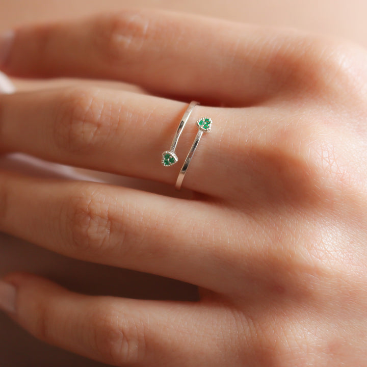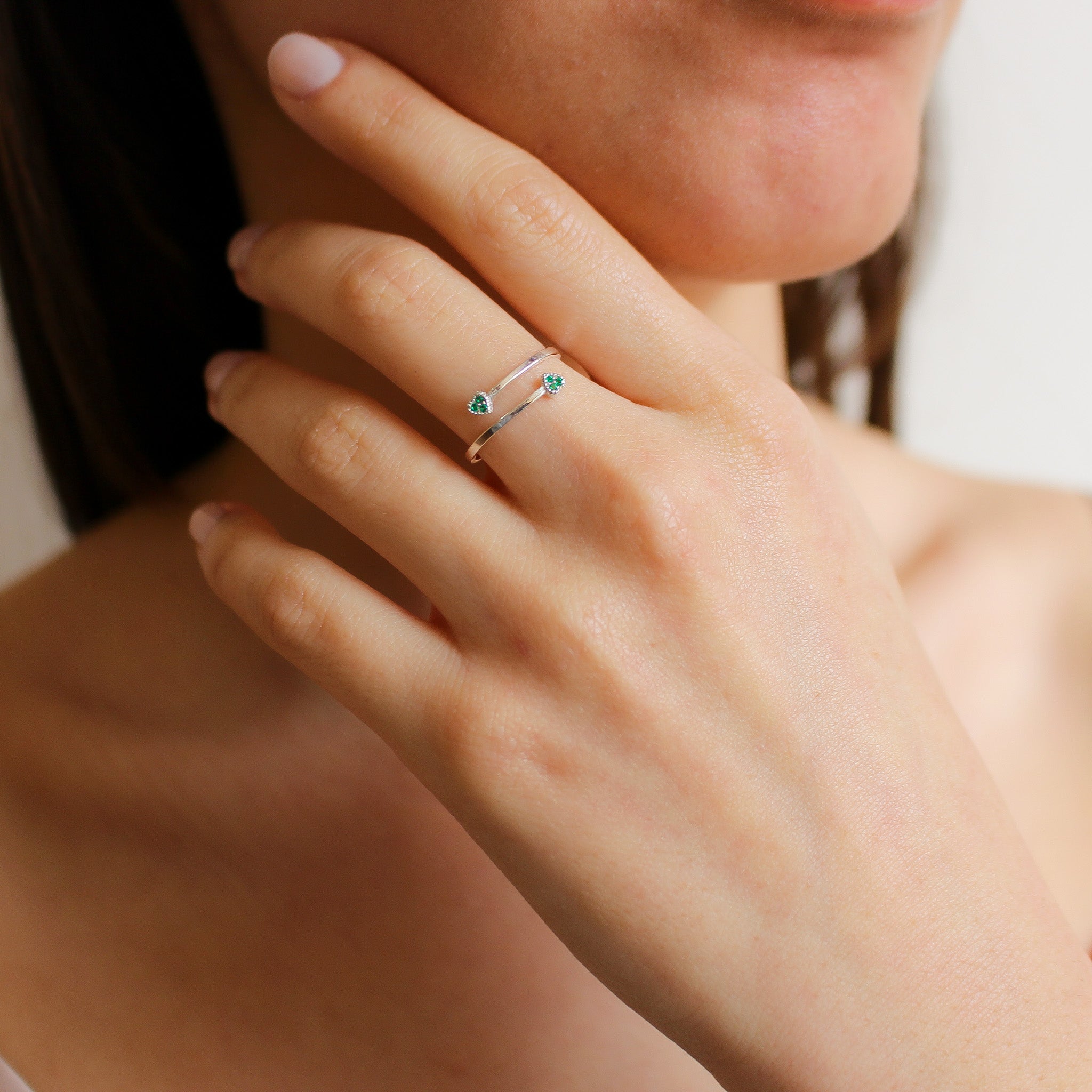 ALEX Solid Gold Double Two Heart Emerald Ring | Adjustable Emerald Hearts Ring for Women