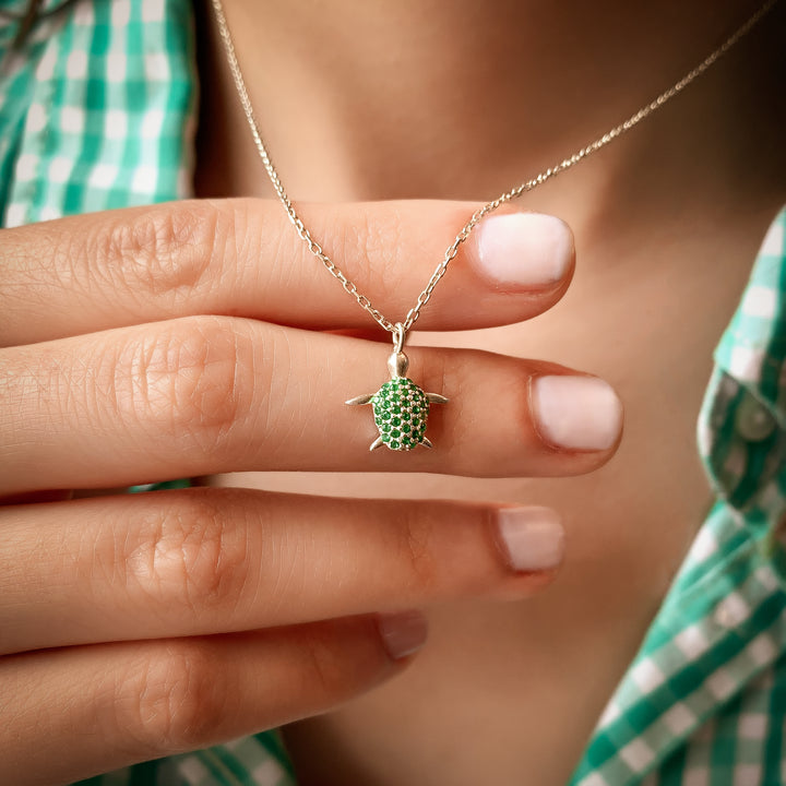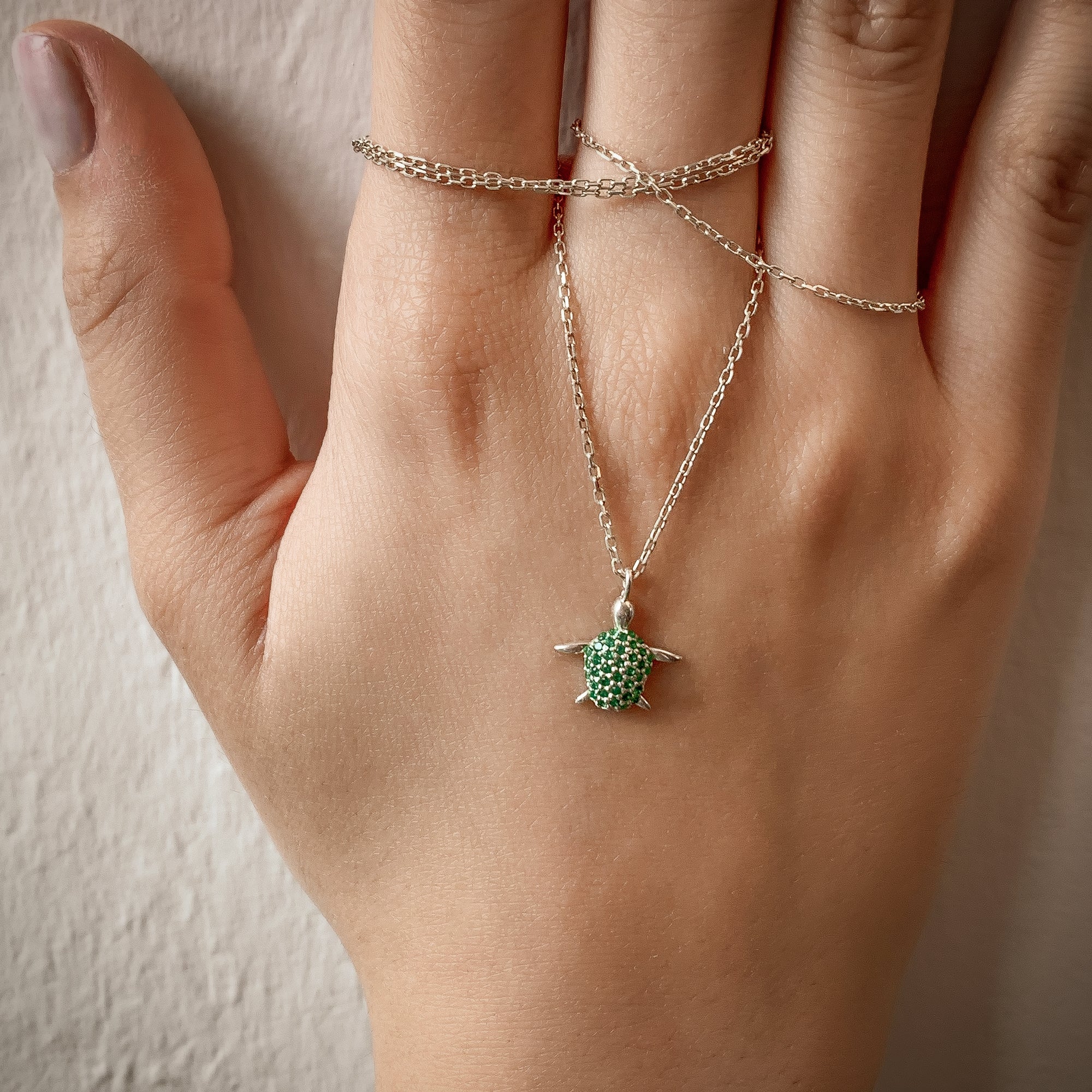 Bring a sense of charm and natural beauty to your jewelry collection with this stunning Emerald Turtle Necklace. The intricate turtle design is adorned with vibrant emerald stones and shimmering zircon accents, making it a symbol of longevity and elegance. Available in 925K sterling silver, 8K solid gold, or 14K solid gold, this pendant is a thoughtful gift for nature lovers or a luxurious statement piece for any occasion.