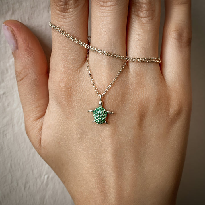 RONNIE Emerald Tortoise Necklace | Nature-Inspired Gold & Silver Gemstone Pendant