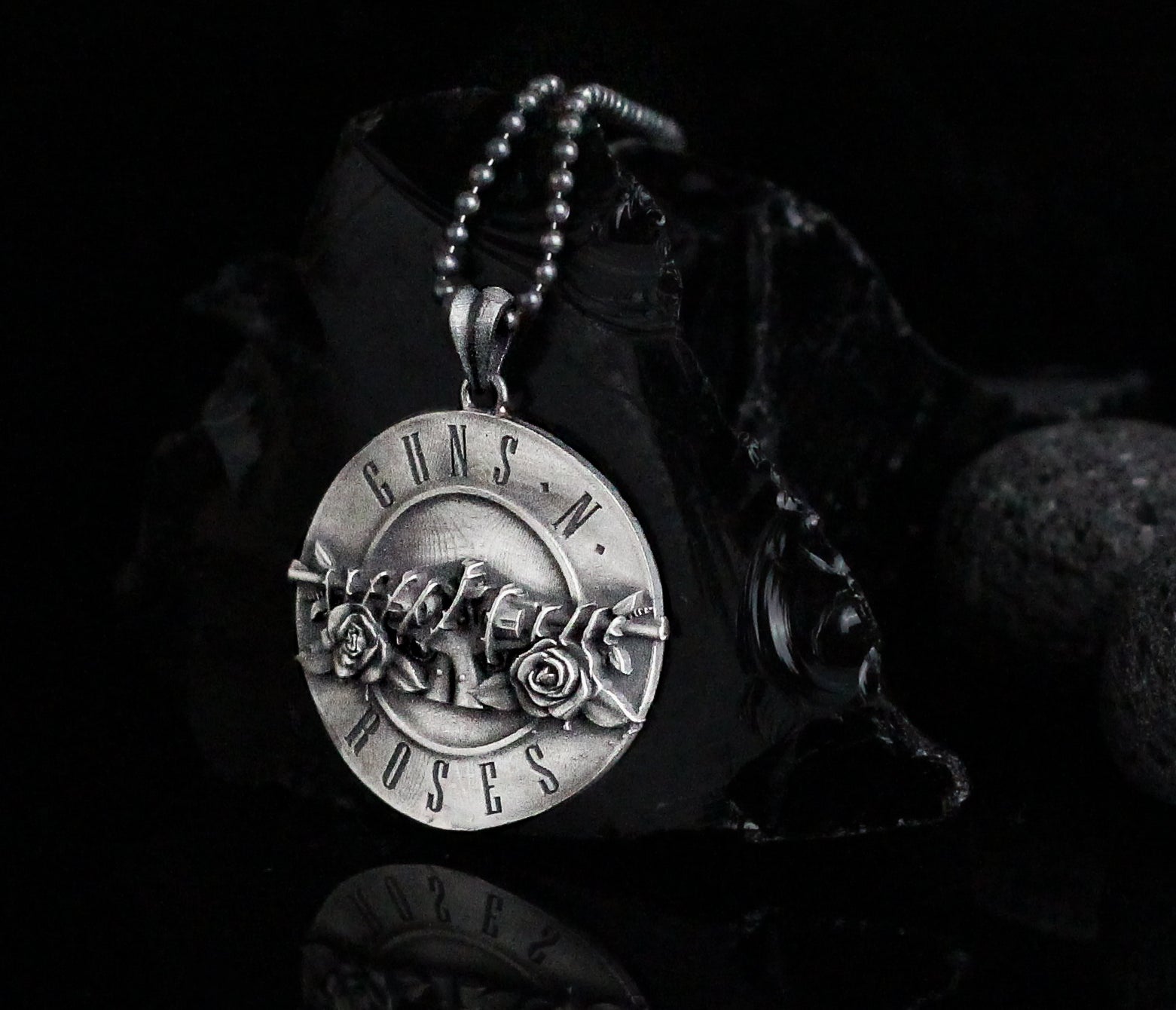 Iconic Guns N' Roses Silver Necklace | Perfect for Fans and Rock Enthusiasts Jewelry