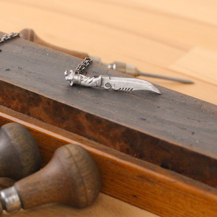 Tiger Head on Sword Necklace, Zulfiqar Necklace