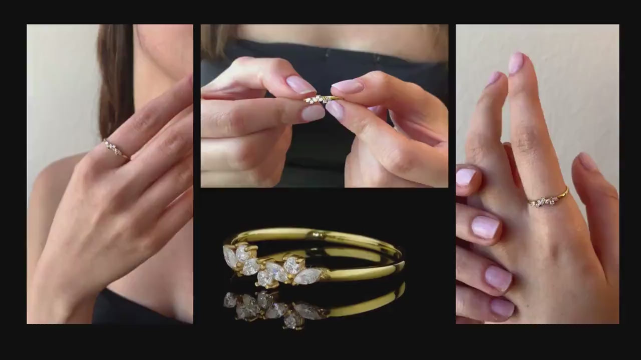 TIARA Radiant Marquise Cluster Ring in Solid Gold | Luxurious Marquise Cut Wedding Ring