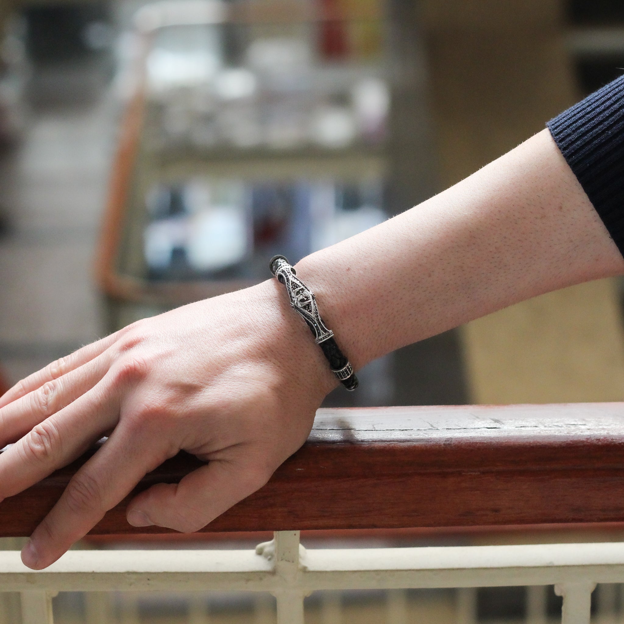 925K Sterling Silver and Leather Men's Bracelet with Double-Headed Eagle Motif | Unique Jewelry Men