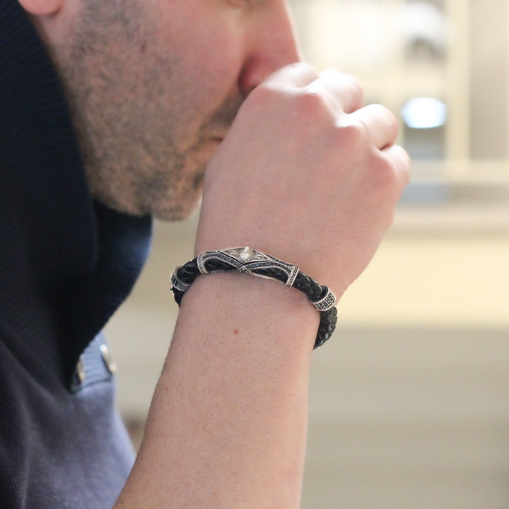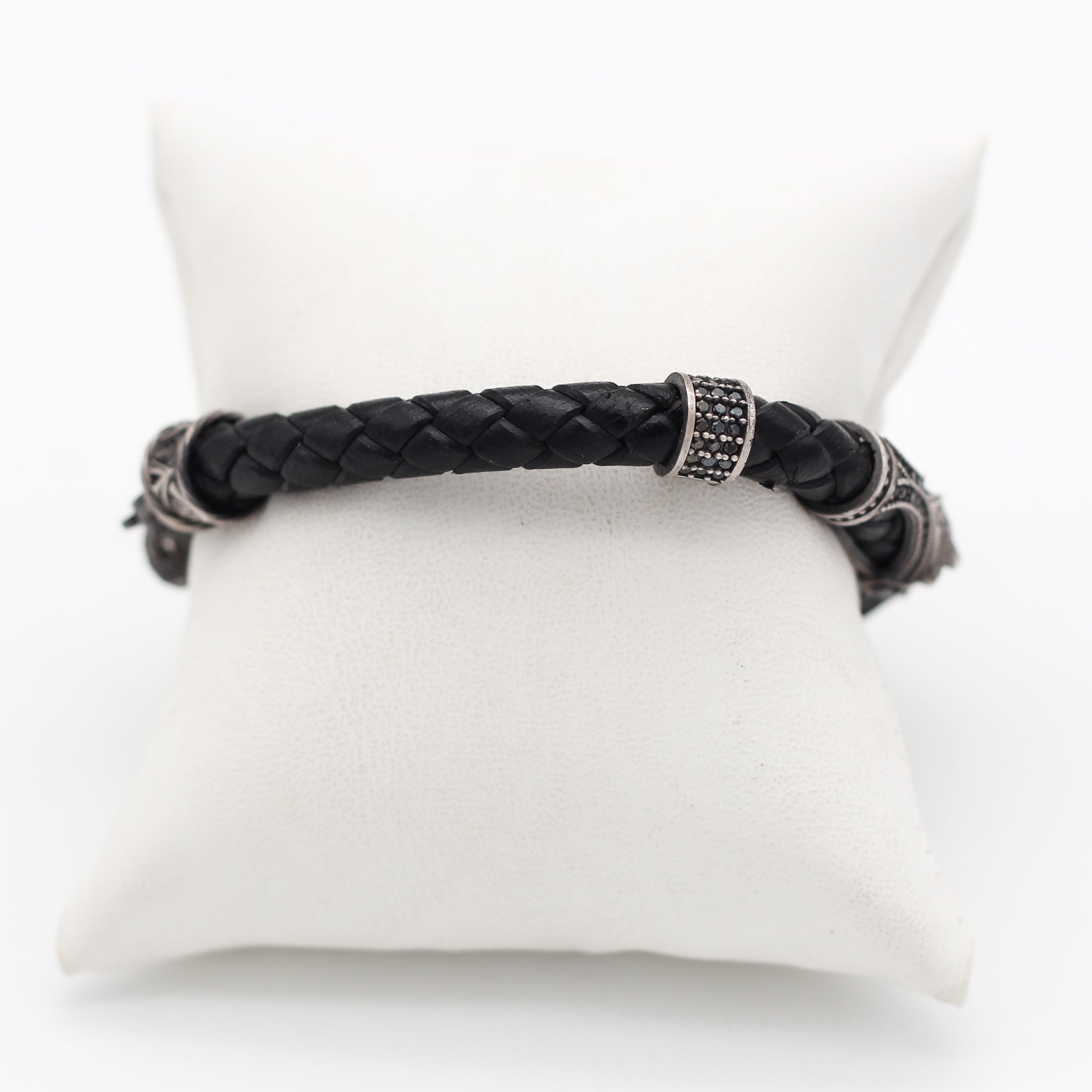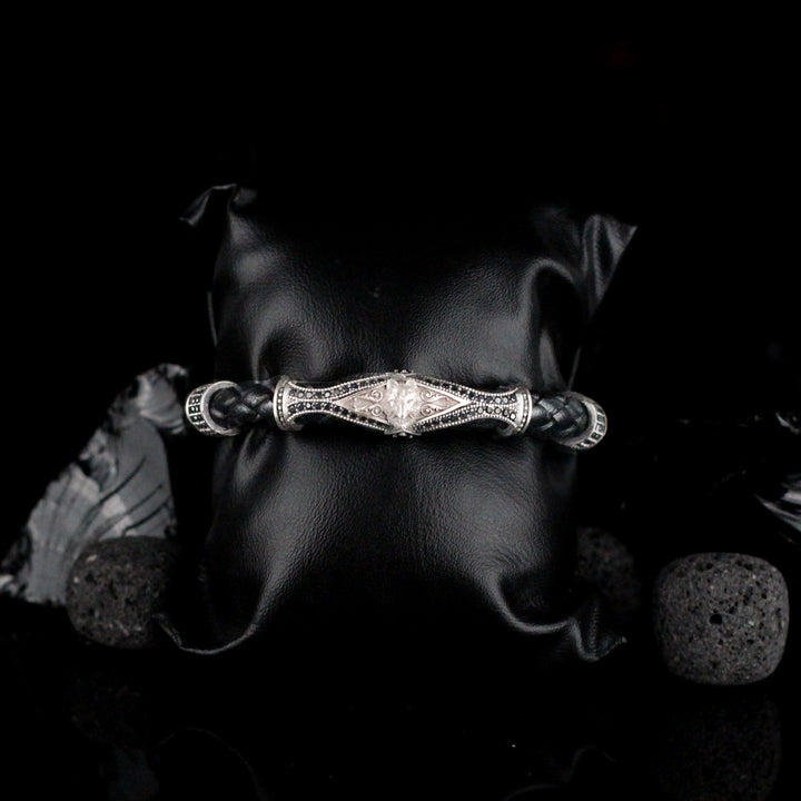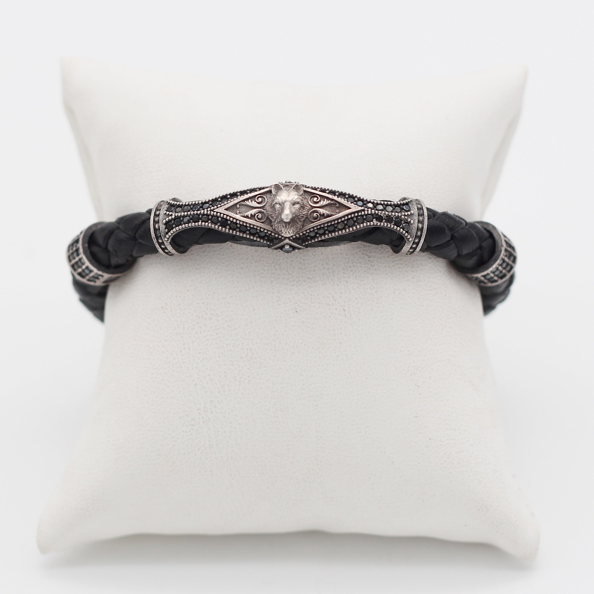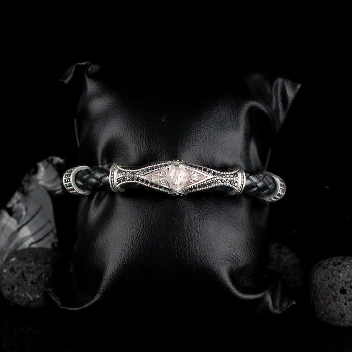Make a bold statement with this Sterling Silver and Leather Wolf Men's Bracelet, featuring a unique combination of braided leather and intricately crafted sterling silver elements adorned with zircon accents. This sophisticated piece is made from premium 925K sterling silver and durable leather, offering a rugged yet refined design for the modern man. Perfect for both casual and formal styles, this bracelet is the ultimate accessory for those who value bold and unique jewelry.