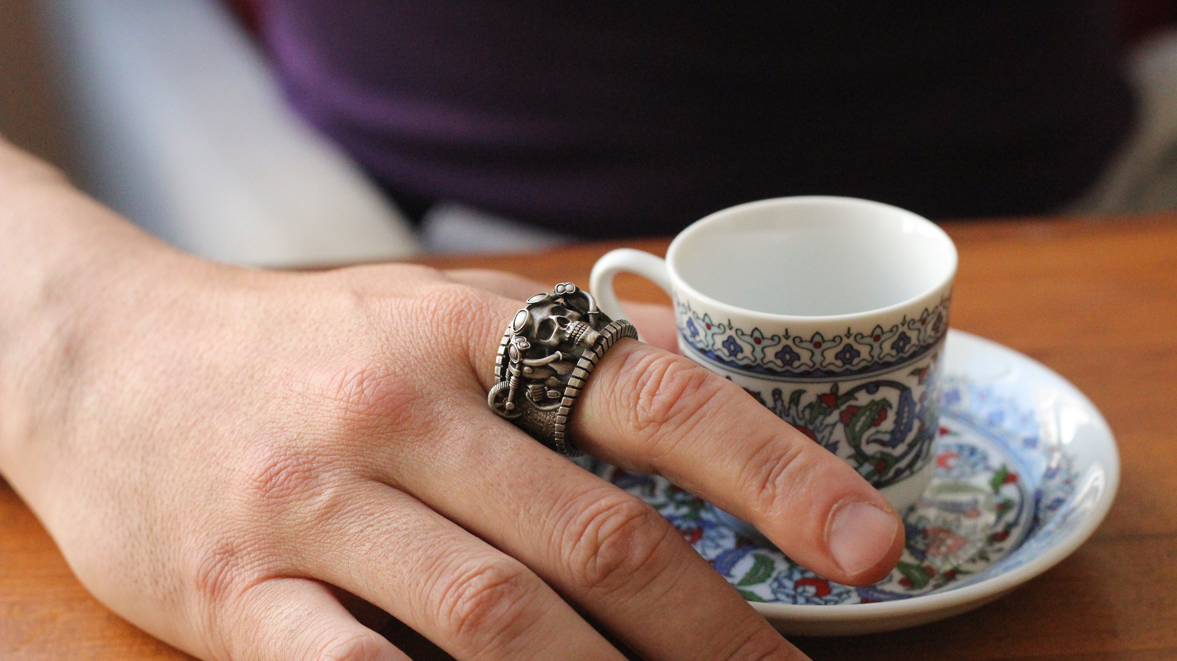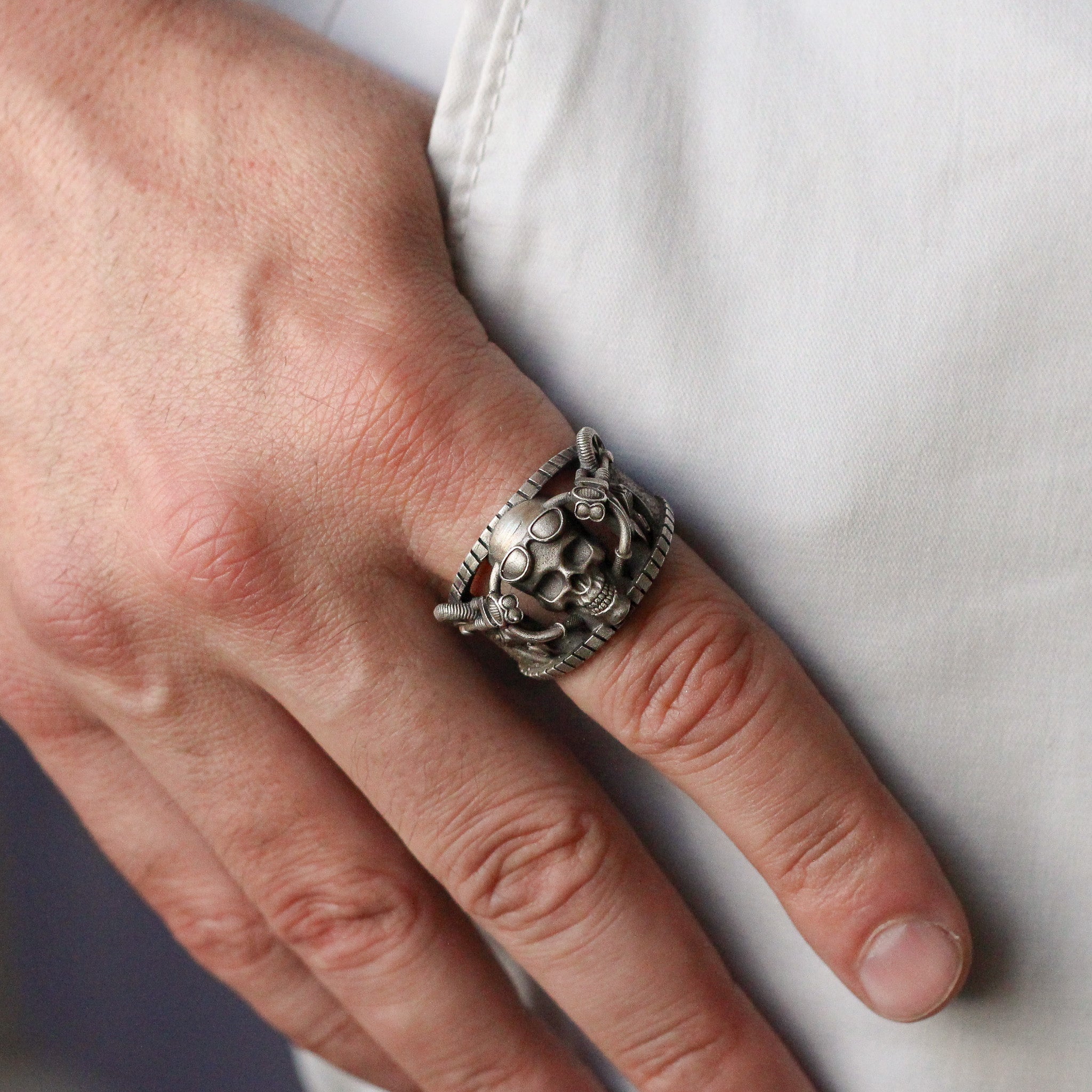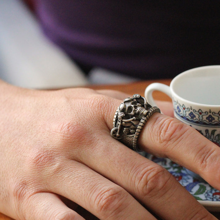 Silver Rebellious Biker-Style Skull Ring | Intricate Silver Jewelry for Men