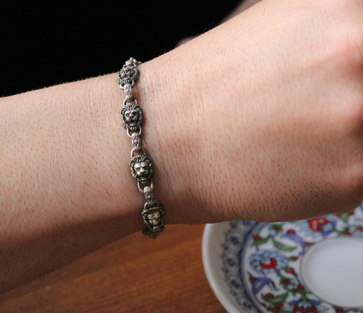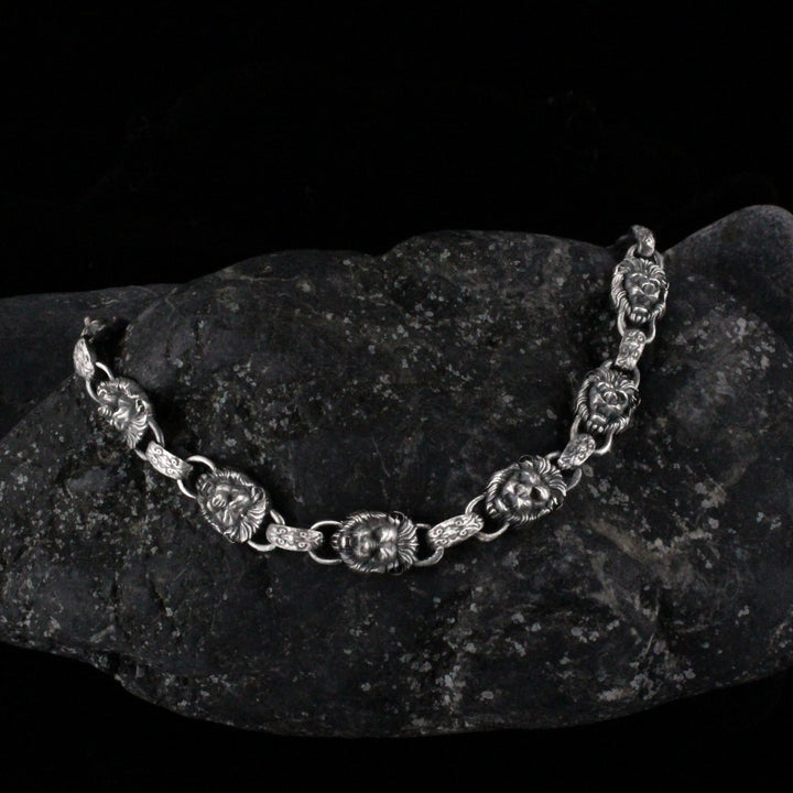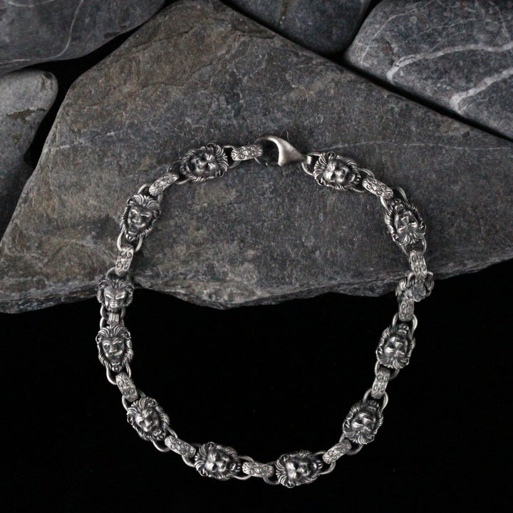 925K Sterling Silver Men's Chain Bracelet with Lion Head Motifs | Strength and Elegance Combined Jewelry