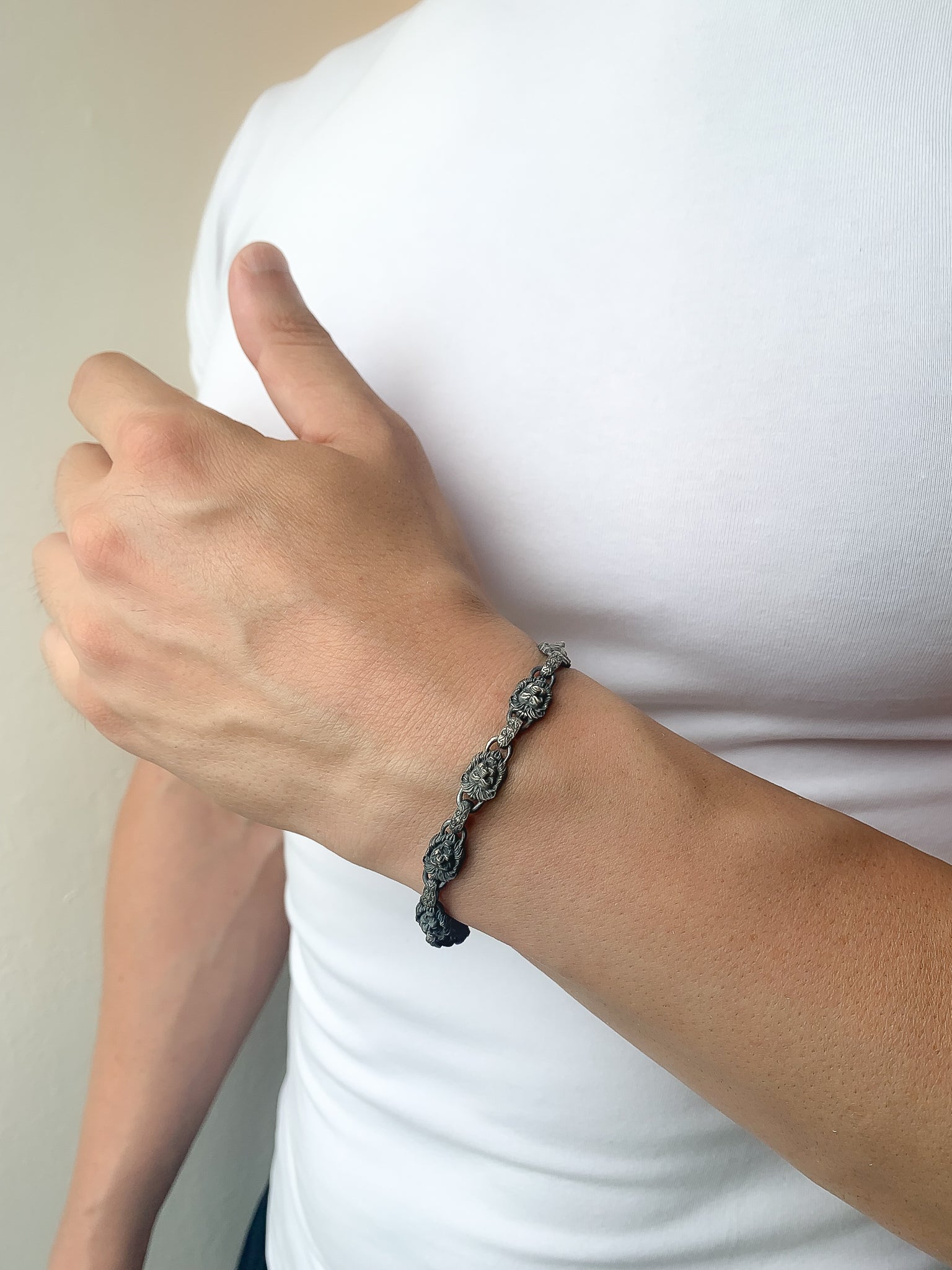 Exude power and elegance with this Sterling Silver Lion Head Bracelet, a striking accessory designed for the modern man. Crafted from 925K sterling silver, this bracelet features intricately detailed lion head motifs, symbolizing strength, courage, and leadership. Perfect for everyday wear or special occasions, this piece adds a bold and regal touch to any outfit.