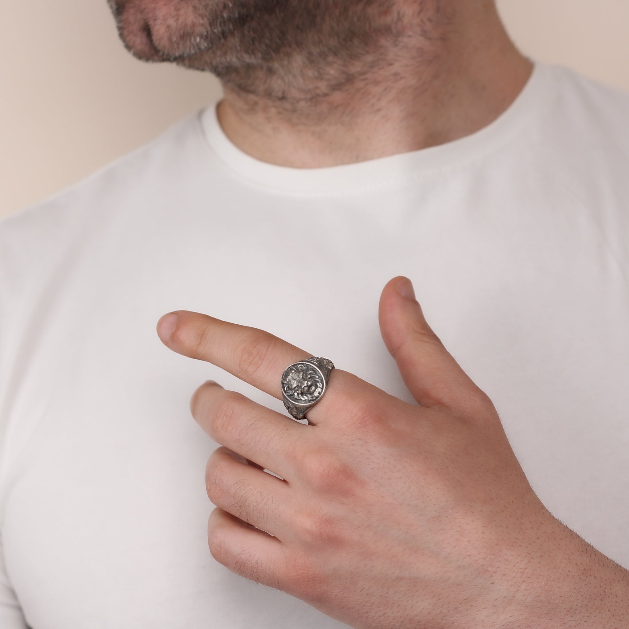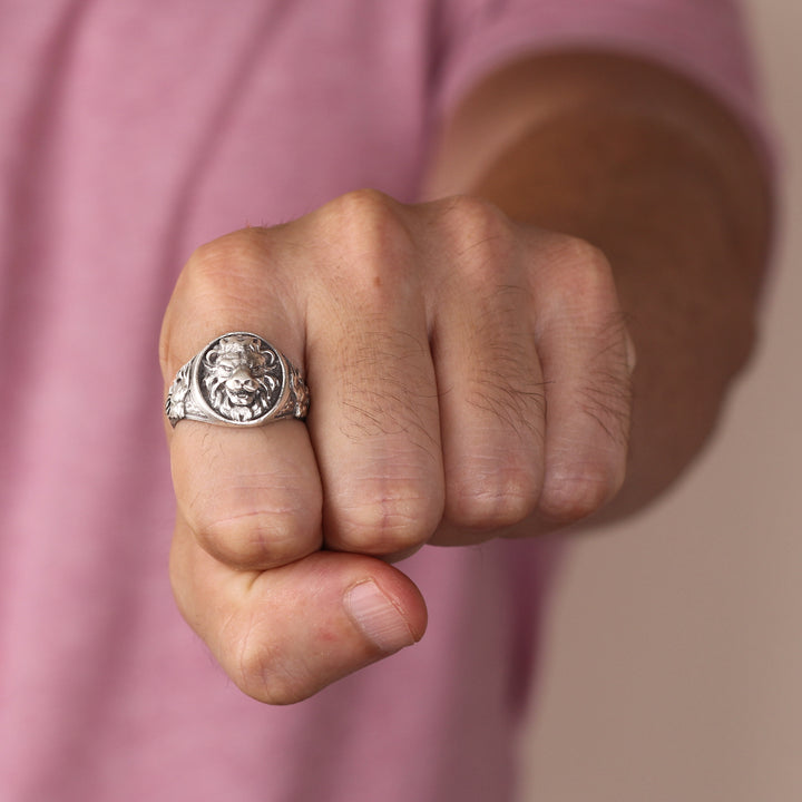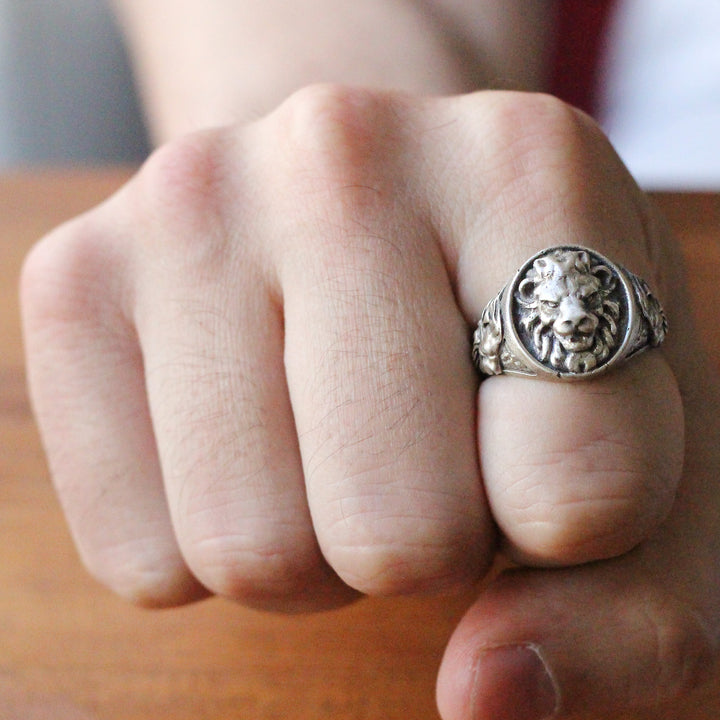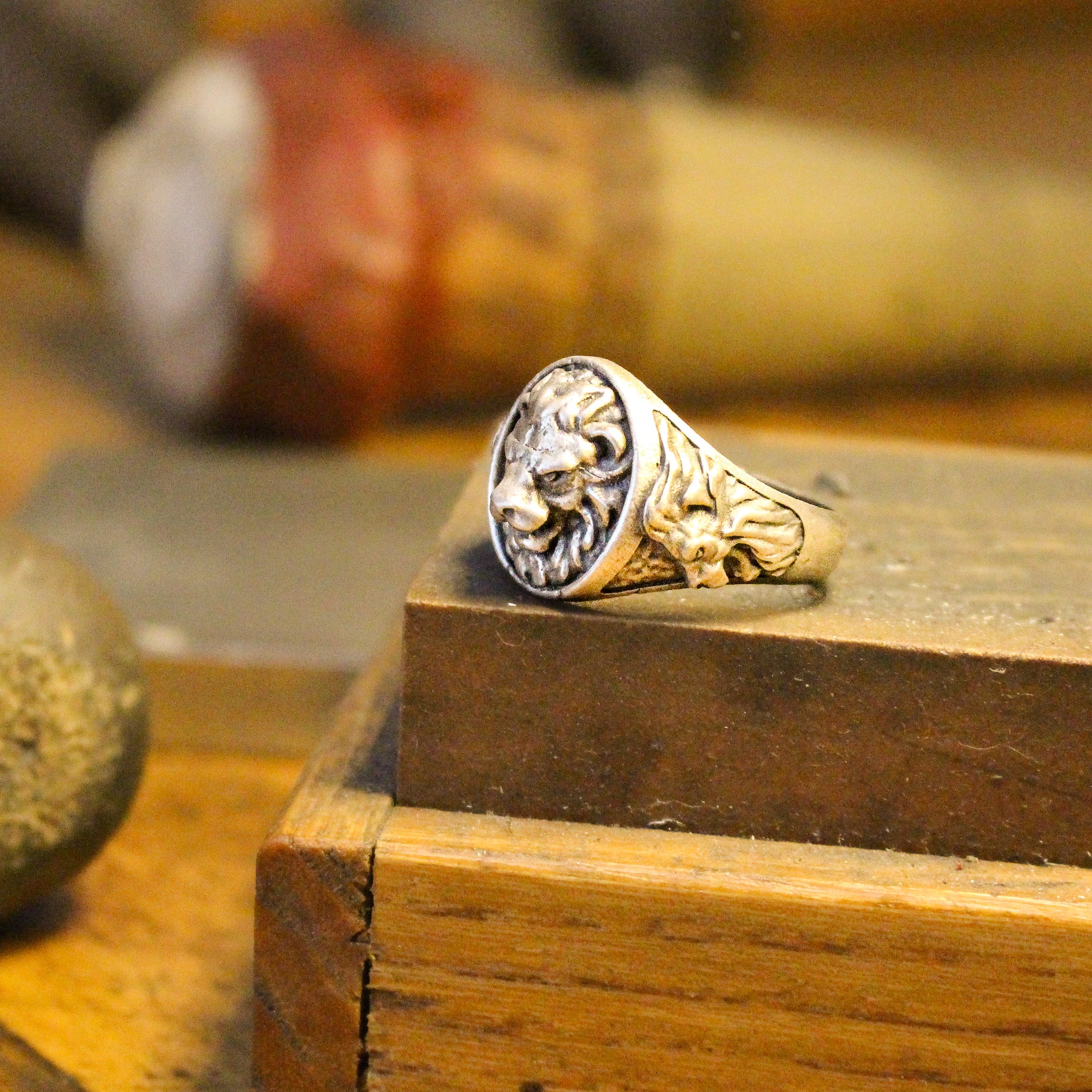 Sterling Silver Signet Lion Ring for Men | Powerful and Timeless Handmade Jewelry