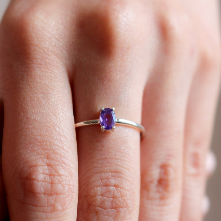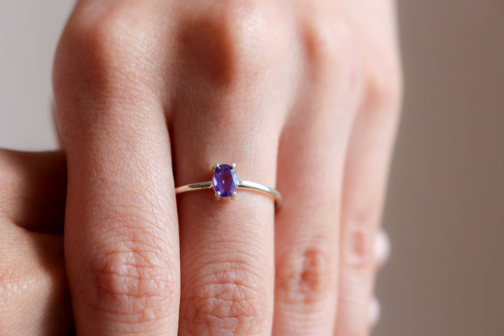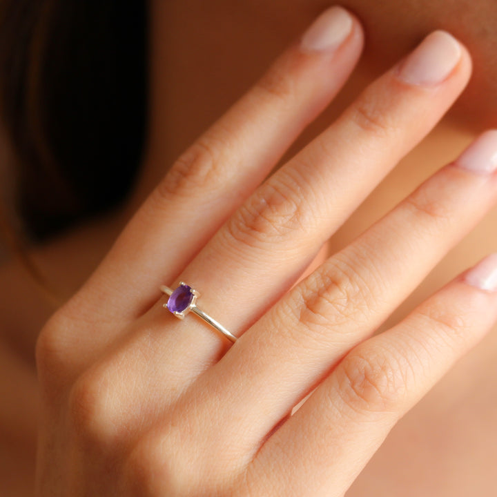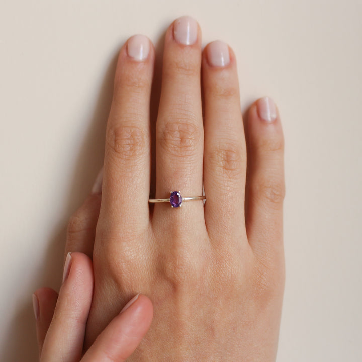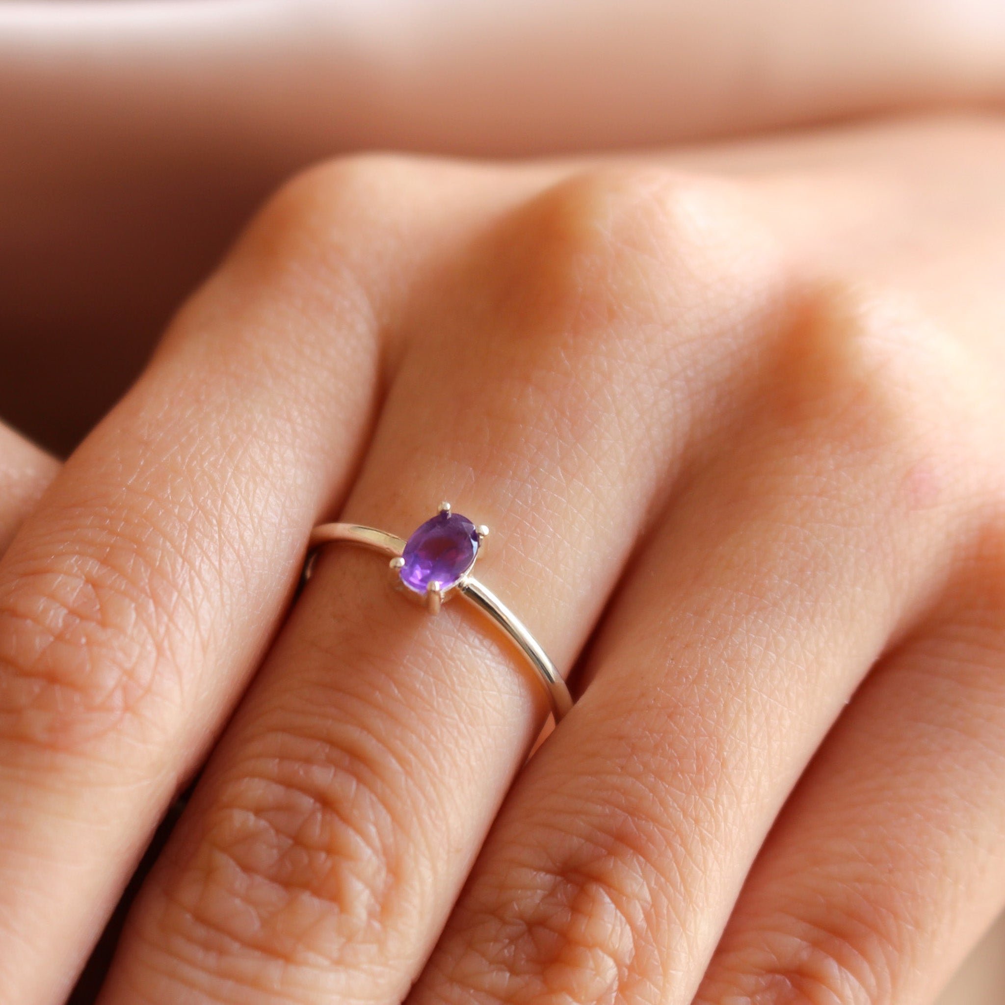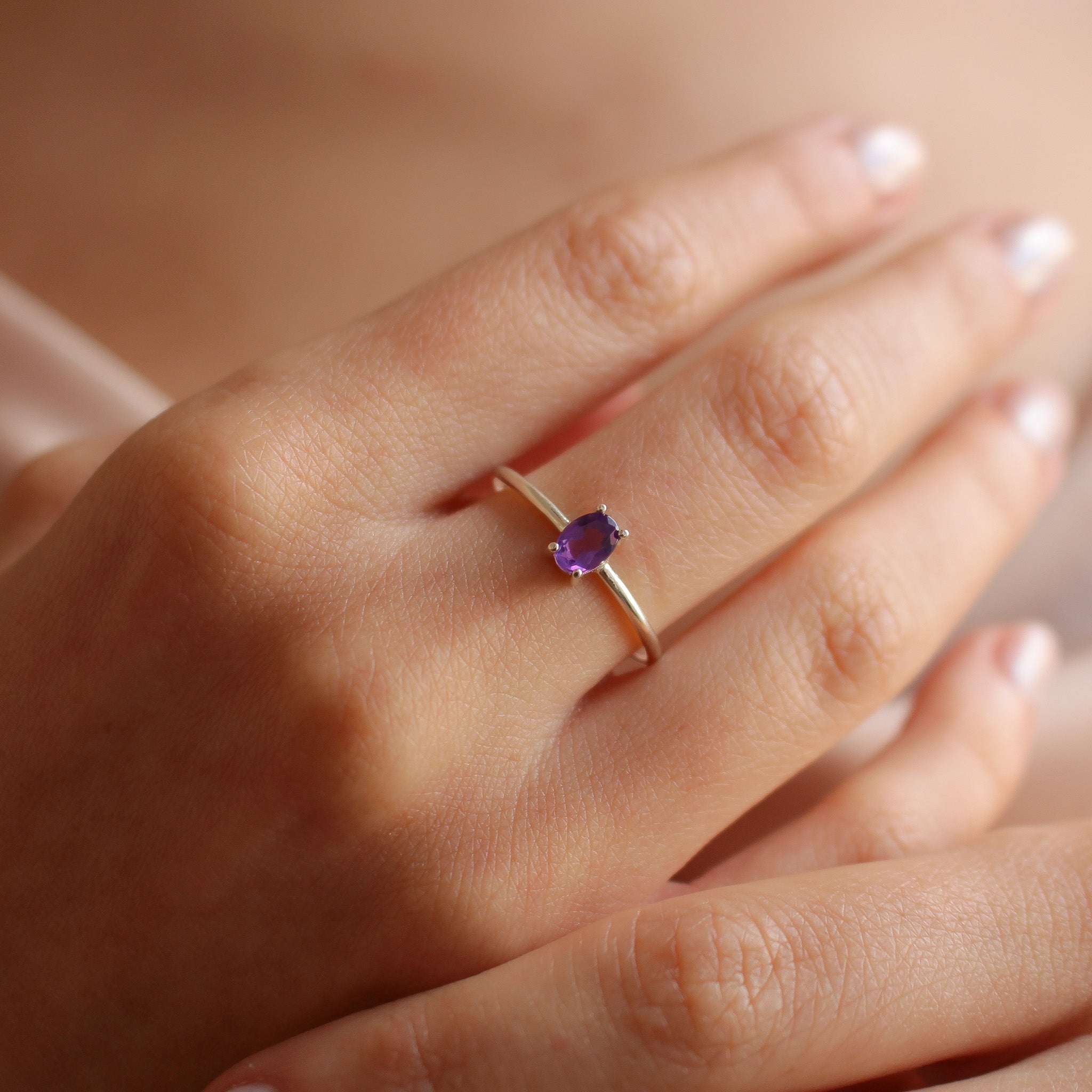 Discover the captivating charm of our minimalist amethyst ring, a timeless piece designed for lovers of understated elegance. Showcasing a brilliant oval-cut amethyst, this ring is crafted in your choice of 925 sterling silver, 8K, or 14K solid gold. The delicate band emphasizes the vibrant purple hue of the gemstone, making it a versatile accessory for both everyday wear and special occasions. Perfect as a thoughtful gift or a meaningful addition to your jewelry collection, this amethyst ring radiates sophistication and style.
