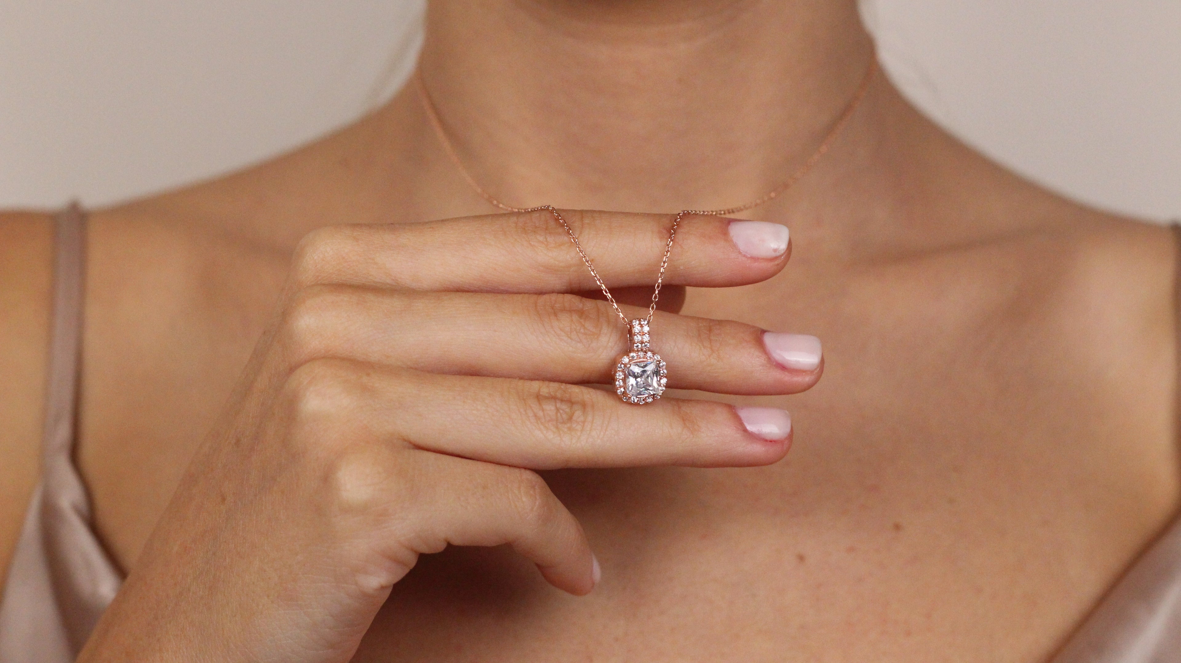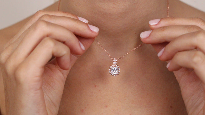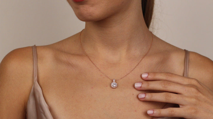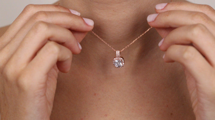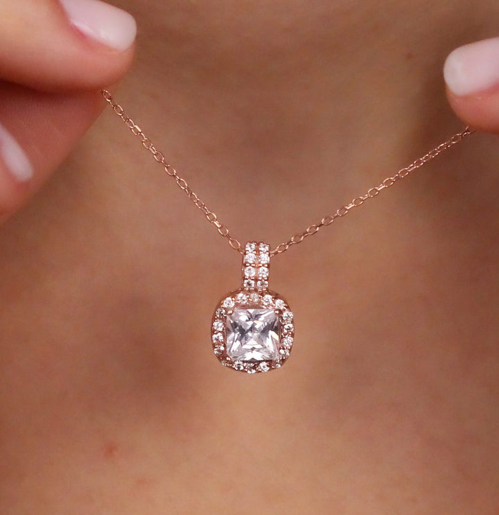 Natural London CZ Diamond Rose Pendant | Cushion Cut Halo CZ Diamond Rose Necklace | Delicate Wedding Pendant