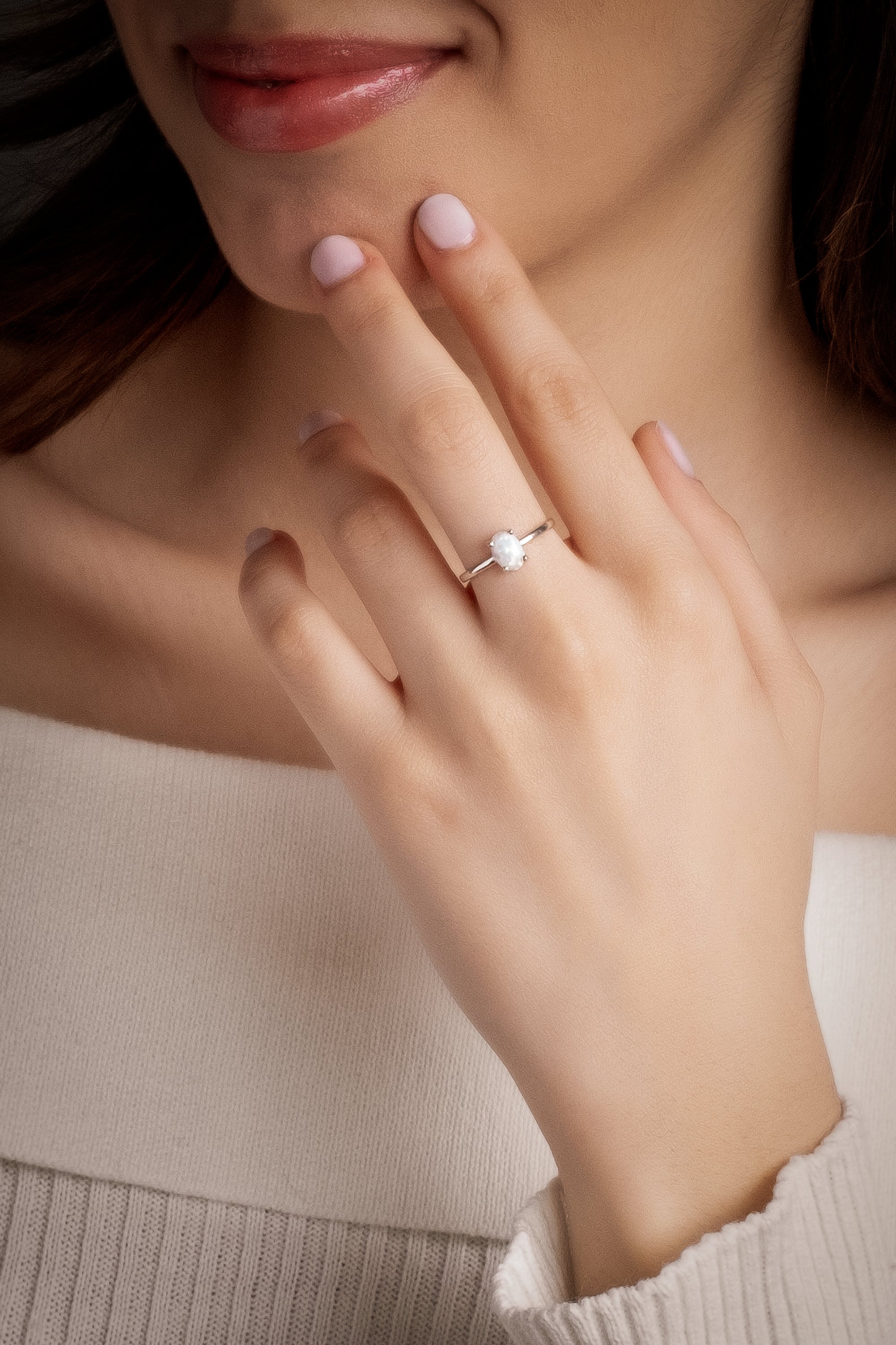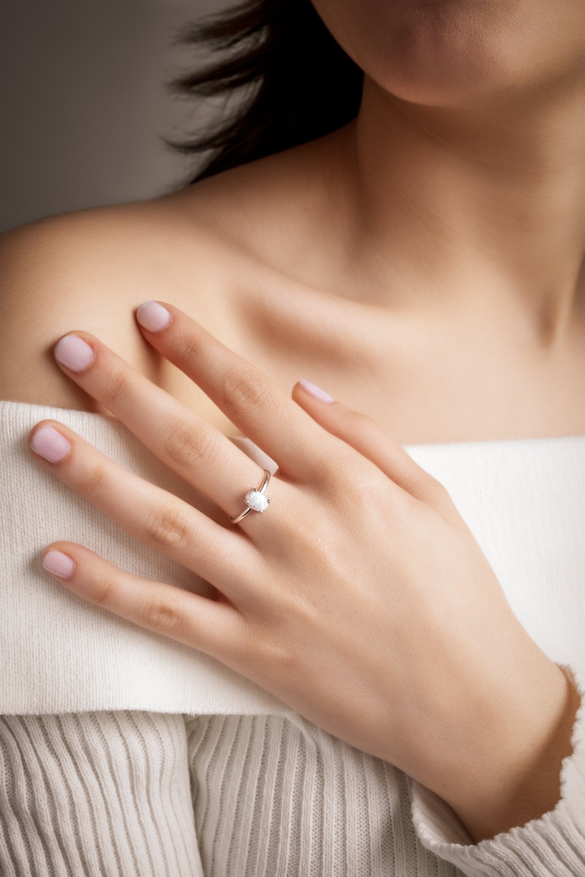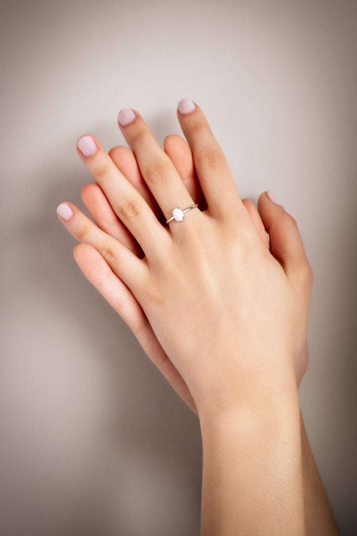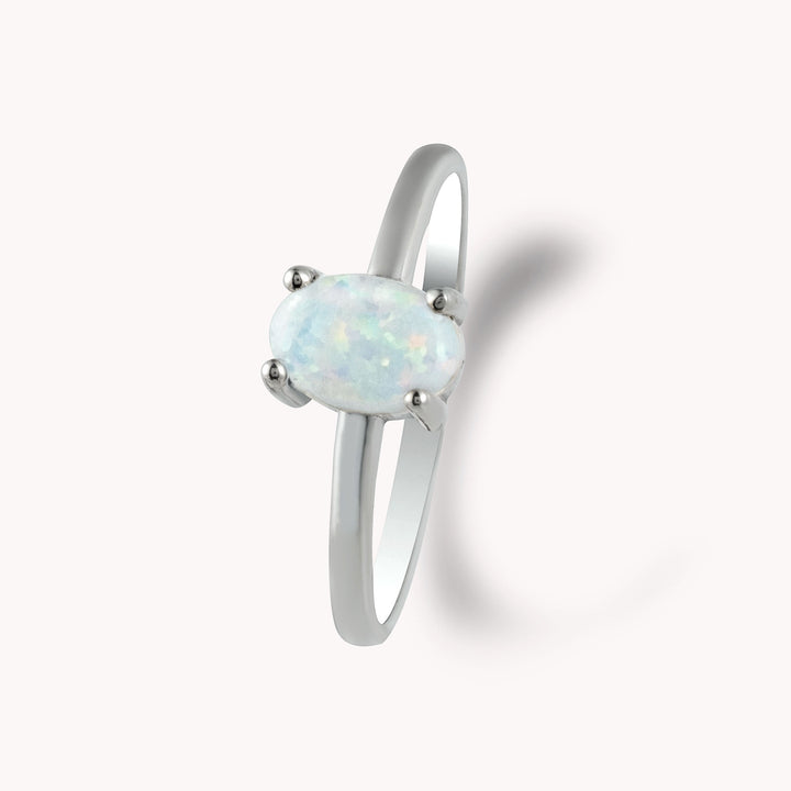 LUNA Elegant Opal Solitaire Ring - Sterling Silver, 8K or 14K Gold | Timeless Luxury Promise Ring with Opal Gemstone