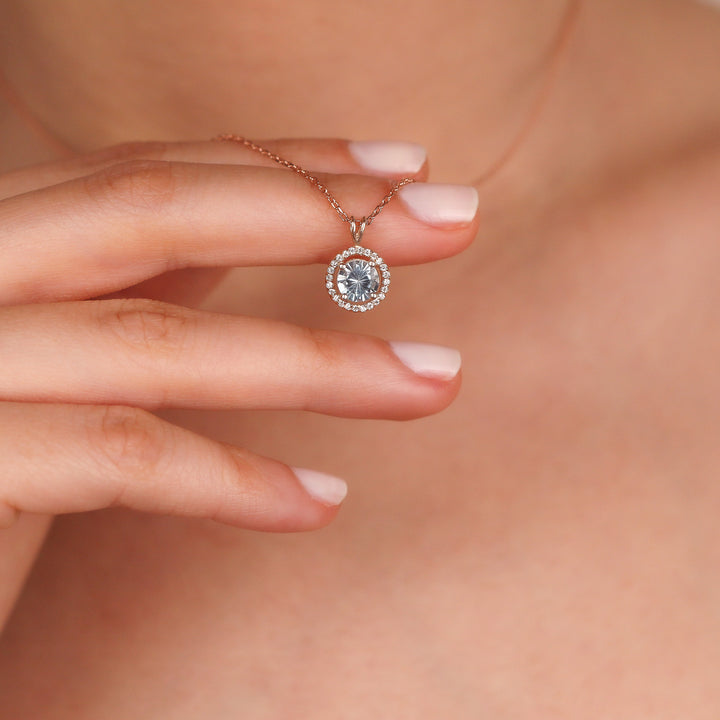 ISLA Radiant Natural Sky Topaz Necklace | Gold & Silver Pendant with Halo Design