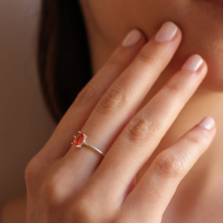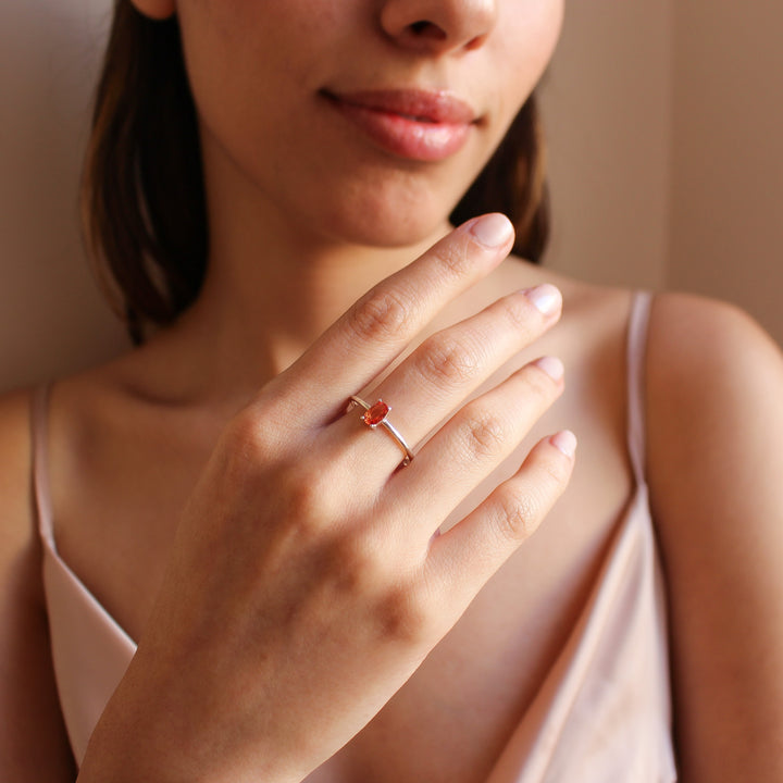 JAYLA Elegant Oval-Cut Orange Sapphire Ring | Sterling Silver, 8K or 14K Gold Sapphire Proposal Ring