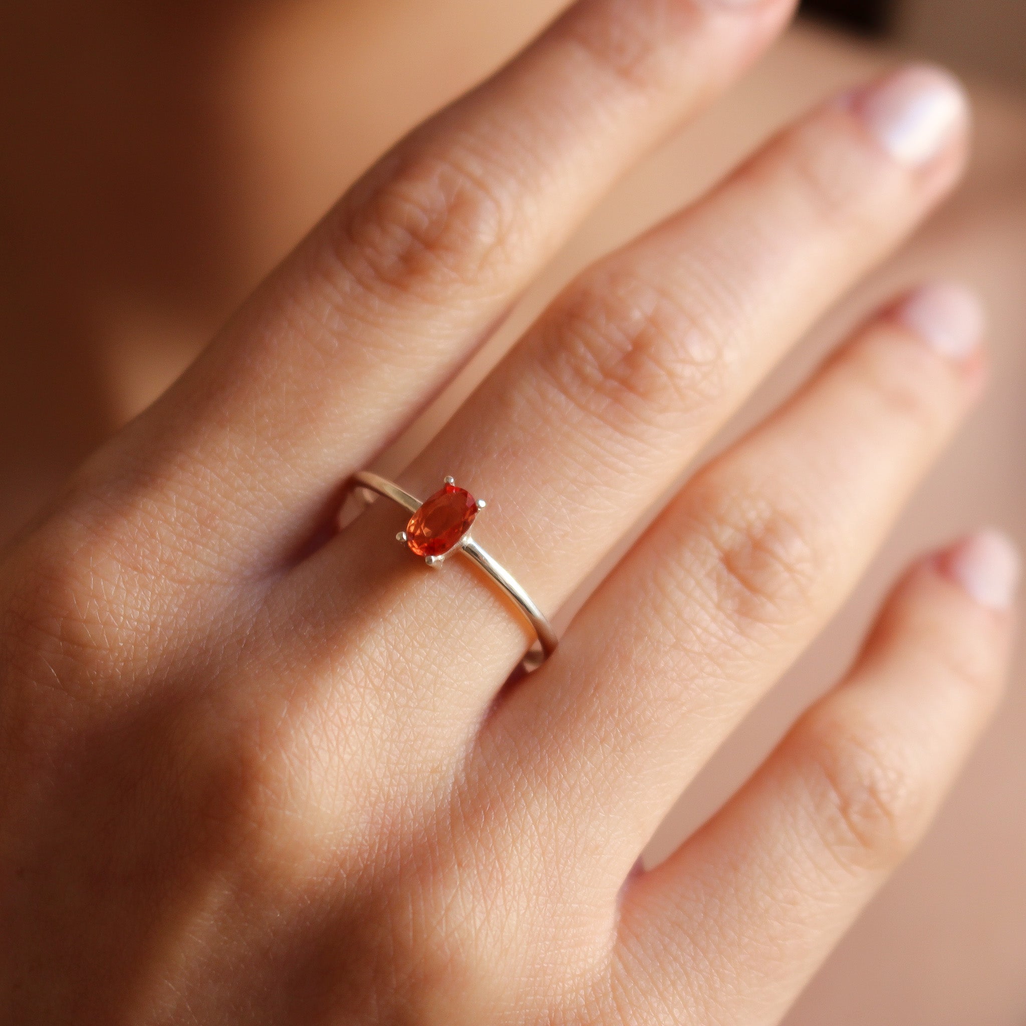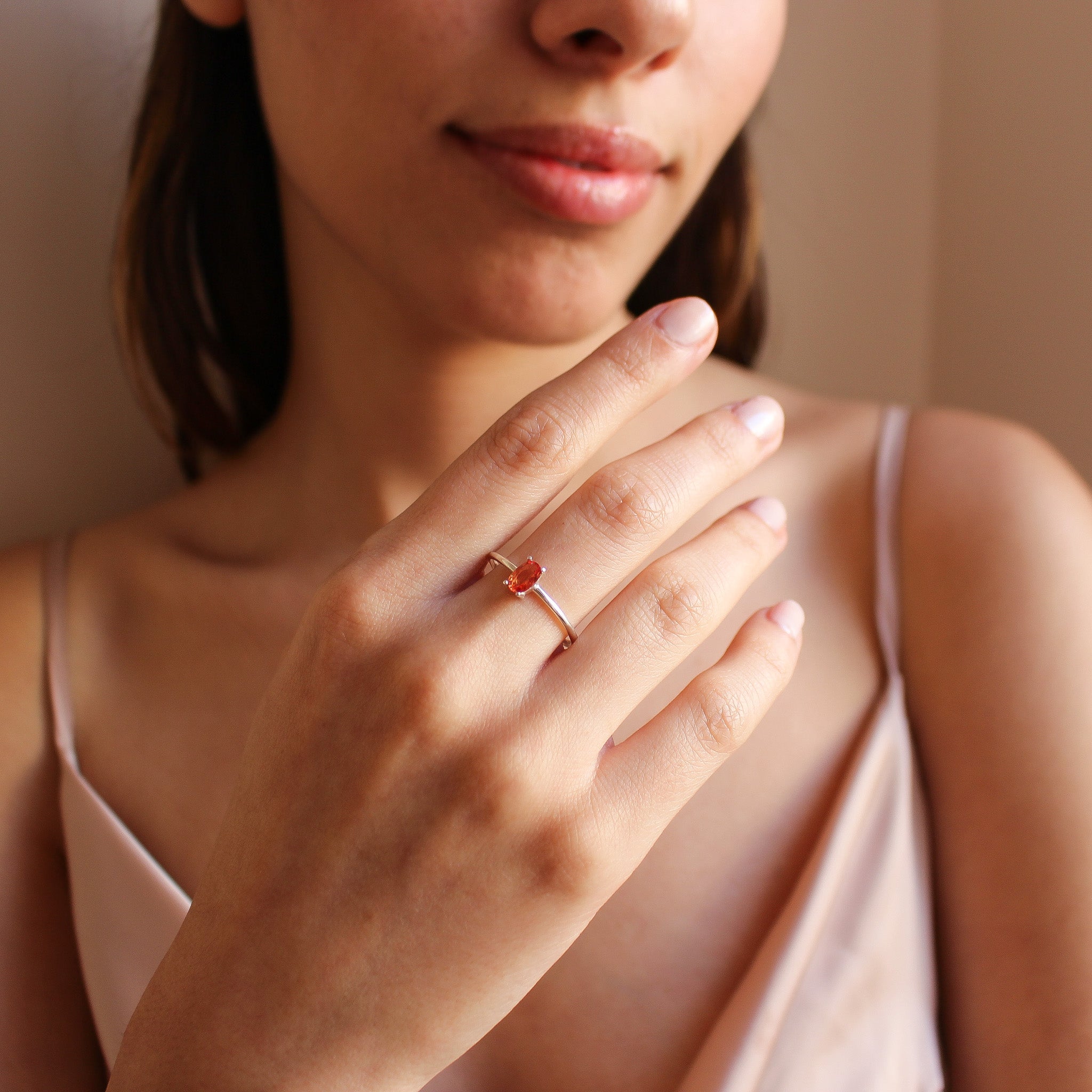 Add a touch of elegance and vibrant color to your jewelry collection with this exquisite orange sapphire ring. Featuring a stunning oval-cut orange sapphire, this ring is crafted in your choice of premium 925 sterling silver, 8K, or 14K solid gold. Perfect for those who value timeless sophistication and a pop of color, this dainty piece makes a meaningful gift or a cherished addition to your own jewelry box. Its minimalist design ensures versatility, making it suitable for both everyday wear and special occasions.