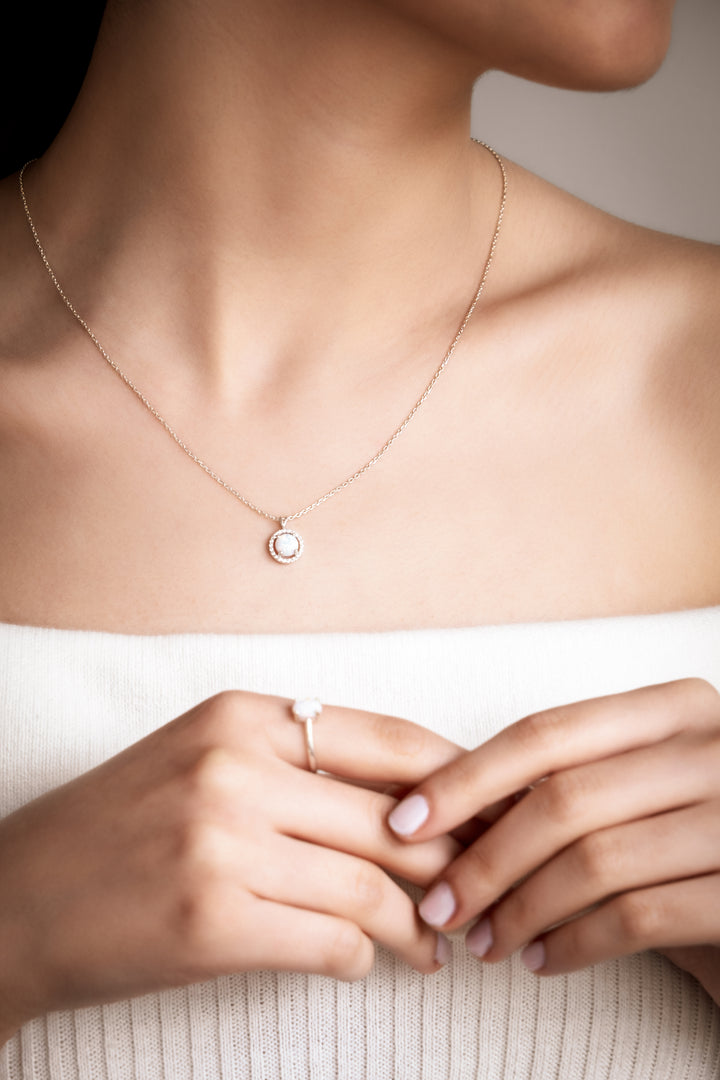 SNOWIE Genuine White Opal Necklace | Elegant Gold & Silver Birthstone Pendant Necklace