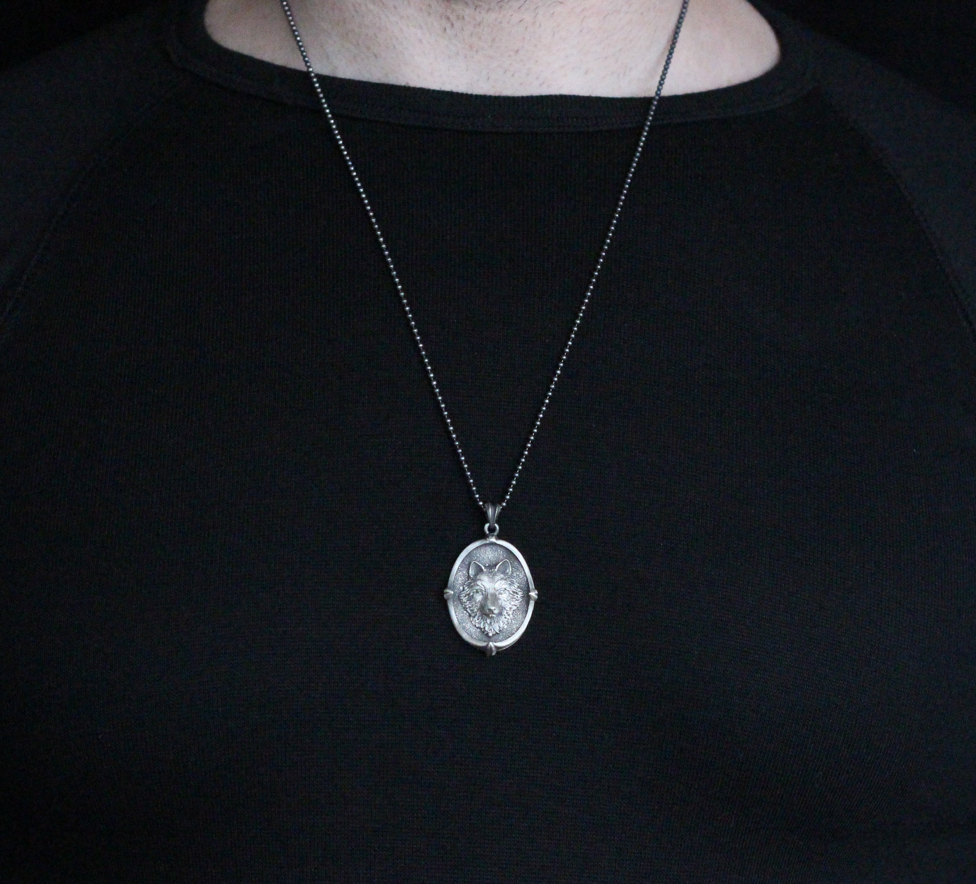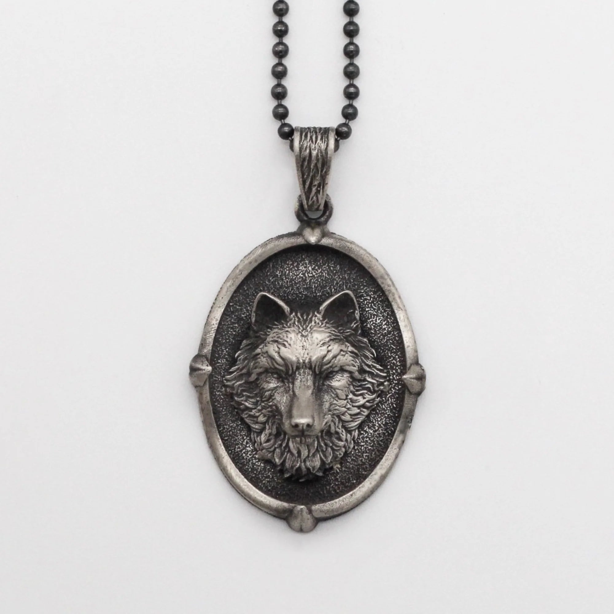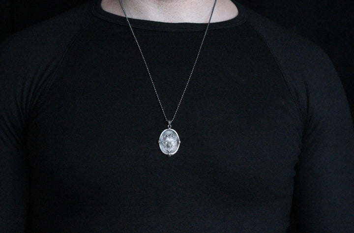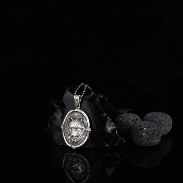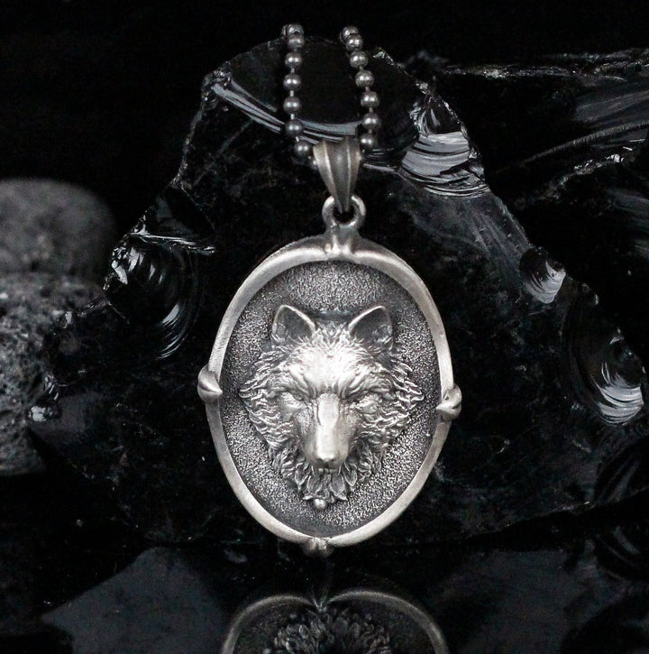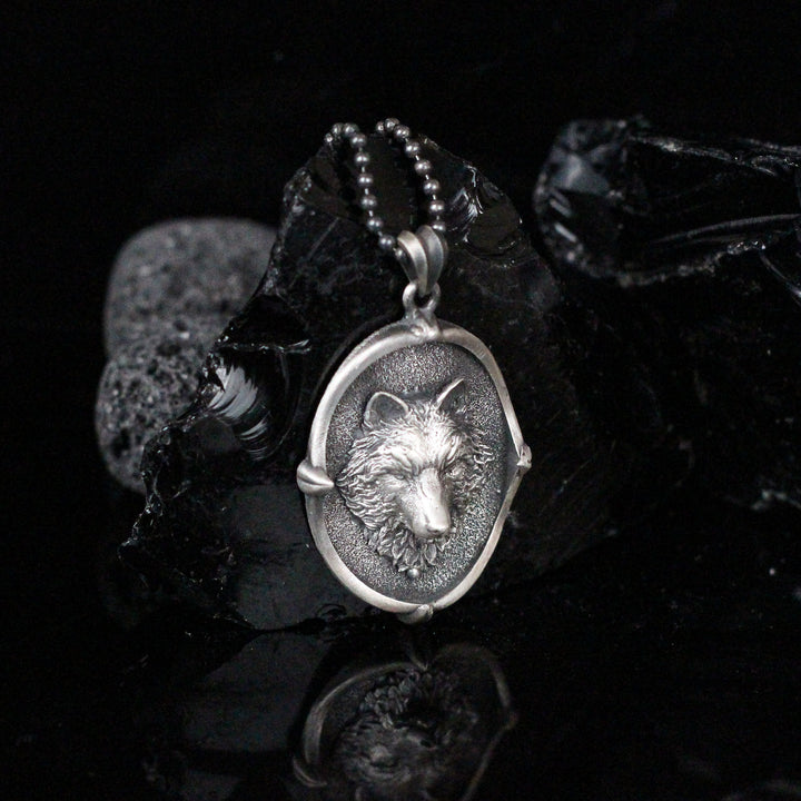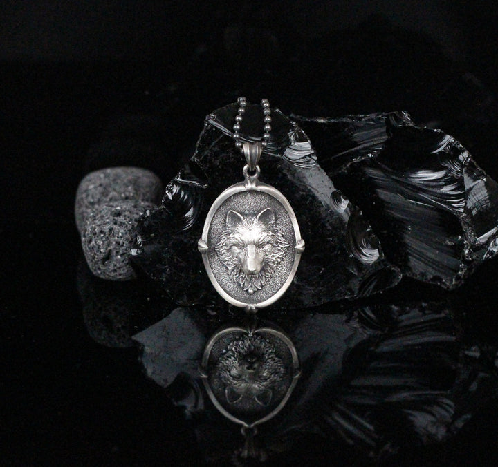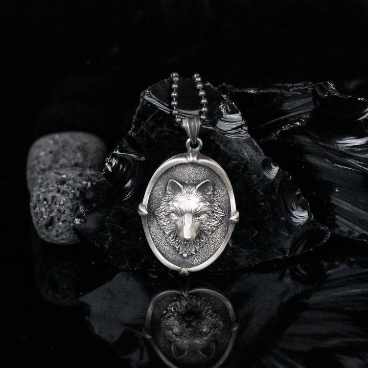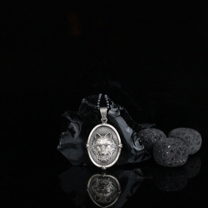 Wolf Head Oval Pendant Necklace in 925 Sterling Silver | Unique Nature-Inspired Wolf Medallion Necklace