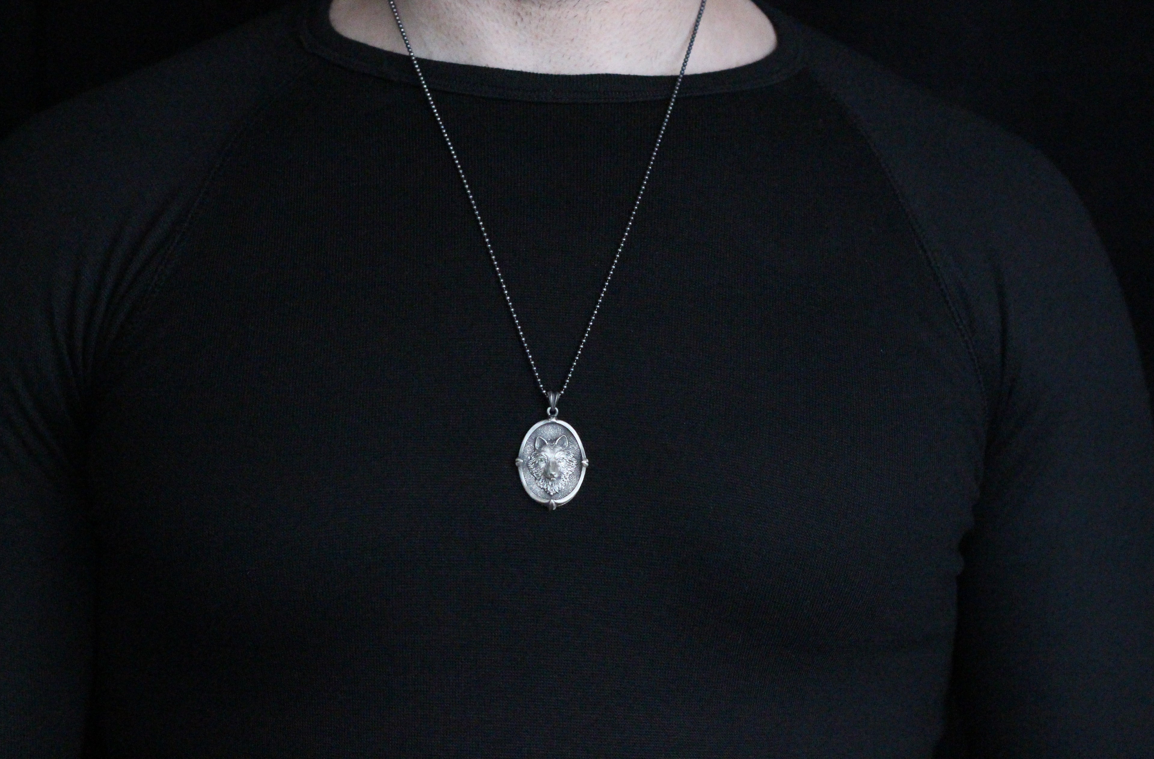 Celebrate the beauty and majesty of the wild with this Oval Wolf Pendant Necklace, meticulously crafted from 925 sterling silver. The intricate detailing of the wolf's head, framed by a textured oval border, symbolizes strength, loyalty, and the untamed spirit of nature. This versatile necklace is a timeless statement piece, perfect for both men and women who admire wildlife and bold designs.