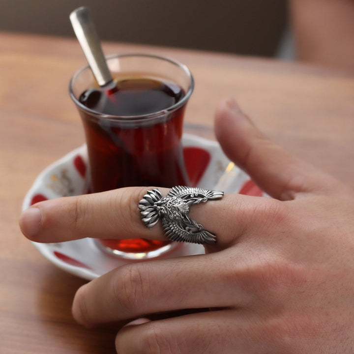 This ring is stylish and pretty ideal for everyday use. The engraving details of the 925k handmade silver ring are very detailed and eye-catching. The ring is coated with oxide to emphasize the details of handmade engraving.