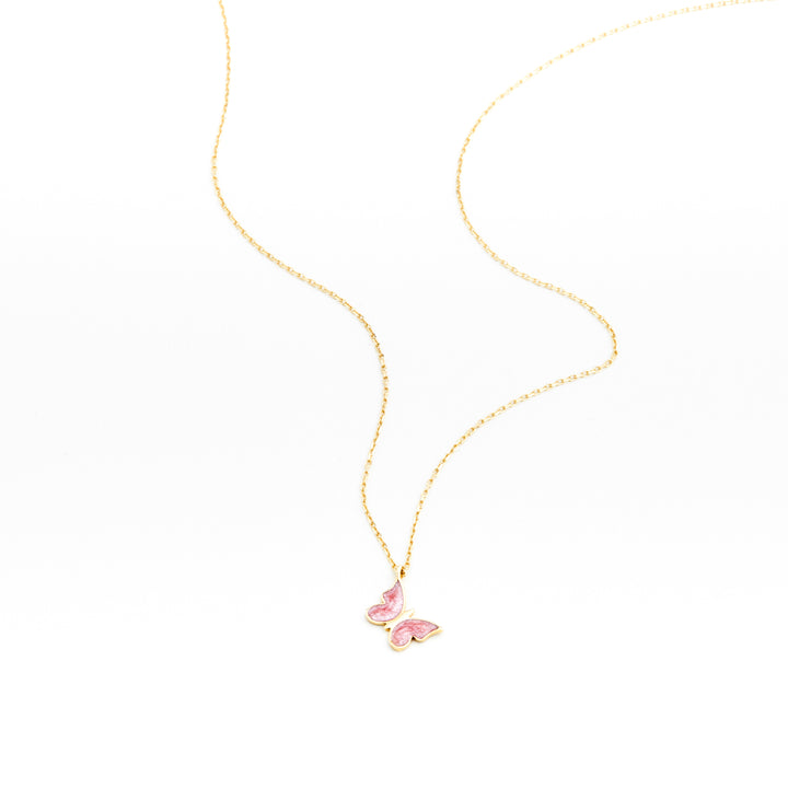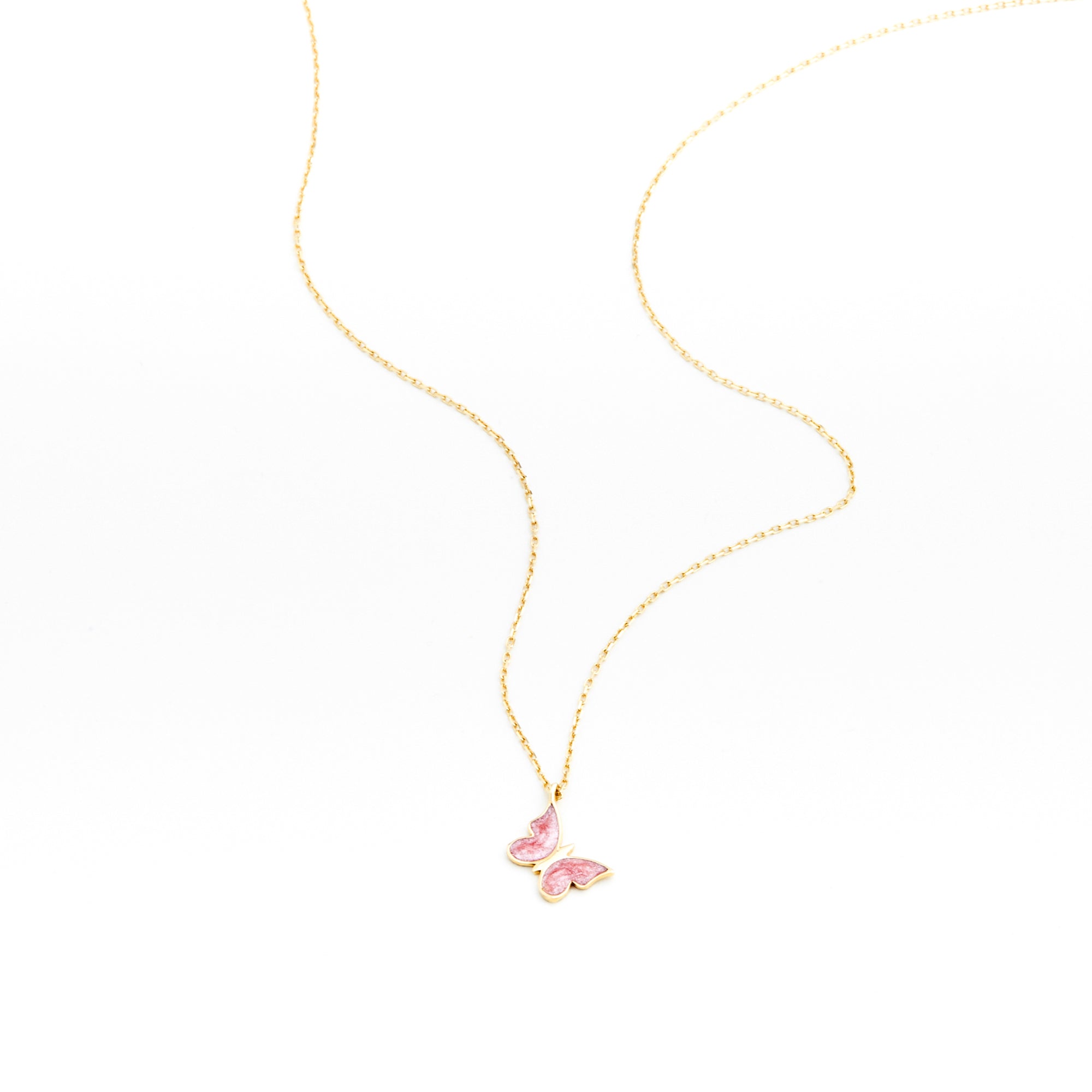 Bring a pop of color and charm to your jewelry collection with this Pink Butterfly Necklace, featuring a beautifully crafted butterfly design coated in smooth pink enamel with elegant gold detailing. Available in 925K sterling silver, 8K solid gold, or 14K solid gold, this pendant is the perfect blend of playfulness and sophistication. Whether as a thoughtful gift for someone special or a whimsical addition to your own collection, this necklace adds a unique and stylish touch to any outfit