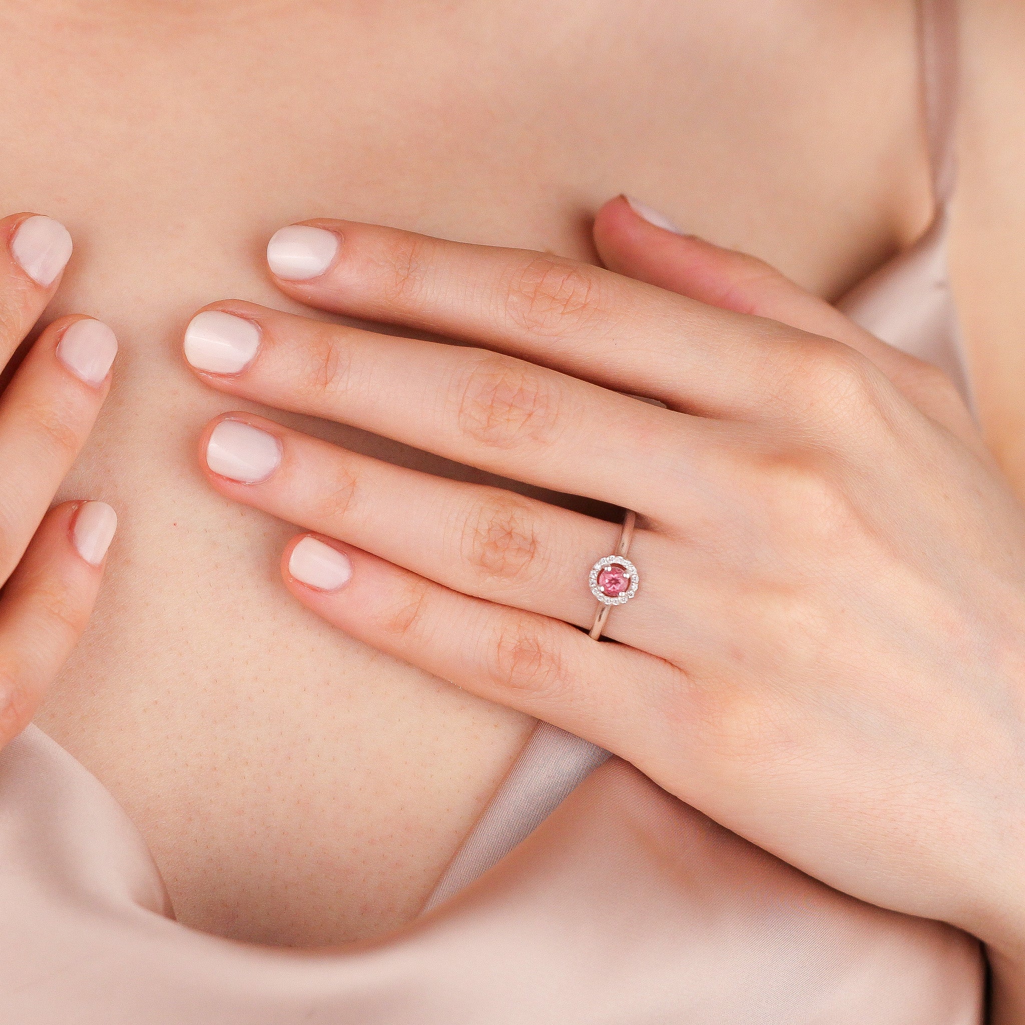 - Gemstone: Diamond, Cubic Zirconia (CZ), Pink Topaz