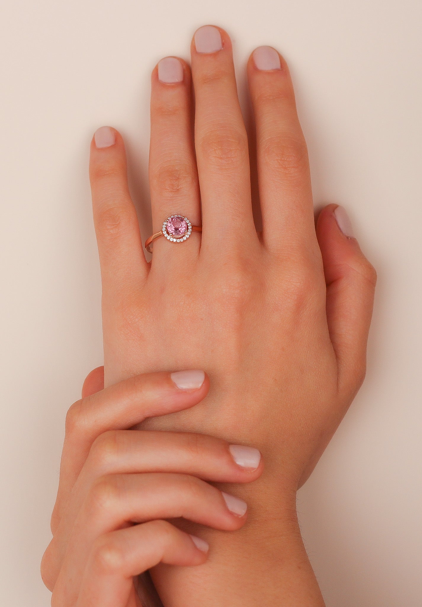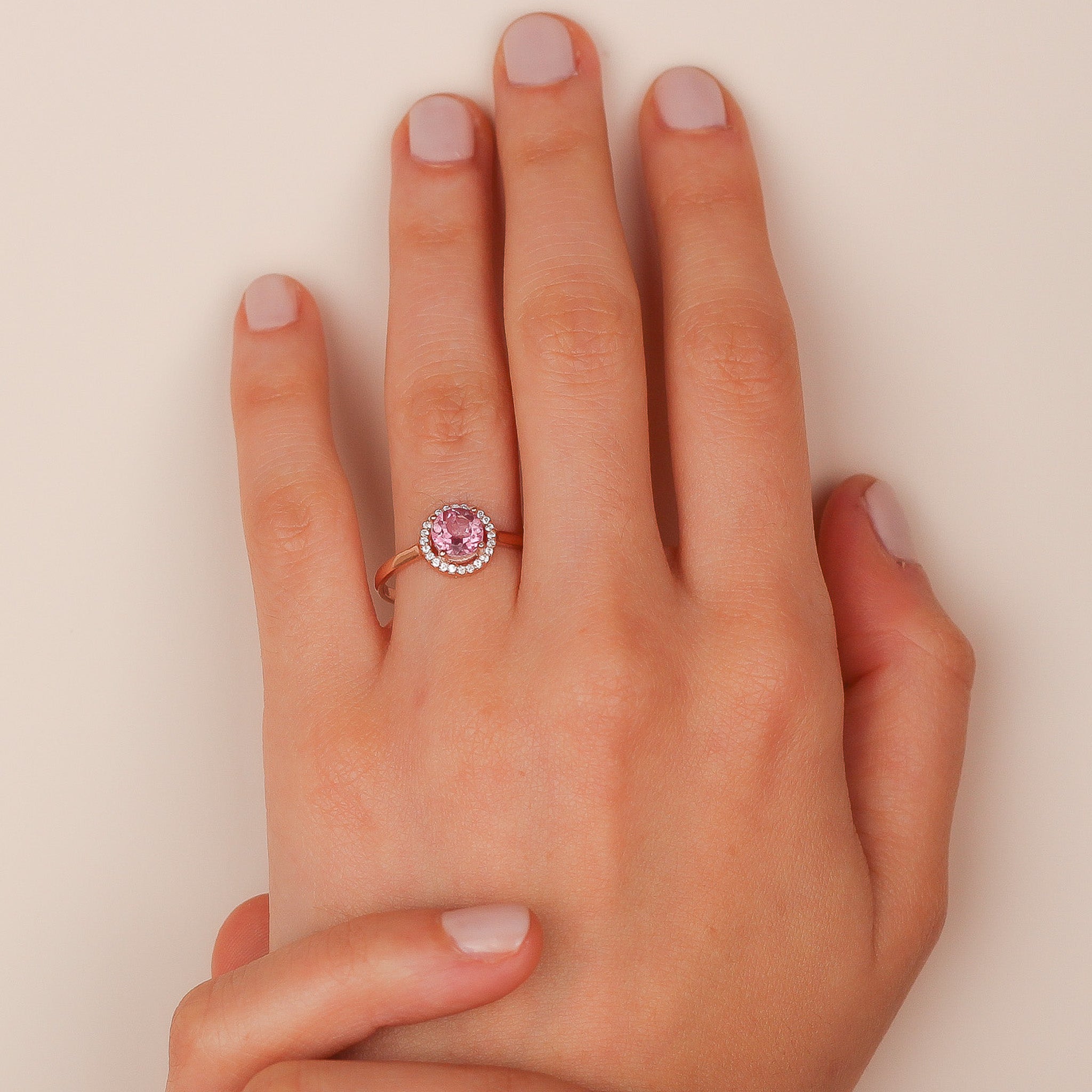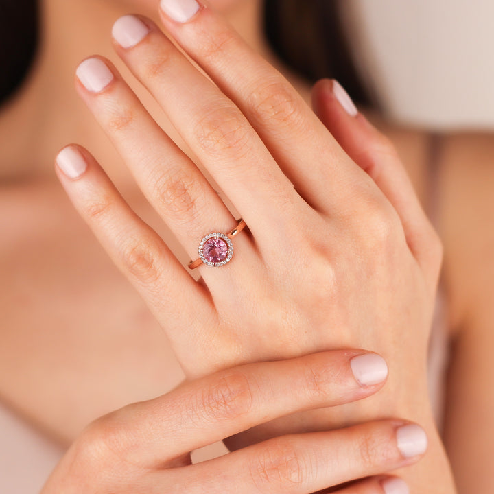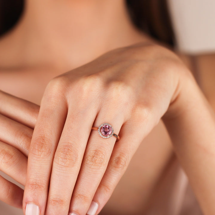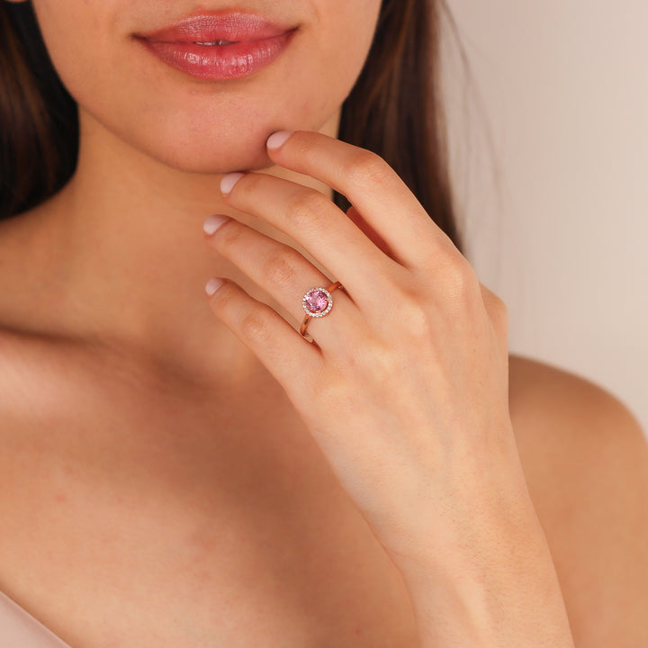 LORIN Pink Topaz and Zircon Halo Ring in 925K Sterling Silver | Elegant Gift for Women