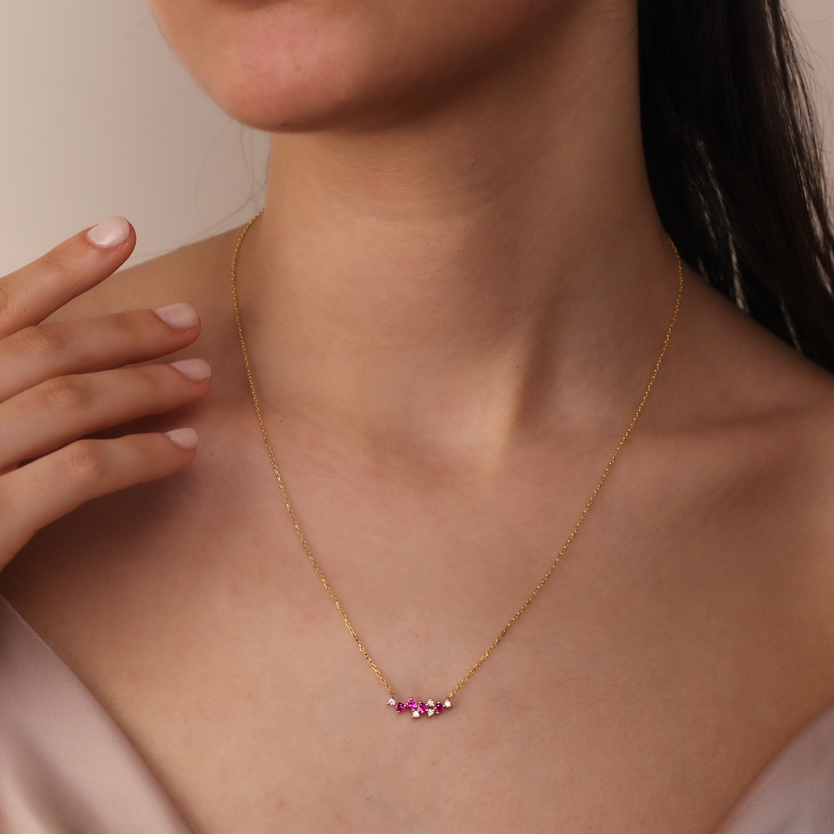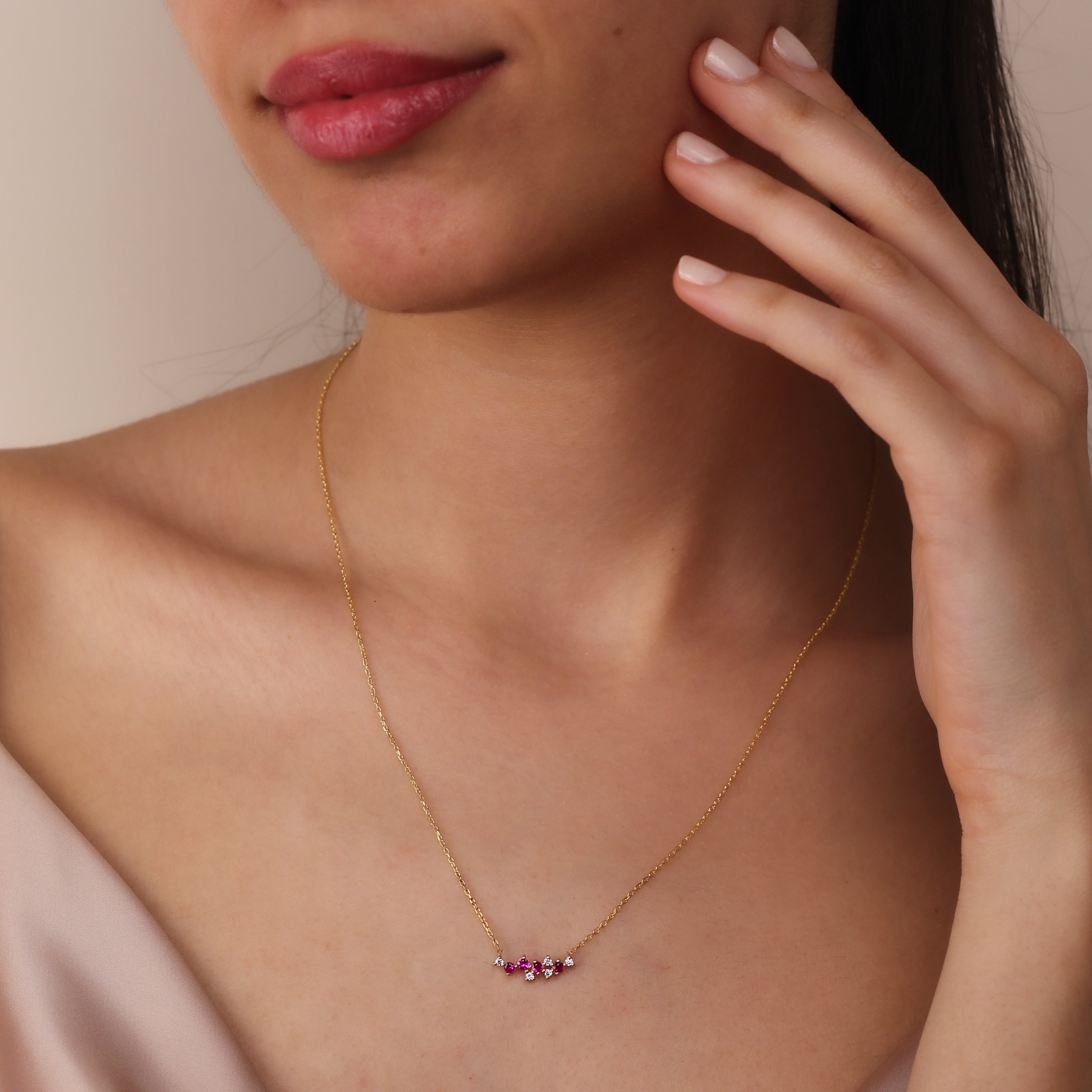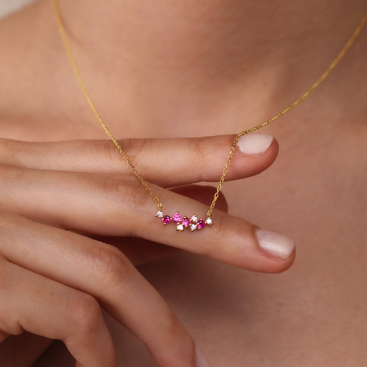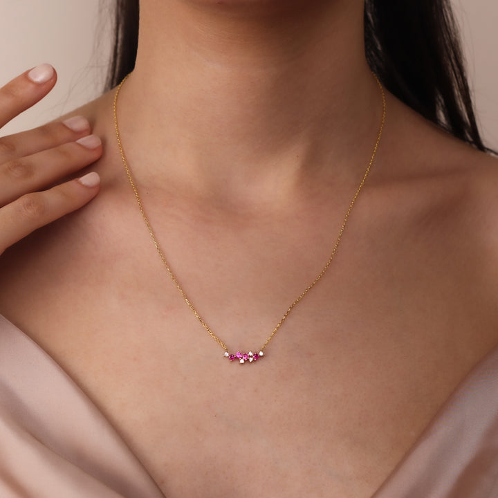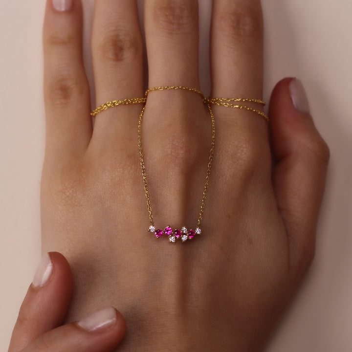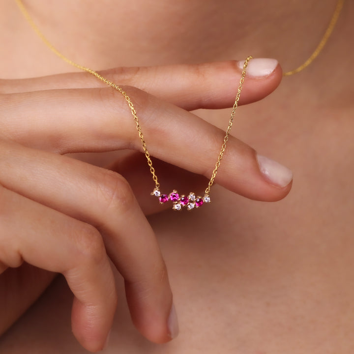 LIANA Elegant Ruby Cluster Necklace | 8K & 14K Gold Necklace with Zircon Details