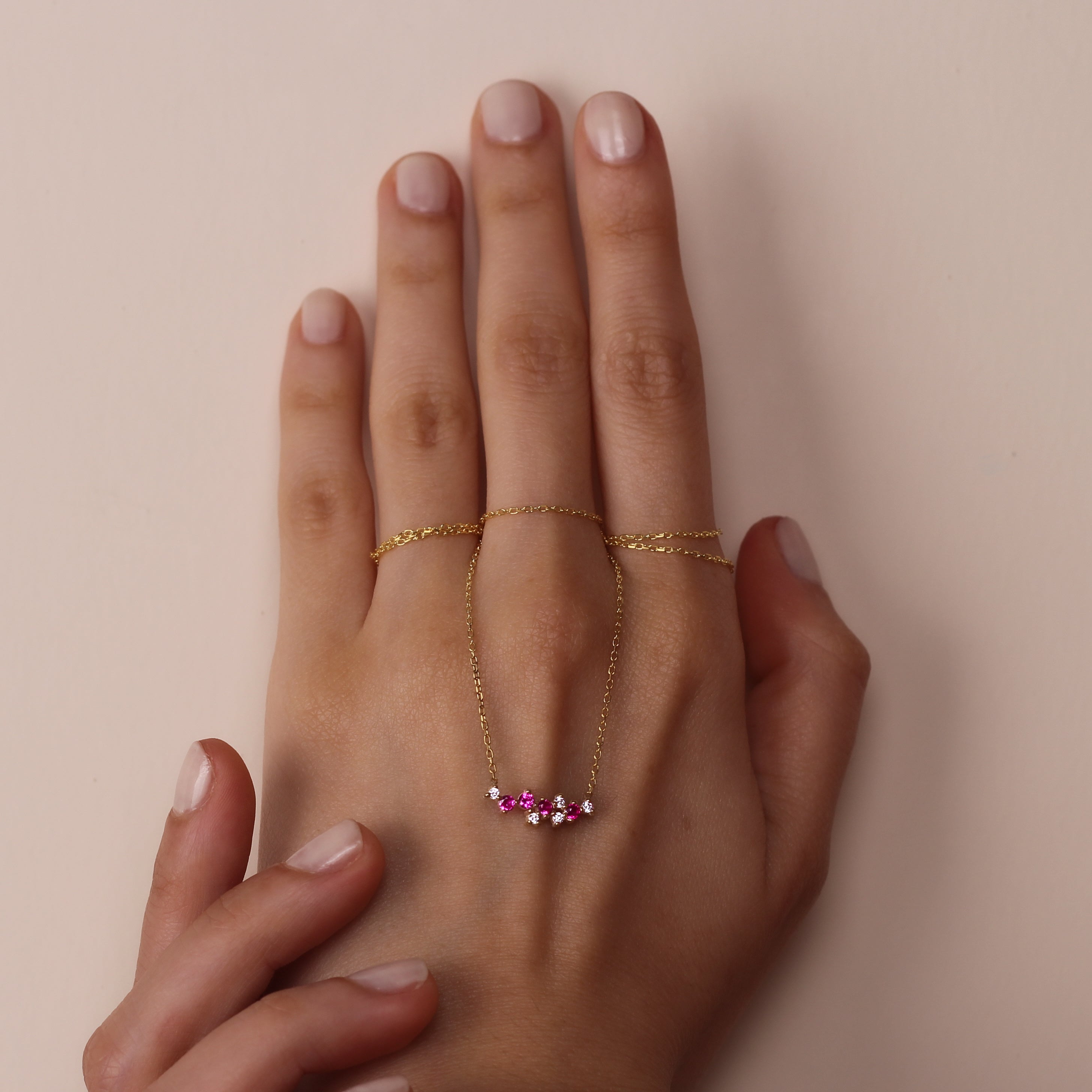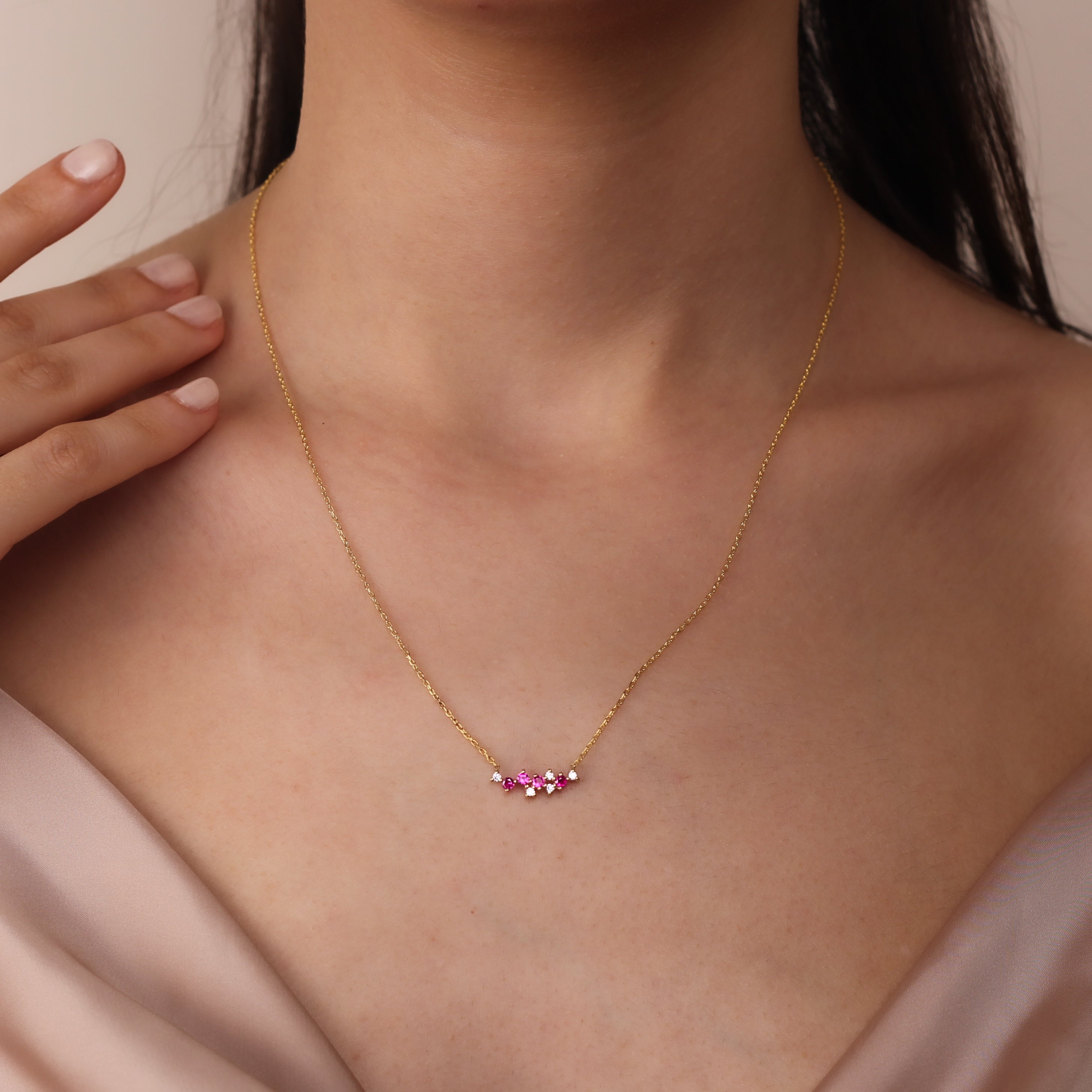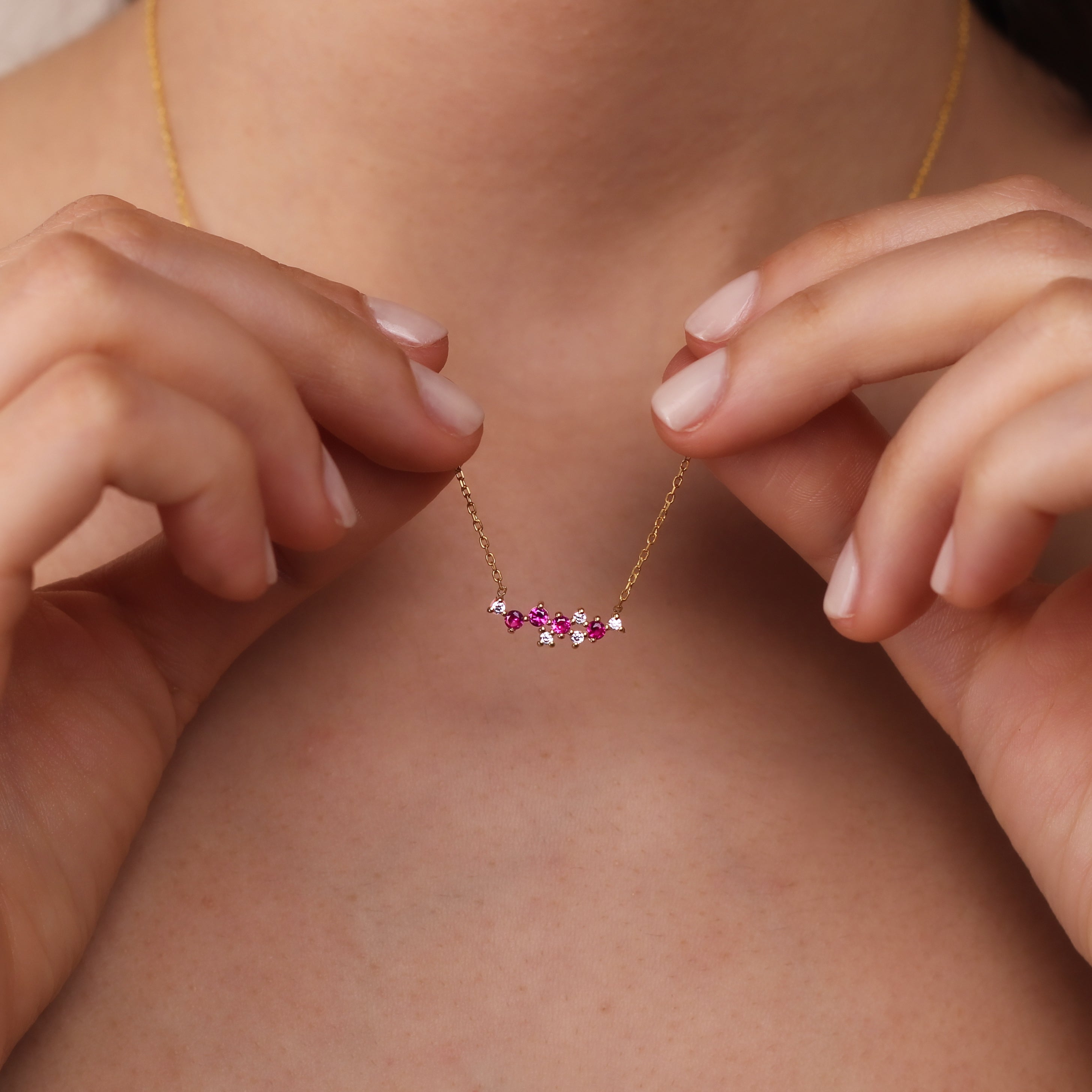 LIANA Elegant Ruby Cluster Necklace | 8K & 14K Gold Necklace with Zircon Details