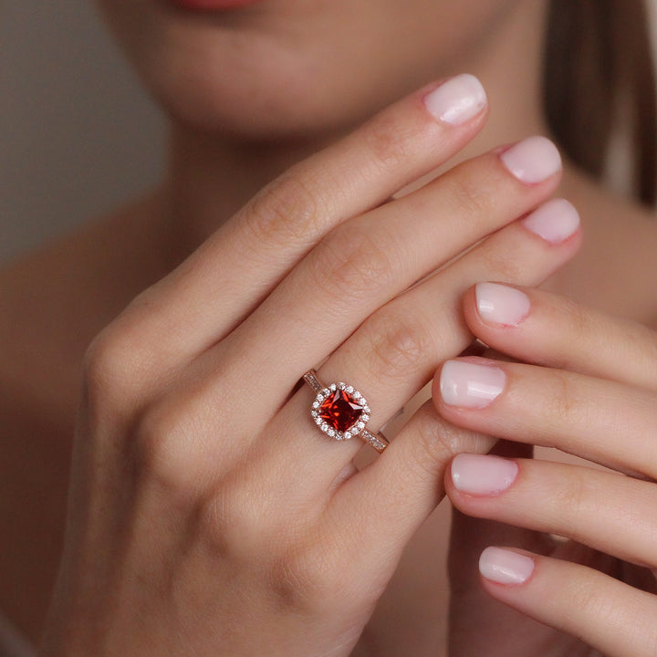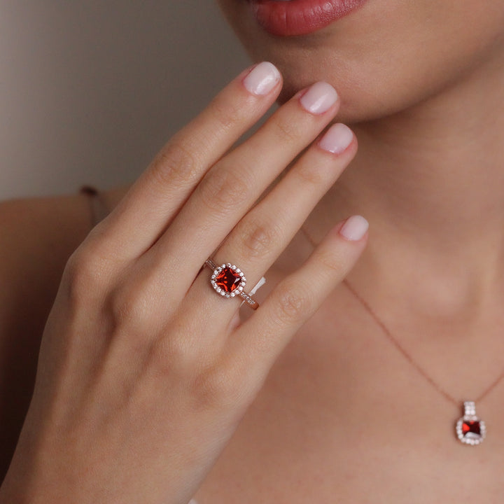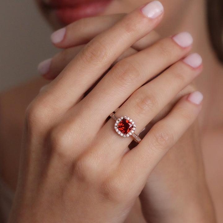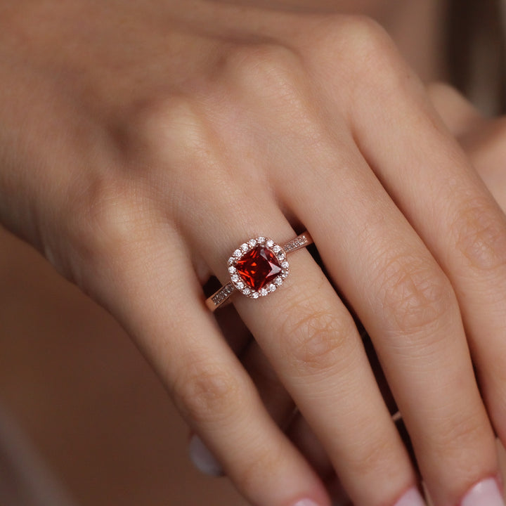 Make a bold statement with this exquisite ruby halo ring. The fiery ruby at the center is surrounded by a sparkling halo of zircon stones, radiating elegance and charm. Crafted from your choice of 925K sterling silver, 8K solid gold, or 14K solid gold, this ring is designed to suit any style. Perfect as an engagement ring, anniversary gift, or a luxurious treat for yourself, this ruby ring is a timeless addition to any jewelry collection.