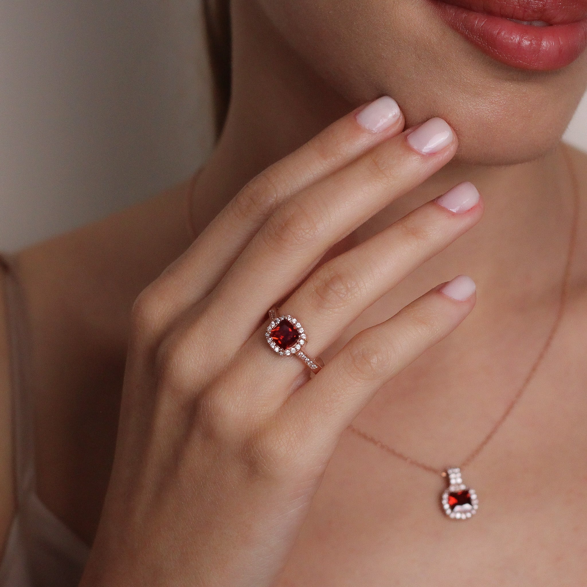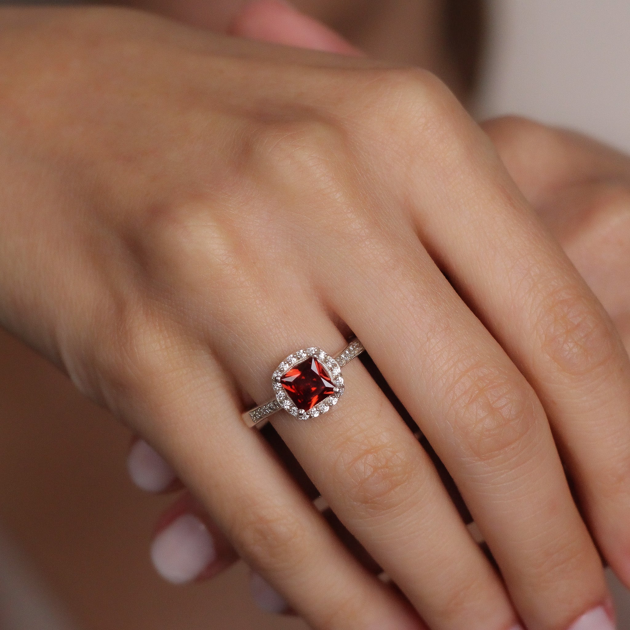 July Birthstone Ruby Promise Ring | Solid Silver & Gold Princess Cut Ruby Engagement Ring