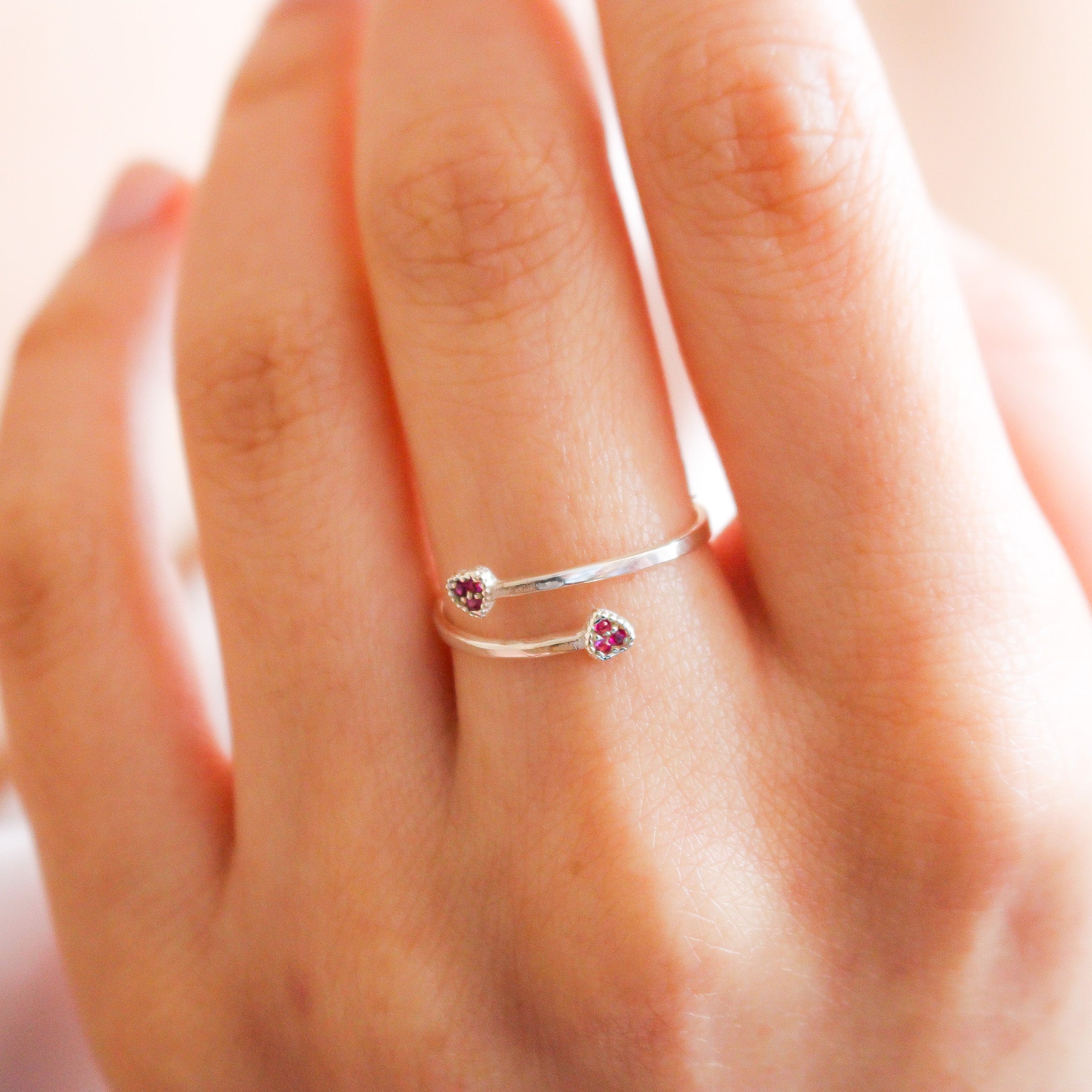 ANNIE Delicate Ruby Heart Adjustable Ring | 8K & 14K Solid Gold Ruby Promise Ring